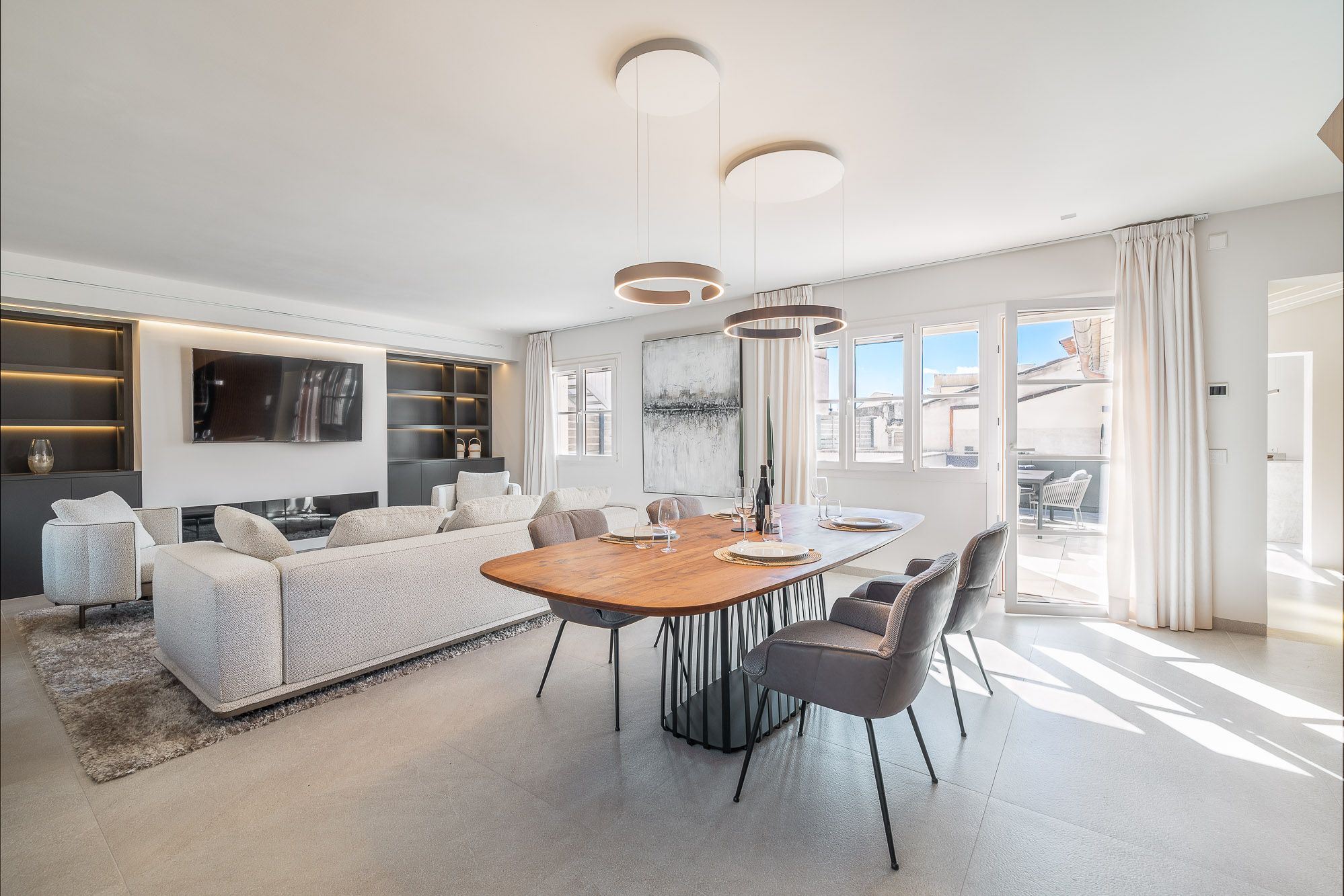 Tipo: Ático • Región: Palma • Año de construcción: 1988 • Última restauración: 2024 • Superficie total: 243 ㎡ • Dormitorios: 3 • Baños: 2 • Espacio habitable: 187 ㎡ • Parkings: 1 • Terraza • Cocina • Chimenea • Ascensor • Amueblado • Tipo de calefacción: Central, Suelo radiante, Aire acondicionado central • Revestimiento del suelo: Baldosas, Piedra