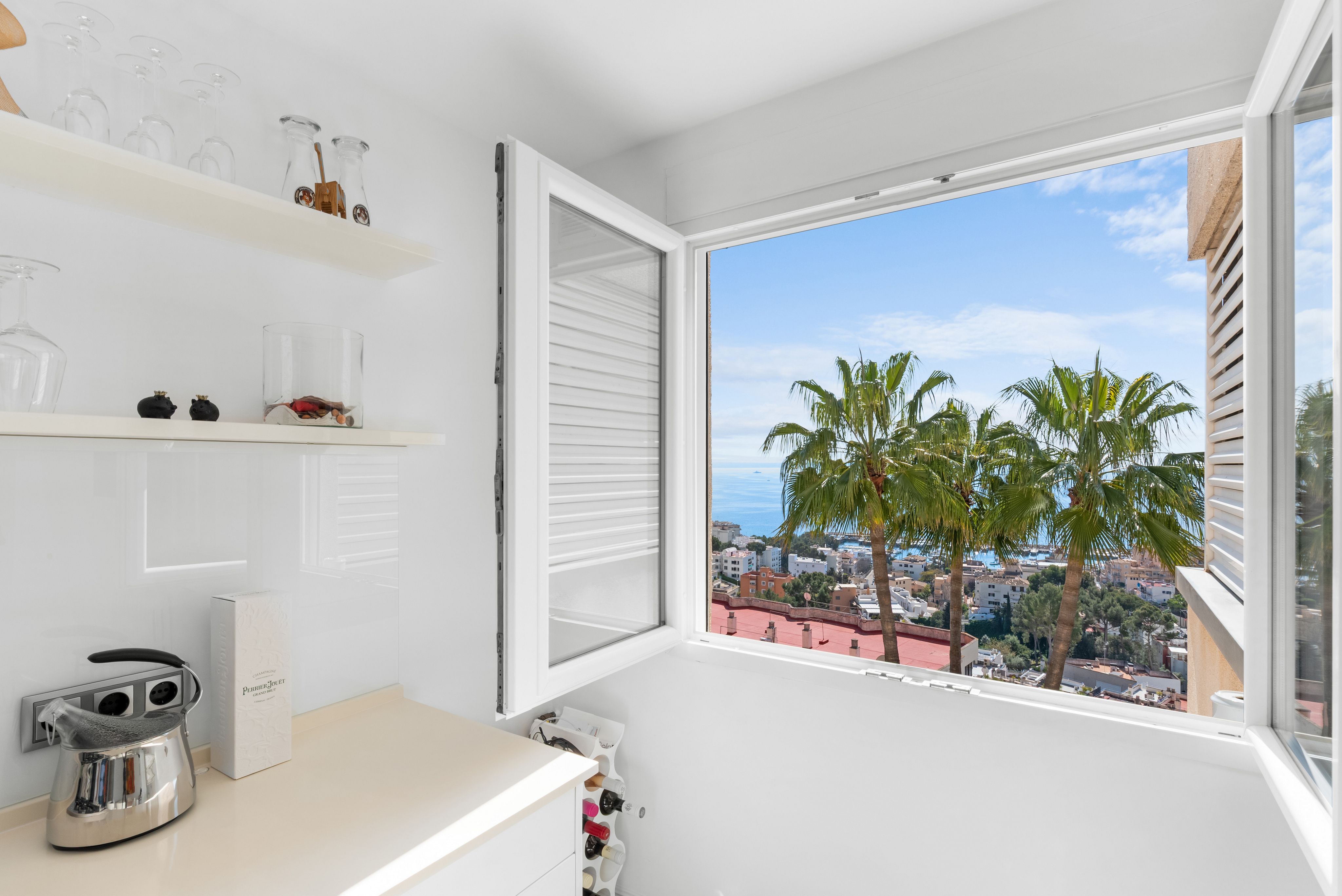 Este exclusivo ático, situado sobre el puerto de Cala Nova en San Agustín, combina de manera única el estilo de vida mediterráneo, la privacidad y unas vistas incomparables. Ubicado en una pequeña y cuidada urbanización con piscina y jardín comunitario, este ático ofrece el máximo confort y elegancia, ideal para quienes aman el sol, el mar y la calidad de vida. La propiedad dispone de dos amplios dormitorios, dos baños y un espacio abierto de salón y comedor con cocina de alta gama. Los elegantes suelos de microcemento y la orientación sur, llena de luz natural, crean un ambiente moderno y sofisticado. El corazón de la vivienda es la terraza privada en la azotea con cocina exterior integrada: un lugar excepcional para disfrutar de momentos inolvidables con familia y amigos, mientras se contempla la impresionante panorámica del mar azul intenso y toda la bahía de Cala Nova. Además, la terraza en el nivel de la vivienda amplía las zonas exteriores y ofrece un espacio perfecto para relajarse. La ubicación es tan atractiva como la propia propiedad: a poca distancia se encuentran el mar, el puerto, numerosos restaurantes, cafés y tiendas. Al mismo tiempo, Palma está a solo unos minutos en coche, ofreciendo la combinación perfecta de tranquilidad, calidad de vida y cercanía urbana. Este ático de primera categoría se completa con detalles de alta calidad: calefacción central de gas, aire acondicionado, una plaza de garaje, un trastero y la opción de adquirir un segundo aparcamiento. La última renovación fue en 2025 y la reforma integral en 2014, todo en perfecto estado. Este ático es más que una propiedad: es un estilo de vida. Exclusividad, sol, mar y lifestyle en una de las ubicaciones más codiciadas del suroeste de Mallorca.