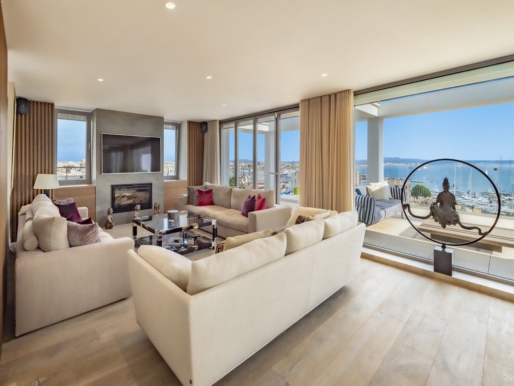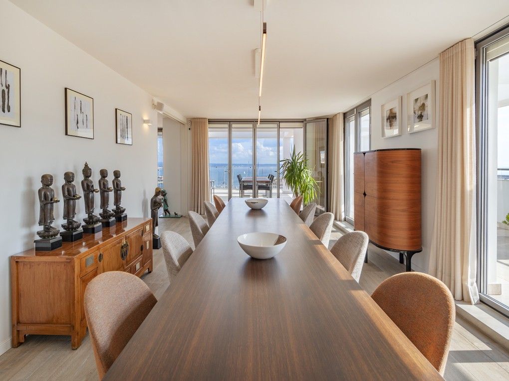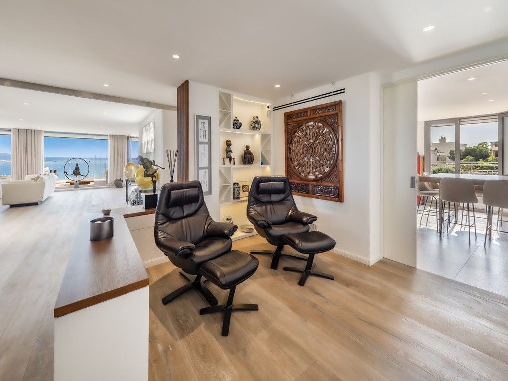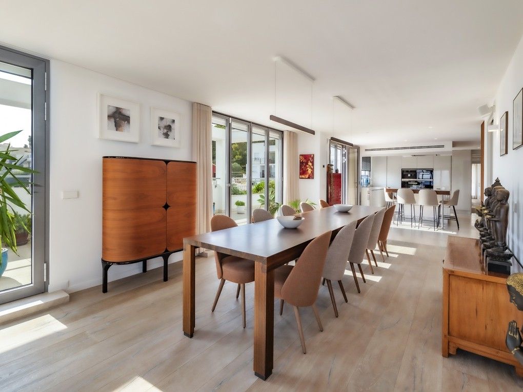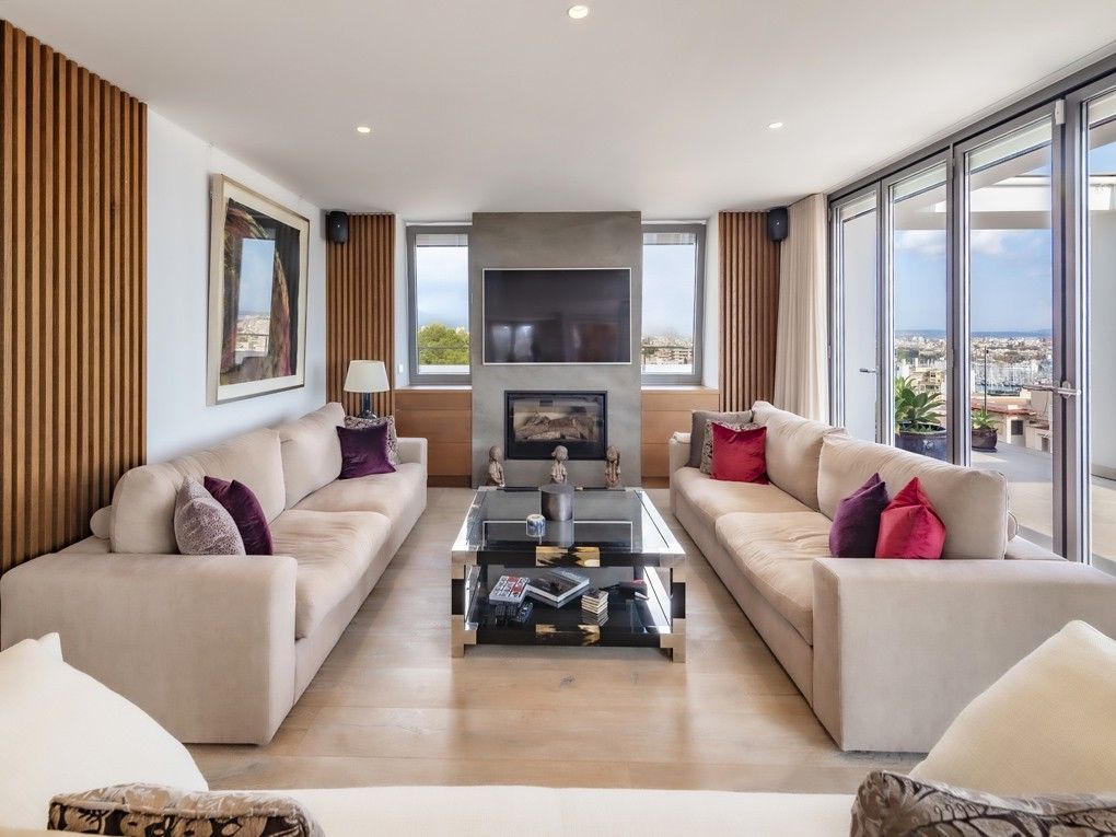 Este ático de lujo único es una de las propiedades más espectaculares disponibles en Palma de Mallorca. Con una terraza envolvente de 315 m², ofrece impresionantes vistas de 360° sobre la ciudad y la bahía de Palma. Recientemente reformado con los más altos estándares, este ático ofrece acabados de alta calidad que lo transforman en una verdadera joya de la vida de lujo. Impresiona con un luminoso y espacioso salón con una acogedora chimenea, un comedor de planta abierta que conecta a la perfección con una amplia y moderna cocina, 3 dormitorios con baños en suite, así como un amplio despacho que puede utilizarse como cuarto dormitorio, un baño de invitados y un lavadero privado. Uno de los aspectos más destacados de la propiedad es la azotea privada de 188 m² con una cocina de verano totalmente equipada, un espacio adicional perfecto para recibir invitados y disfrutar de las impresionantes vistas con familiares y amigos. Otras características: Garaje doble y trastero, calefacción por suelo radiante, paneles solares y aire acondicionado en toda la vivienda. Se trata de una propiedad de primera para el comprador más exigente, que ofrece un estilo de vida inigualable en la ubicación más deseable de Palma.