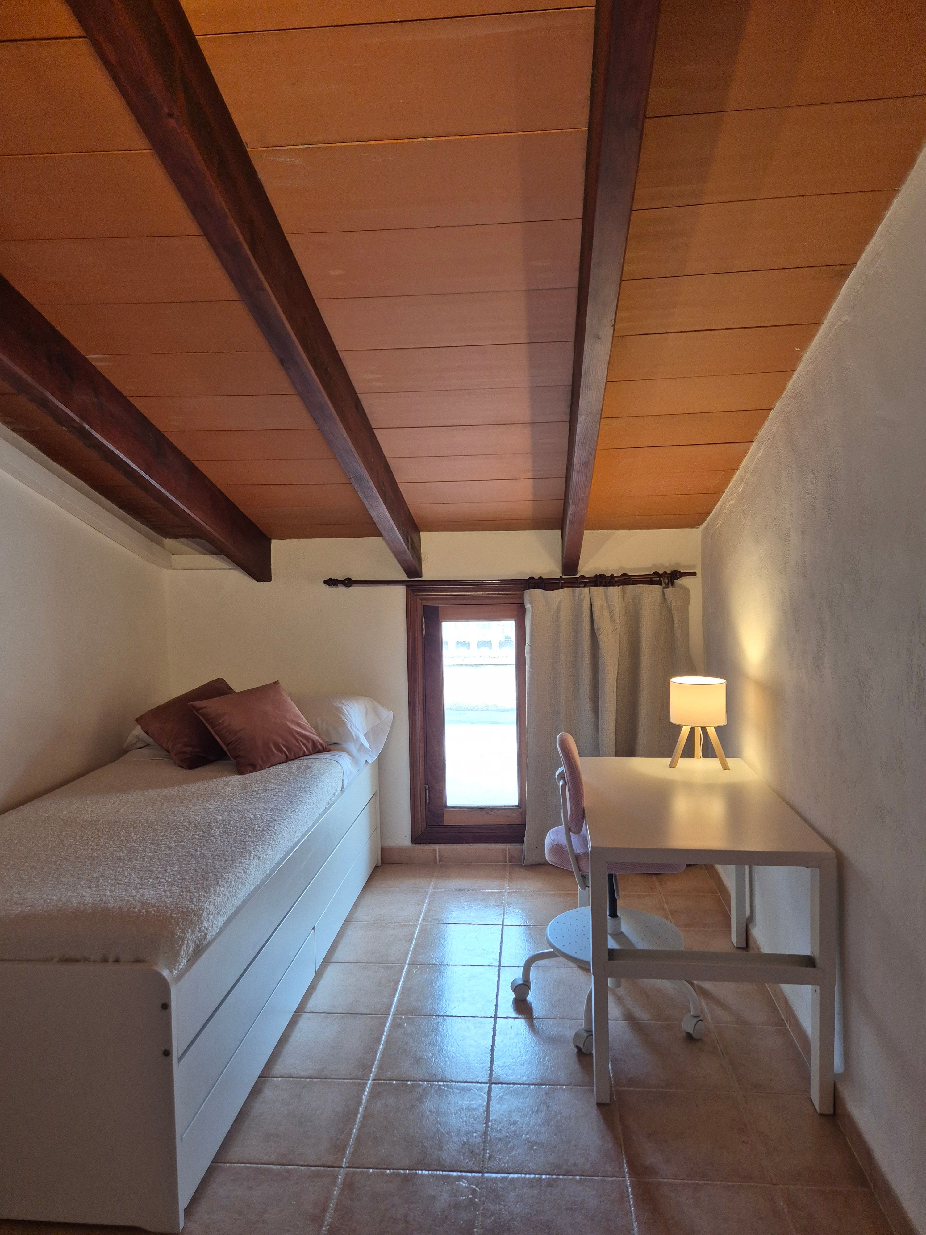 Consta de un amplio salón-comedor, una cocina con chimenea antigua, cuatro dormitorios (1 de ellos individual) y 1 baño. En el exterior hay un patio interior y una terraza solárium en la 1.ª planta. La casa tiene una bonita fachada de piedra y elementos tradicionales como vigas vistas.