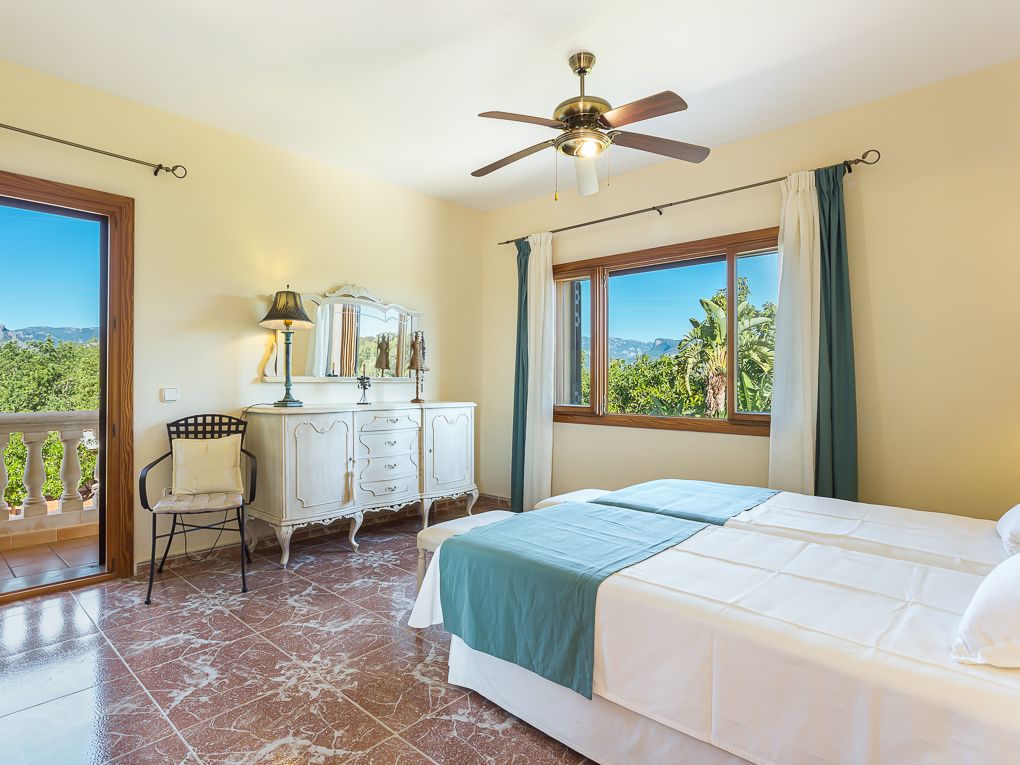 La casa, con una superficie total de 390 m2, se distribuye en dos plantas y se asienta sobre una parcela de 20.000m2. La planta baja ofrece un salón-comedor con chimenea, una cocina equipada, un dormitorio doble y un baño. En la planta superior hay tres dormitorios dobles y dos baños (uno en suite), así como una terraza con vistas al campo.