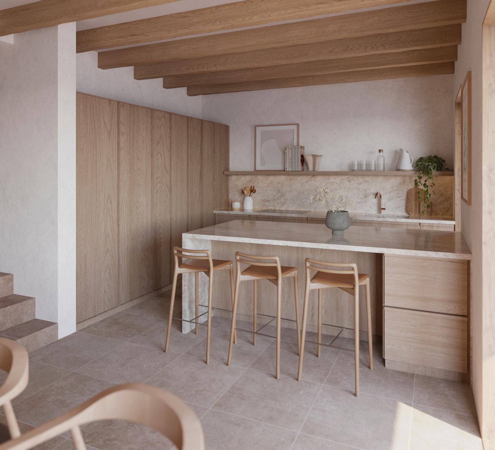 En una de las ubicaciones más codiciadas del casco antiguo de Pollença, se está desarrollando un excepcional proyecto de casa de pueblo que combina arquitectura moderna con ligereza mediterránea al más alto nivel.
