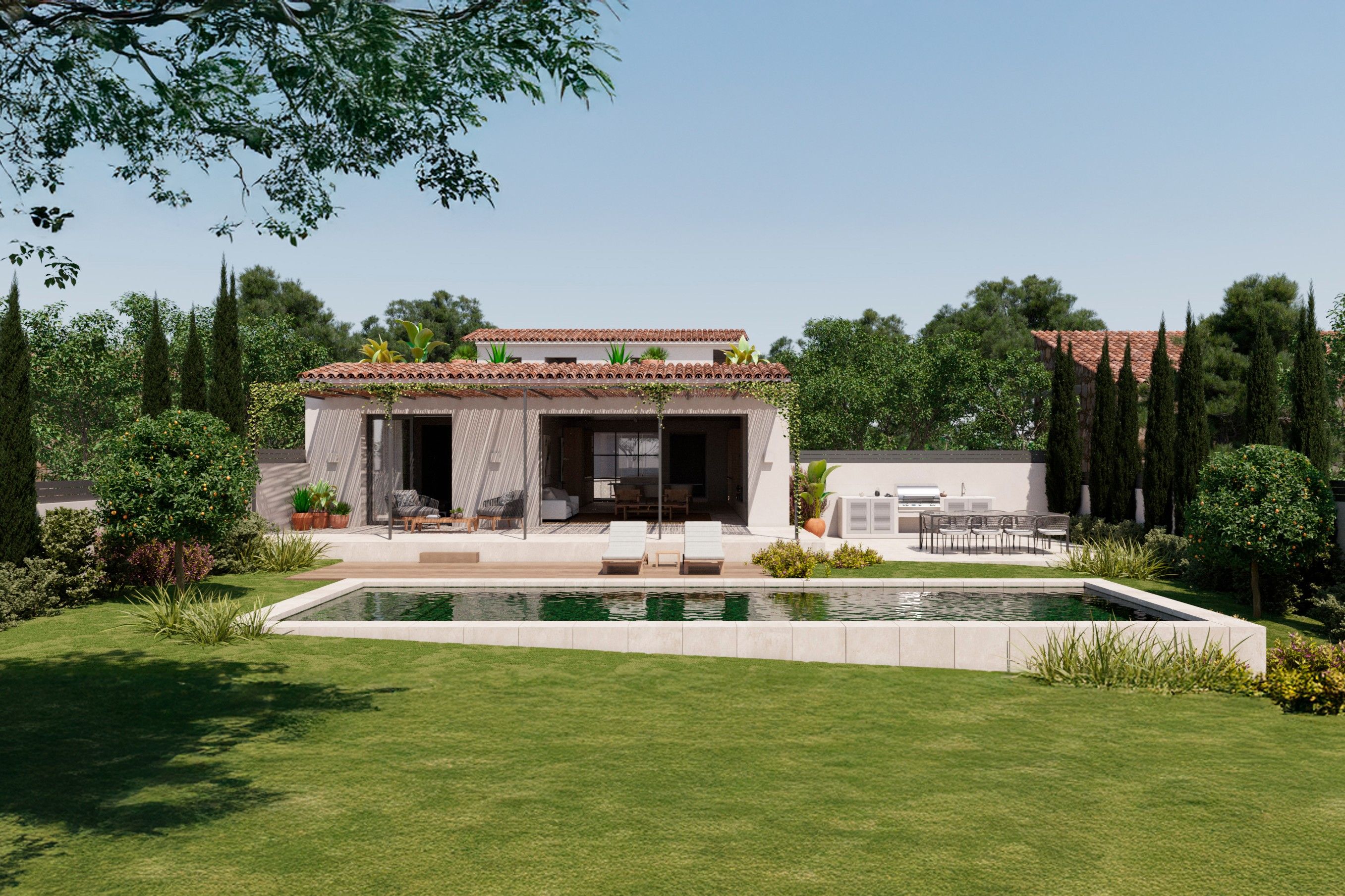 Tipo: Casa • Región: Son Vida & Palma Alrededores • Año de construcción: 2024 • Superficie total: 278 ㎡ • Dormitorios: 3 • Baños: 3 • Superfície de parcela: 537 ㎡ • Parkings: 2 • Terraza • Cocina • Piscina • Aseo de cortesia • Tipo de calefacción: Suelo radiante, Aire acondicionado central • Tipo de calefacción: Bomba de calor • Revestimiento del suelo: Parquet, Piedra
