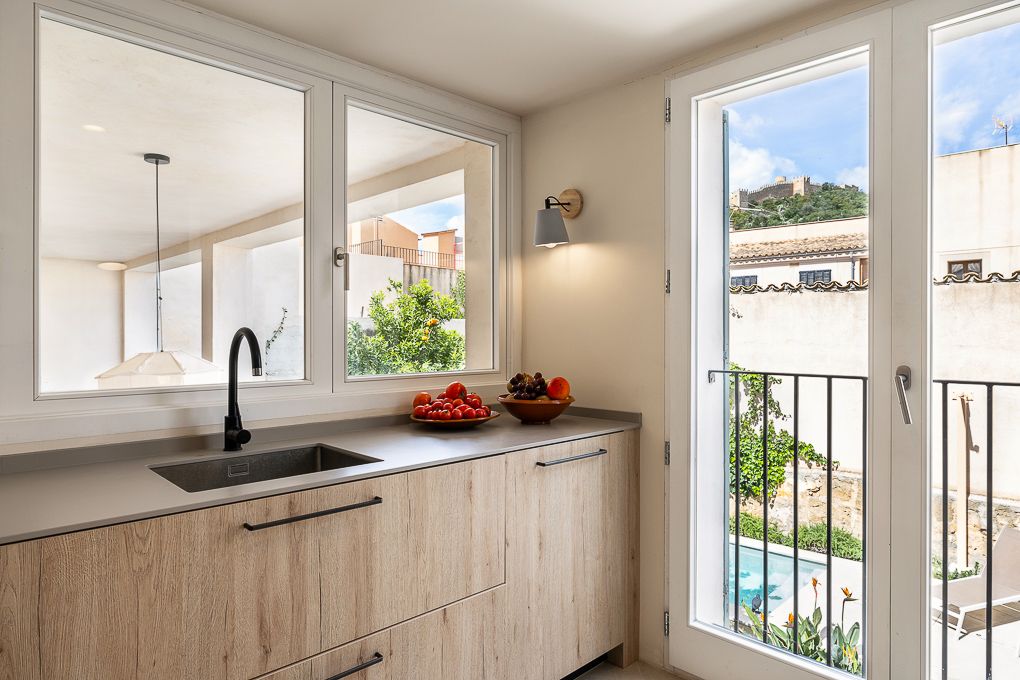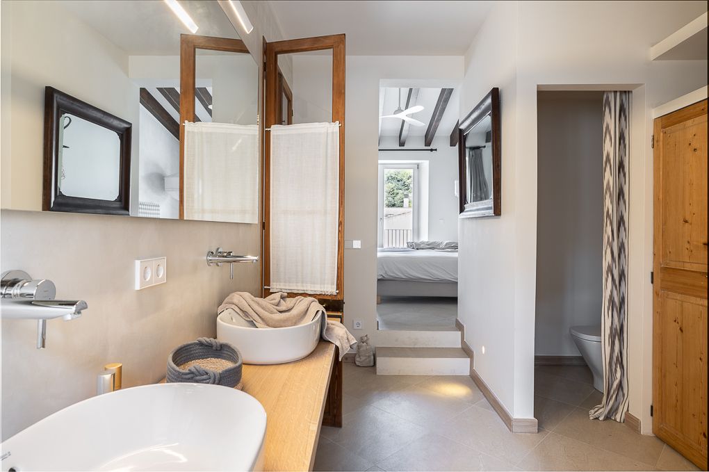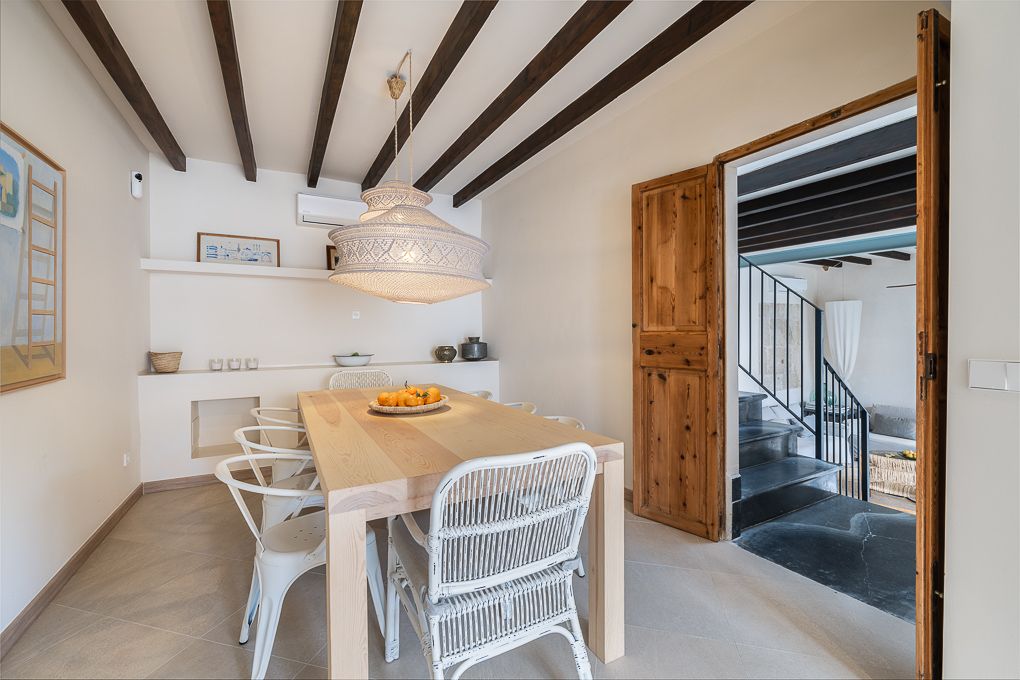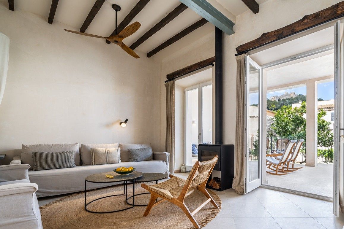 Esta hermosa casa de pueblo en el corazón del fascinante pueblo de Capdepera fue construida en 1957 y completamente renovada y amueblada con gusto en 2022 utilizando materiales de alta calidad. El nuevo diseño de la casa también ha sido reconocido por su publicación en una revista de interiorismo. La casa consta de planta baja, entresuelo, planta superior y una bodega muy espaciosa y característica. La puerta de entrada conduce a la planta baja, que presenta una distribución armoniosa y pensada hasta el último detalle: un dormitorio con baño en suite, un lavadero, un aseo de invitados y un salón con chimenea y acceso al acogedor porche cubierto con vistas al jardín con la piscina de 16 m² con fuente de agua y al castillo medieval de Capdepera. Subiendo las escaleras, se encuentra el comedor en el nivel intermedio y una cocina moderna y luminosa con vistas al porche, al jardín y al castillo. En la planta superior hay una sala galería, la suite principal y dos dormitorios más que comparten un cuarto de baño. La sala de la galería, la suite principal y un dormitorio tienen acceso a la gran terraza de la azotea con vistas al castillo y una magnífica vista panorámica sobre Capdepera y Cala Ratjada hasta el mar; y en días claros incluso hasta la vecina isla de Menorca. El moderno equipamiento de la casa, muy eficiente energéticamente, incluye una bomba de calor de aire para hacer funcionar el aire acondicionado f/c y para calentar el agua, así como un sistema fotovoltaico. Dos chimeneas proporcionan un calor acogedor en los meses más fríos. Una casa que ofrece un ambiente de relajación y tranquilidad, ideal tanto como casa de vacaciones como para residir todo el año.