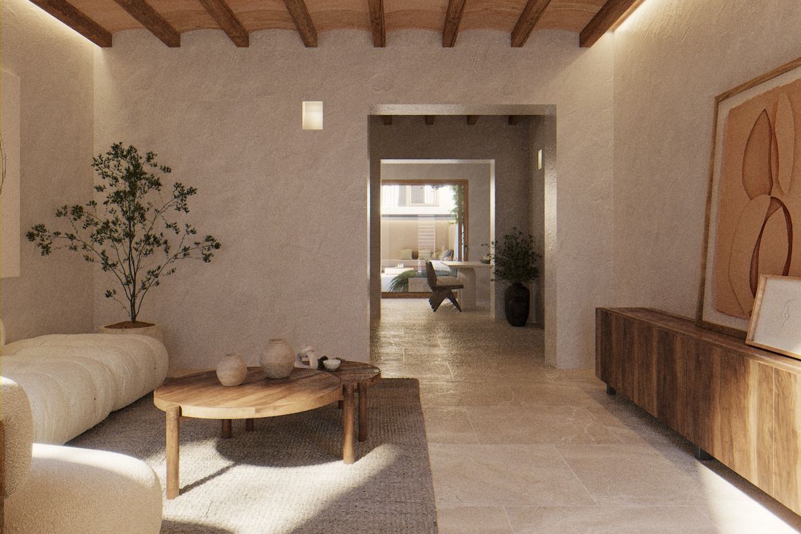 En el centro histórico de Artà se está desarrollando una casa de pueblo que une historia y presente en un equilibrio perfecto. Detrás de la fachada tradicional se abre un concepto espacial bien pensado que combina la arquitectura mediterránea con la claridad moderna. Aquí, autenticidad y ligereza se fusionan, piedra y luz, pasado y futuro, en un todo armonioso. En una parcela de 142 m² se despliega una superficie construida de alrededor de 229 m² y una superficie habitable de aproximadamente 220 m², distribuidos en tres niveles más una terraza en la azotea. El proyecto de reforma aprobado sigue una línea arquitectónica clara, donde la piedra natural, la madera y materiales finos crean calidez y estructura, mientras que la bomba de calor, el aire acondicionado central y el ascensor garantizan confort contemporáneo. La zona de estar y comedor en la planta baja se abre fluidamente hacia la cocina, creando un lugar donde la arquitectura y la vida diaria se armonizan. Puertas de gran formato llevan al patio, cuya piscina con alrededor de 8 m² de superficie de agua y zona de descanso transmite una sensación de tranquilidad y elegancia mediterránea. Una escalera exterior lleva a un anexo de invitados con su propio baño, que es ideal como estudio o espacio privado de retiro. En el primer piso se encuentran dos dormitorios armoniosamente proporcionados y un baño. El segundo piso está reservado para la suite principal, un espacio bañado de luz con baño en suite y acceso a la terraza en la azotea. Desde aquí se abre la vista sobre San Salvador y los tejados de Artà. El proyecto está a punto de comenzar las obras. Todas las aprobaciones están en orden, la planificación está completa y el inicio de los trabajos está preparado. Por lo tanto, la propiedad ofrece el momento ideal para compradores que deseen influir en la ejecución en términos de materiales, diseño de espacio o equipamiento. Este proyecto combina la atmósfera de una casa de pueblo histórica con la estética del diseño interior contemporáneo, creando un lugar donde el diseño, la historia y la sensación de vida mediterránea se funden en una composición coherente.