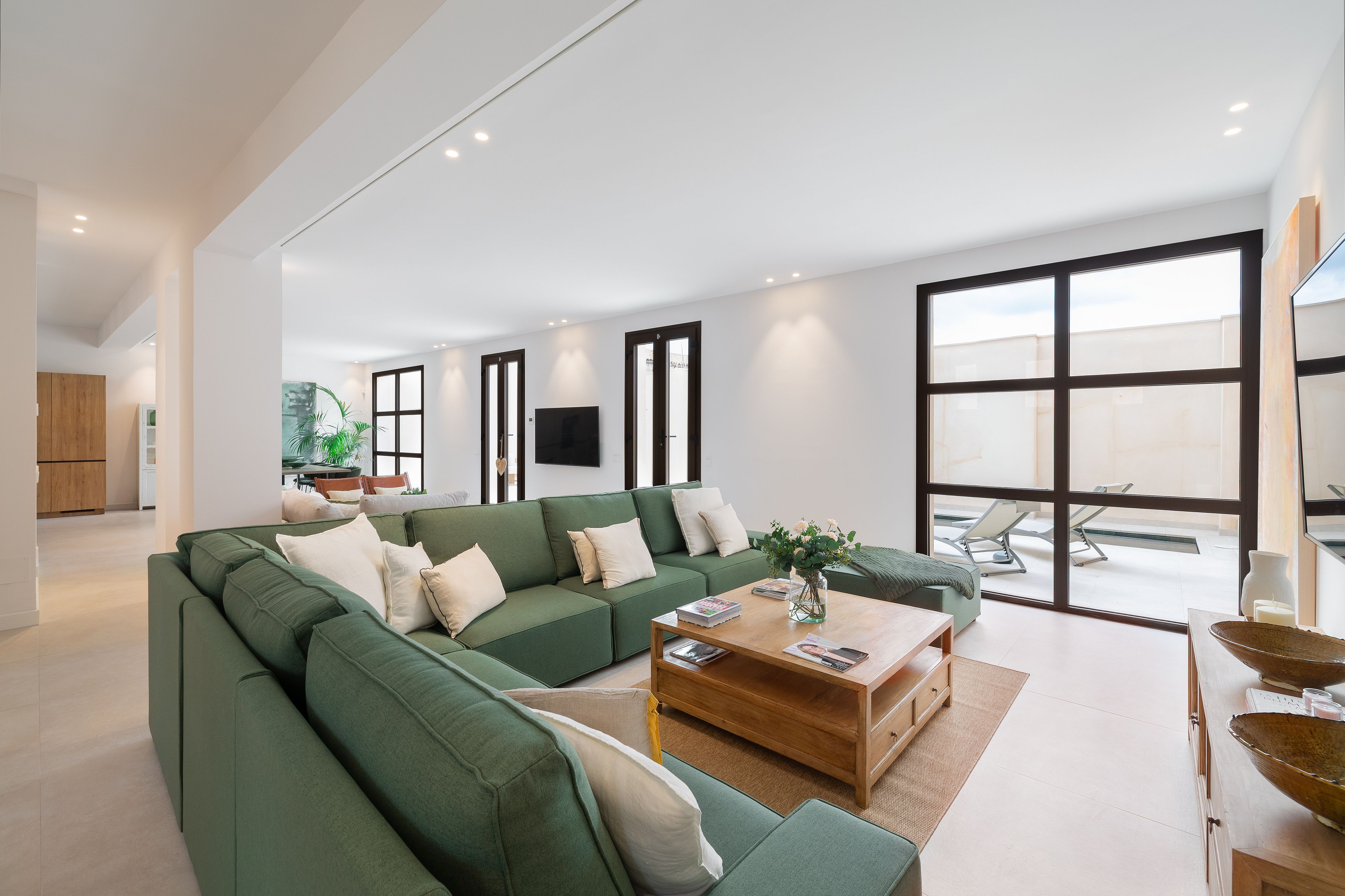 Ubicado en el corazón de la auténtica Vilafranca, un pueblo conocido por su comunidad durante todo el año y su auténtica esencia mallorquina, este elegante adosado de nueva construcción de 2025 le espera. La planta baja, llena de luz, cuenta con un amplio salón-comedor con dos zonas de estar, un espacio de trabajo independiente, una cocina moderna y un aseo de cortesía. Las ventanas de aluminio de alta calidad y doble acristalamiento se abren a un jardín privado, donde una piscina de 10 metros garantiza total privacidad.