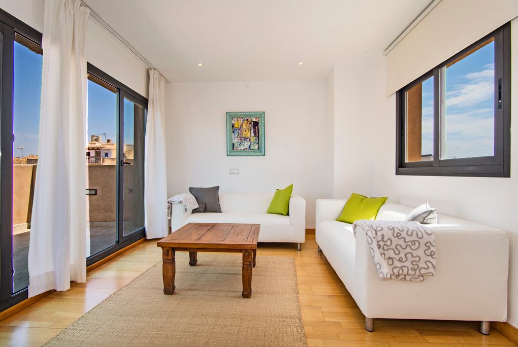 Esta casa restaurada y distribuida en tres niveles está convenientemente situada junto a la plaza del popular y dinámico mercado. En la planta baja se encuentran un amplio recibidor y a continuación una moderna cocina abierta adyacente a la sala de estar-comedor. A través de una gran puerta corredera de cristal se accede al acogedor patio, en el que se encuentran un aseo y un espacio para tareas domésticas. Por la escalera abierta de la entrada se llega a la primera planta y a sus dos confortables habitaciones, ambas con cuarto de baño en suite con ducha. En el segundo piso se halla un salón luminoso con salida a la terraza. Desde ella se disfruta de vistas a la hermosa iglesia y al centro de la localidad. Además la casa cuenta con aire acondicionado frío/calor, suelos de parquet y ventanas de doble acristalamiento.