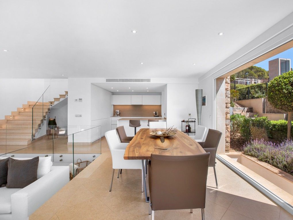 Descubra esta hermosa villa moderna-mediterránea situada con impresionantes vistas a la bahía de Portals Vells, y la inmensa zona verde. Esta propiedad ha sido completamente reformada y ofrece todo lo que una casa de vacaciones perfecta necesita. Una de las zonas más espectaculares de la villa es el dormitorio principal, que se extiende por toda la planta y ofrece una terraza privada con increíbles vistas y un gran vestidor. En la planta inferior, accederemos a la acogedora y elegante zona de estar con una moderna cocina abierta con electrodomésticos Miele y dormitorio de invitados independiente con baño en-suite. Desde este nivel tendremos acceso a una terraza cubierta y a la terraza abierta recientemente renovada con una cómoda zona de estar y toldo eléctrico. La zona de la planta baja ofrece otros dos dormitorios de bog y dos baños y una sala multifuncional adicional. Otros extras son: dos plazas de aparcamiento al aire libre, calefacción por suelo radiante en toda la villa con bomba de calor, piscina de agua salada, A / C, persianas eléctricas y un sistema de alarma de alta gama.