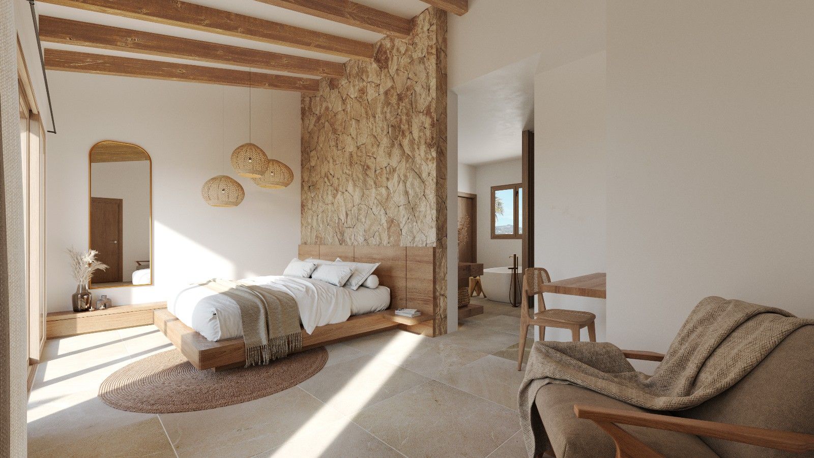 Esta impresionante casa de pueblo se está construyendo en una zona tranquila pero céntrica de Santanyí, a pocos minutos a pie de la plaza del mercado. Al entrar en la casa, un elegante vestíbulo le da la bienvenida, desde donde accede a la amplia zona de salón-comedor con cocina adyacente. Desde aquí se disfruta de una hermosa vista al cuidado jardín. Un aseo de cortesía y un espacioso garaje completan la planta baja. En la primera planta le esperan tres amplios dormitorios, cada uno con su propio baño. Además, aquí se encuentra una oficina adicional y un funcional cuarto de lavandería. En la planta superior está el dormitorio principal, con un elegante baño y una bañera de hidromasaje, el lugar perfecto para relajarse después de un largo día. Un gimnasio con baño privado y sauna le permite mantenerse en forma en cualquier momento, mientras que la amplia terraza en la azotea invita a disfrutar de las vistas. El jardín, cuidadosamente diseñado, alberga una piscina climatizada de 31,50 m², un patio cubierto con zona de barbacoa y un aseo adicional. Gracias a un innovador sistema de aerotermia, la casa ofrece eficiencia energética durante todo el año y el máximo confort. Junto a la escalera, un ascensor garantiza total comodidad y accesibilidad para acceder a las plantas superiores. Este adosado le ofrece una conexión perfecta con la vida de un pueblo mediterráneo, con su vida auténtica, como mercados semanales, tiendas, restaurantes, cafés y las populares playas y calas de ensueño en el sureste de Mallorca. El aeropuerto está a unos 40 minutos en coche.