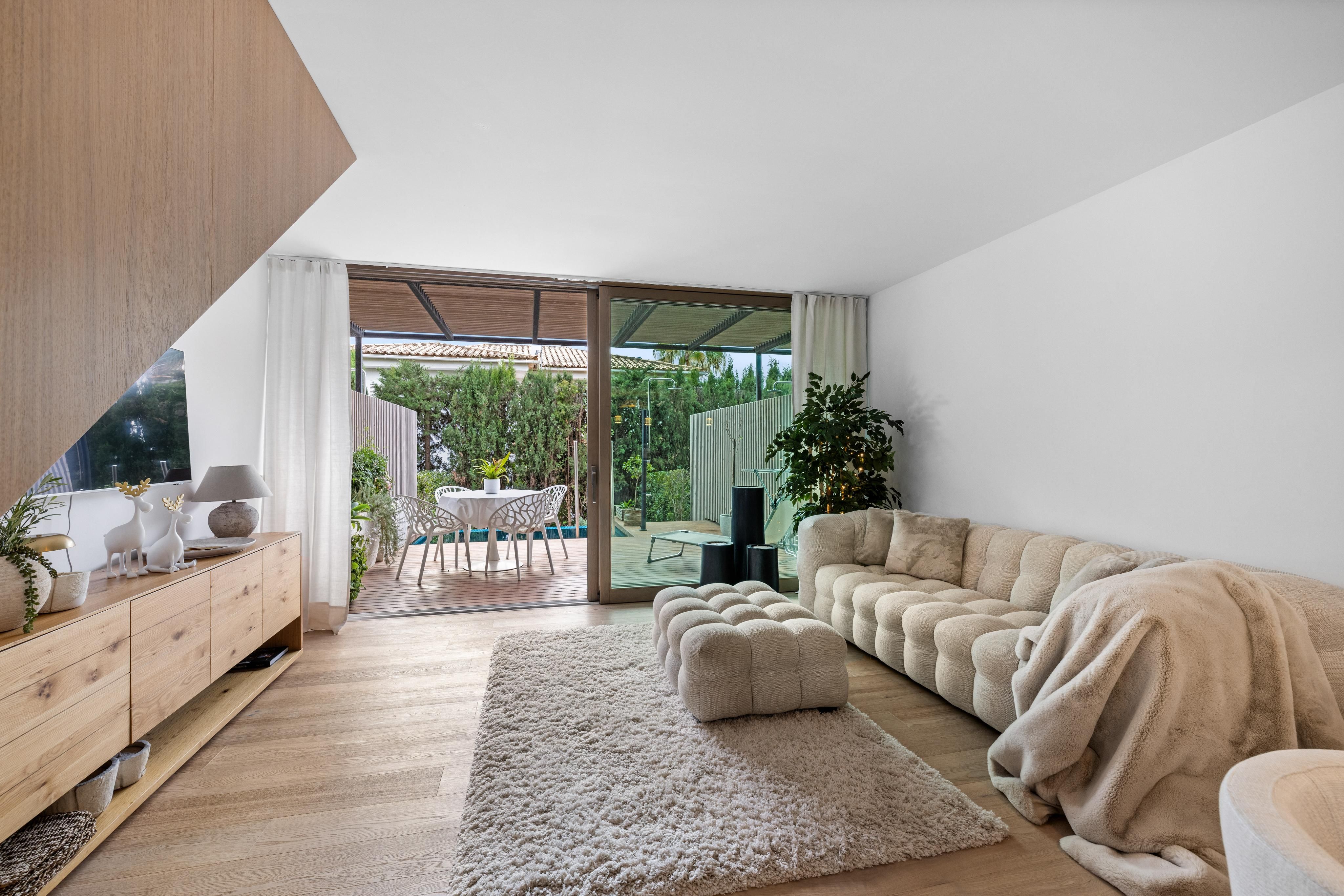 En uno de los codiciados edificios nuevos paralelos de La Bonanova, uno de los barrios más tranquilos y exclusivos de Palma, se encuentra este extraordinario dúplex con jardín, que combina a la perfección diseño moderno, el máximo confort y calidad de vida mediterránea. La propiedad, terminada en 2022, destaca por su alta calidad de nueva construcción y una distribución bien pensada en dos niveles. El corazón del apartamento es el amplio salón y comedor con cocina de diseño abierta, equipada con electrodomésticos Miele de alta calidad, que se integra sin problemas en el jardín privado, un verdadero oasis de tranquilidad con su propia piscina privada.