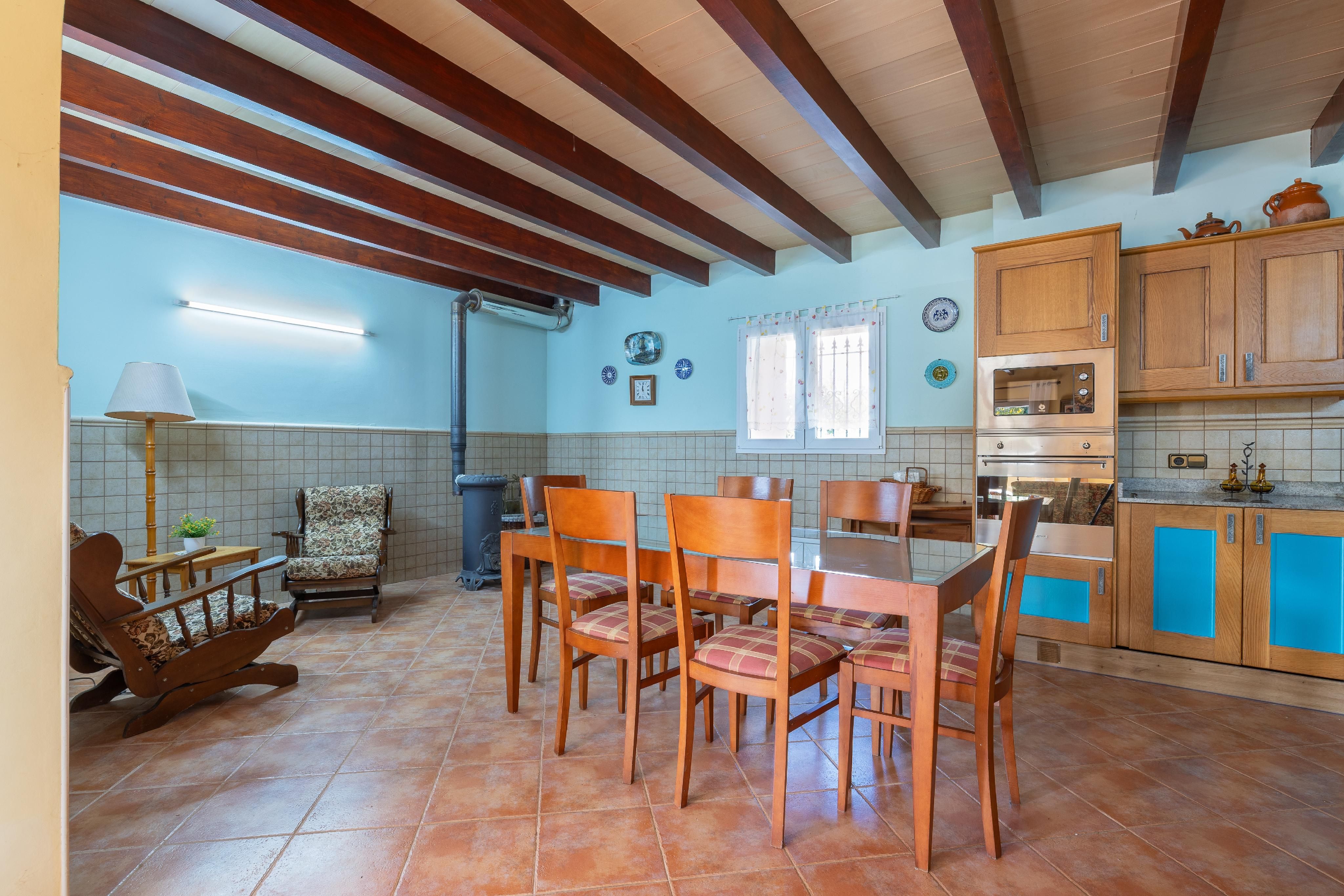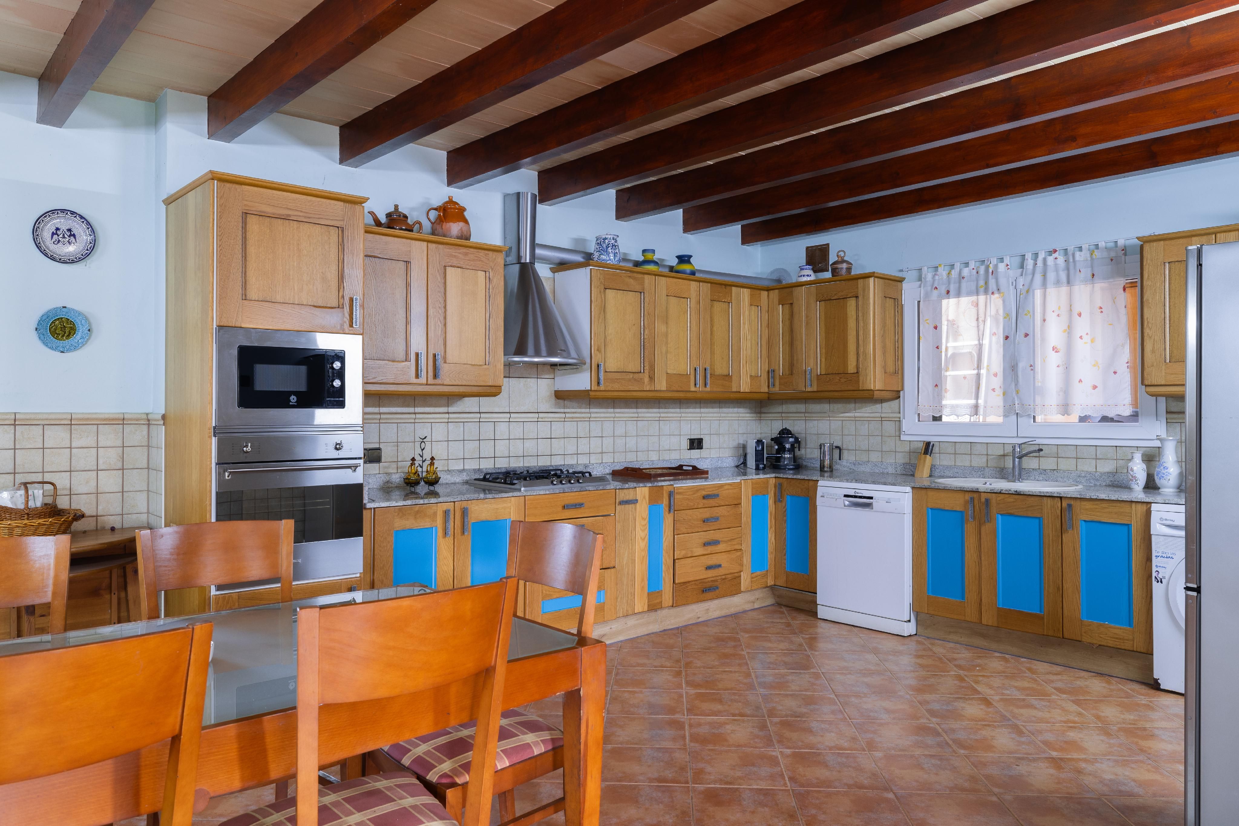 La finca irradia un encanto especial gracias a detalles tradicionales como vigas vistas y techos altos, suelos de piedra de alta calidad en los baños y un pozo antiguo para el riego.