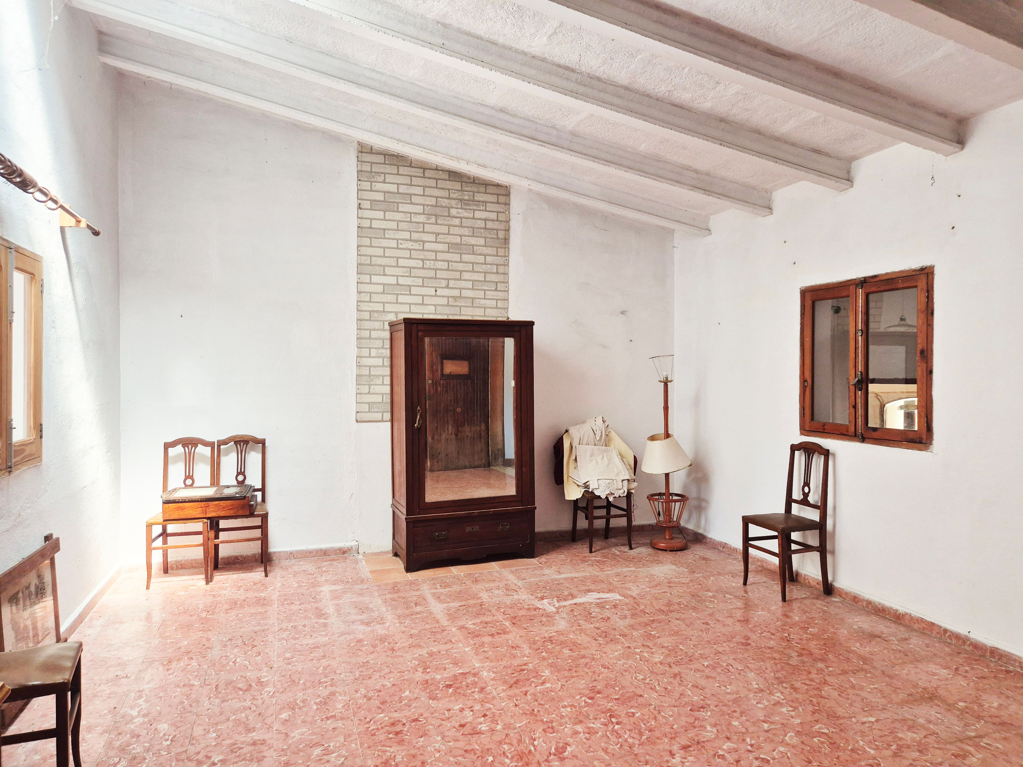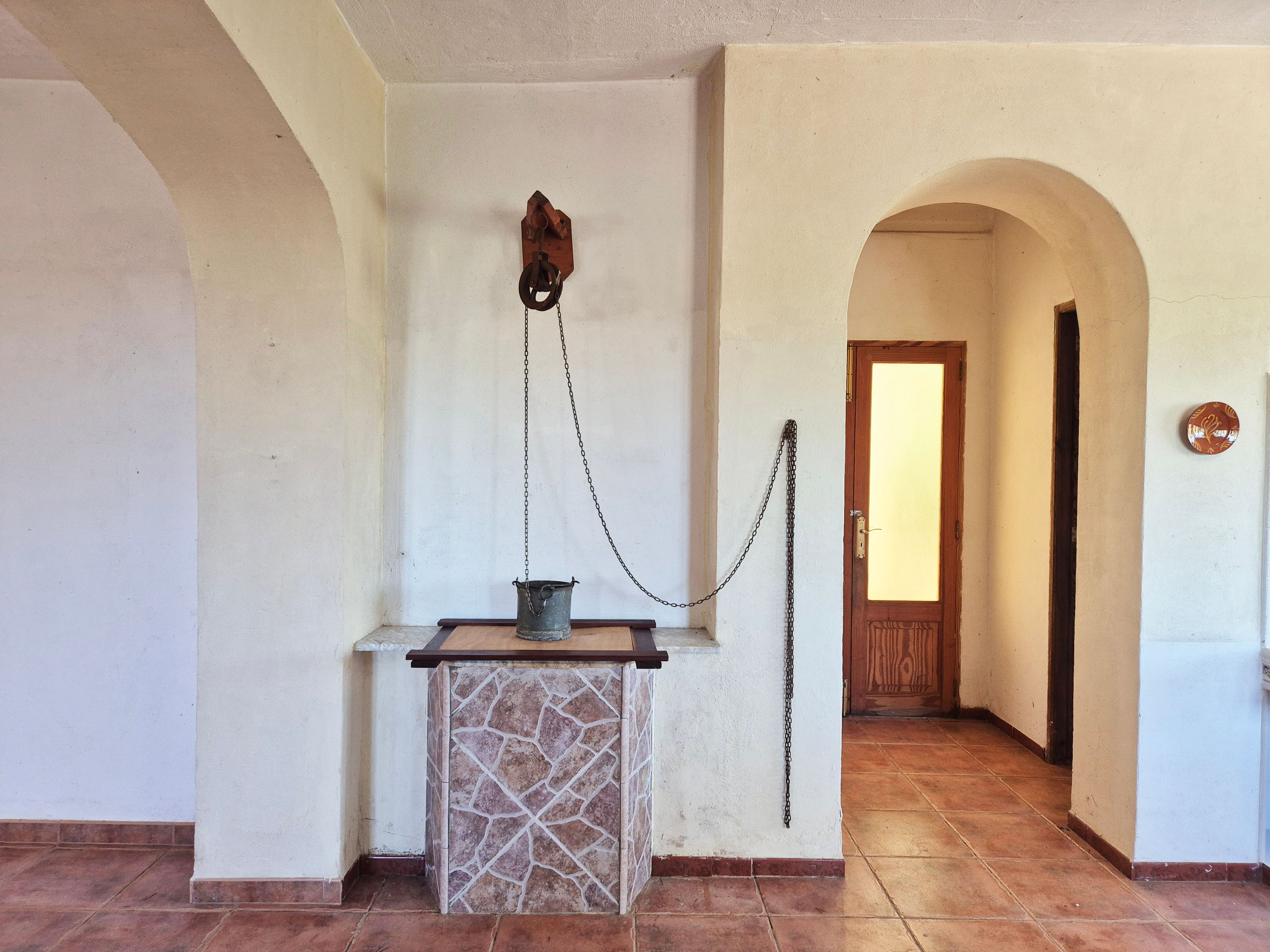 La casa tiene mucho potencial y se encuentra en buen estado, pero necesita una renovación. En su estado actual, cuenta con aproximadamente 200 m² construidos. Dispone de un amplio salón-comedor con chimenea, conectado a una cocina abierta con vistas a la naturaleza y a la Sierra de Tramuntana. En total, la casa tiene tres dormitorios y un baño.