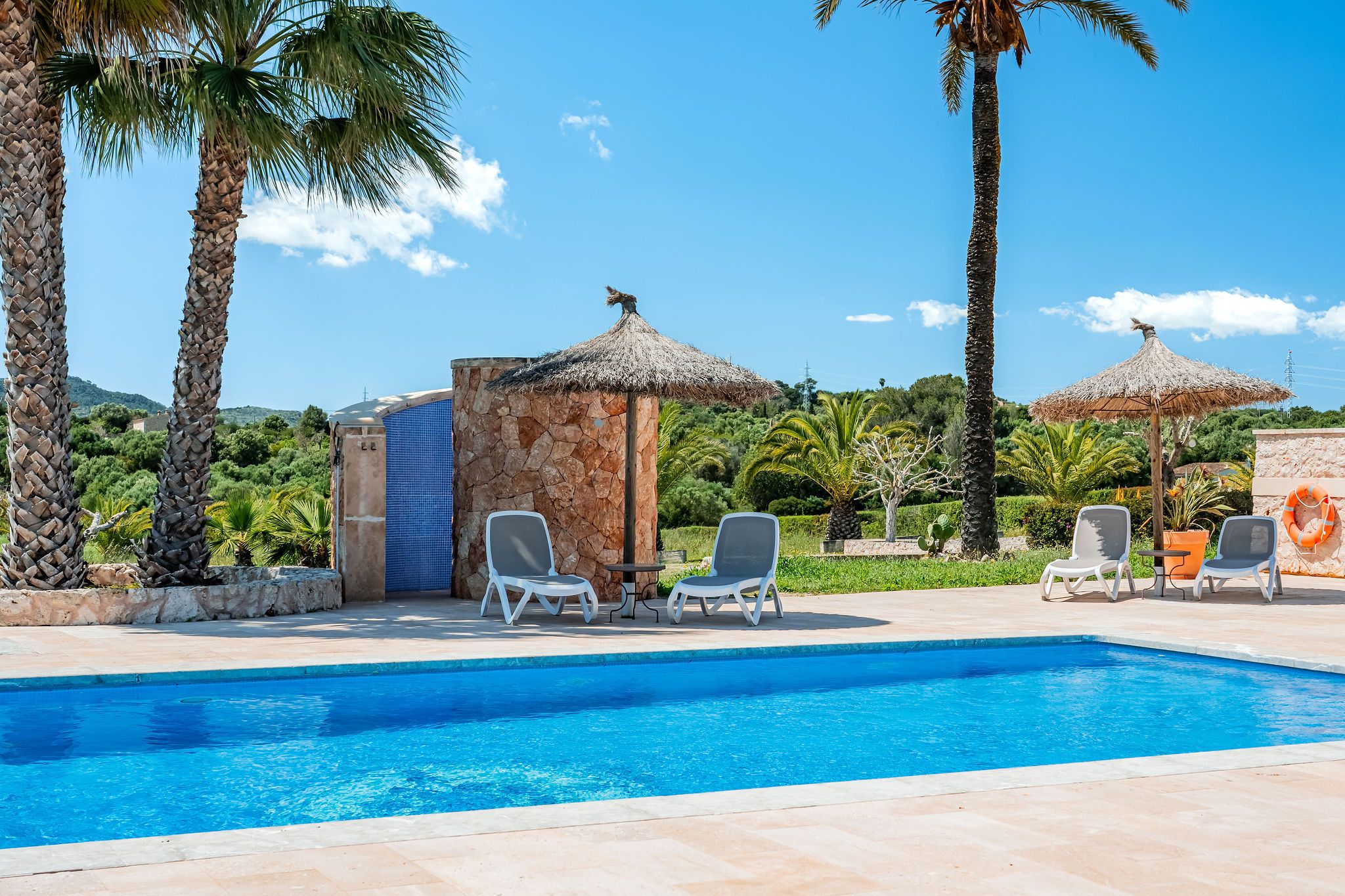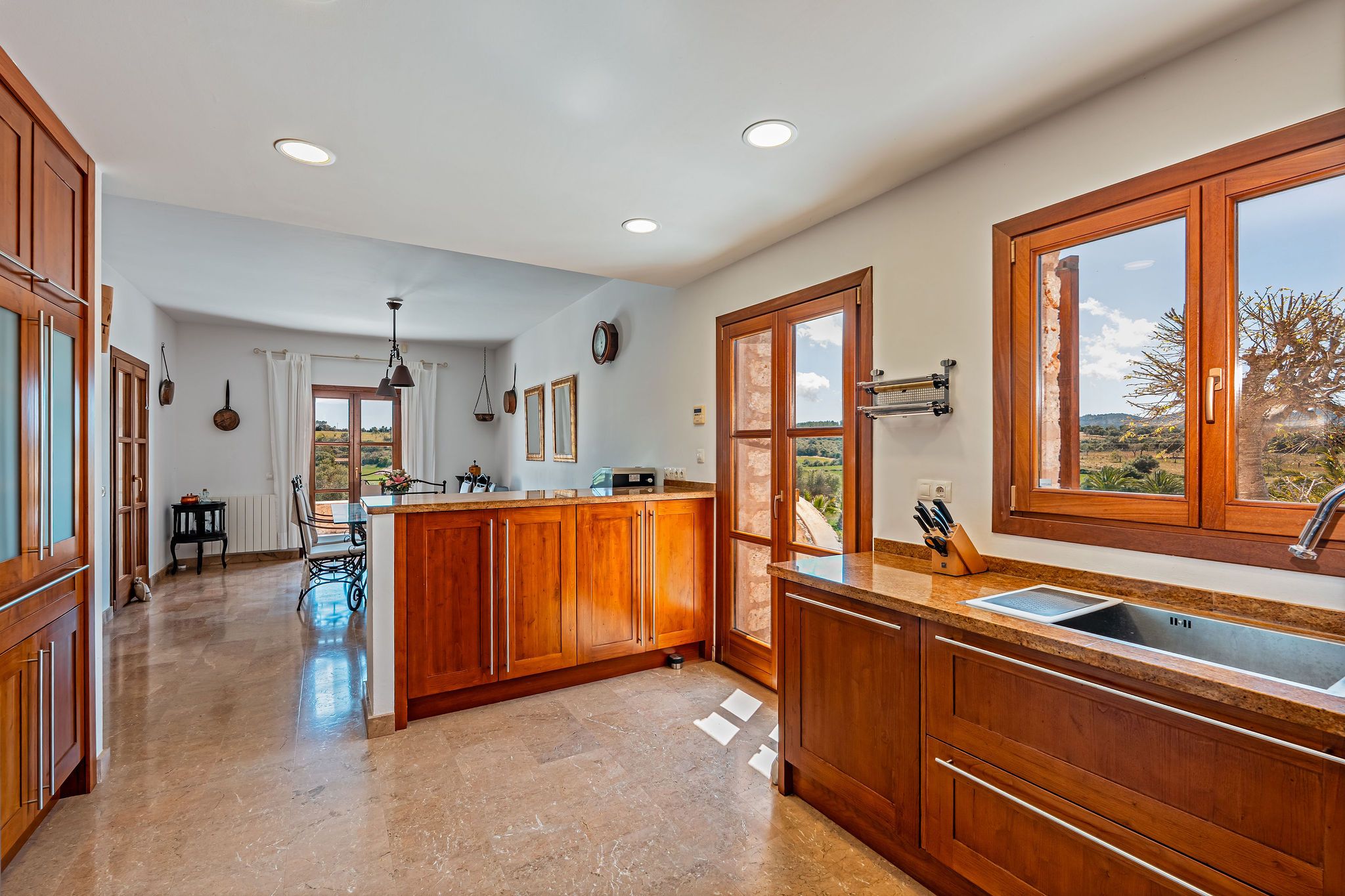 Situada entre Manacor y Son Macià, esta hermosa finca se encuentra en una parcela de 15.568 m². Ubicada ligeramente elevada, ofrece total privacidad y una maravillosa vista panorámica de las colinas y el entorno verde. Esta finca cuenta con una codiciada licencia de alquiler vacacional, lo que la convierte en una valiosa inversión. Fue construida en 2008 en una sola planta, abarcando una superficie habitable de aproximadamente 410 m². La inteligente distribución del espacio crea una perfecta convivencia entre la cocina, el comedor y la sala de estar, conectando el interior y el exterior de manera armoniosa. Desde la sala de estar con chimenea y el comedor se accede a una terraza cubierta. La cocina adyacente con una despensa accesible invita a reuniones sociales con su gran isla de cocina y área de comedor. En total hay tres dormitorios disponibles. El dormitorio principal con baño en suite y dos dormitorios adicionales que comparten un baño. El área exterior impresiona con una elegante piscina infinita, mientras que el jacuzzi invita a tardes románticas con el suave canto de los grillos. La propiedad está completamente subterránea y ofrece un garaje subterráneo con espacio para hasta tres vehículos. Además, hay espacios para un gimnasio privado, una sala de cine u otros usos individuales. Entre otras características se incluyen aire acondicionado central, calefacción de aceite, un valioso sistema fotovoltaico y un pozo propio para el suministro de agua de la finca. Esta finca le ofrece la combinación perfecta para disfrutar de su residencia vacacional mediterránea durante todo el año, así como alquilarla de manera rentable en su ausencia.