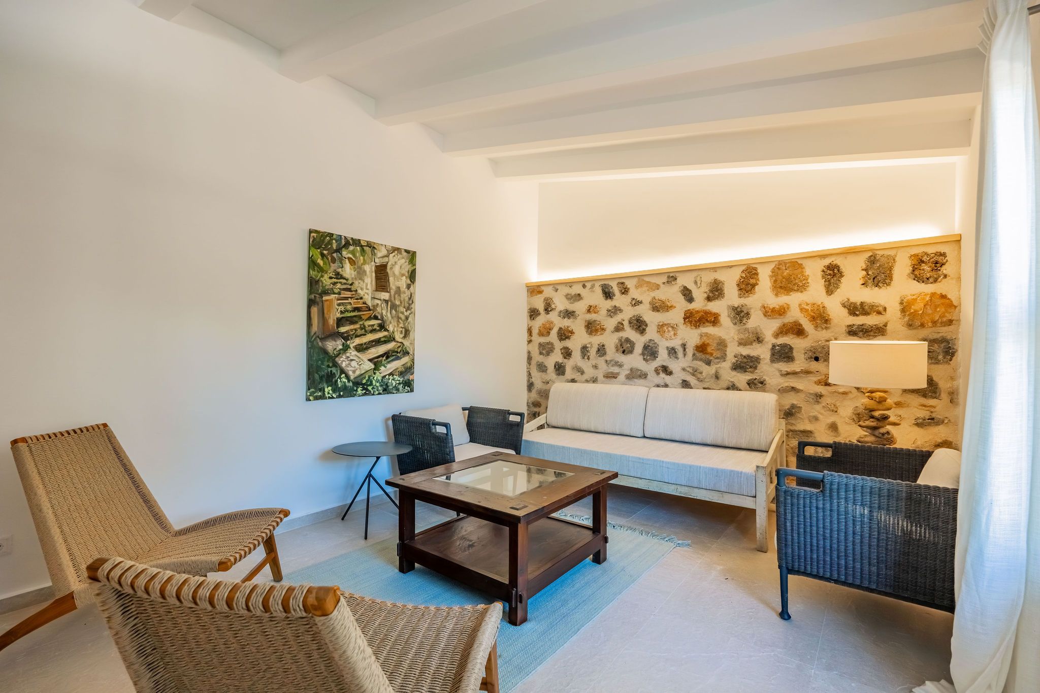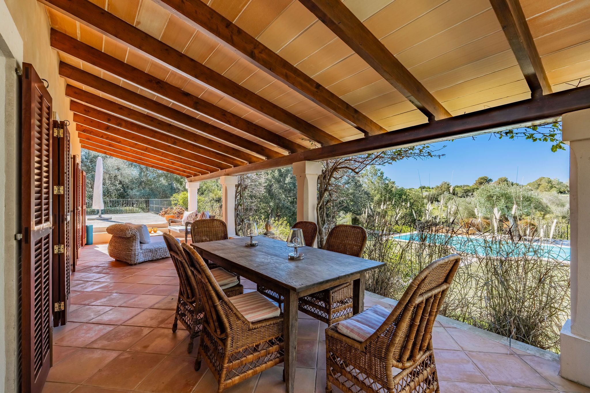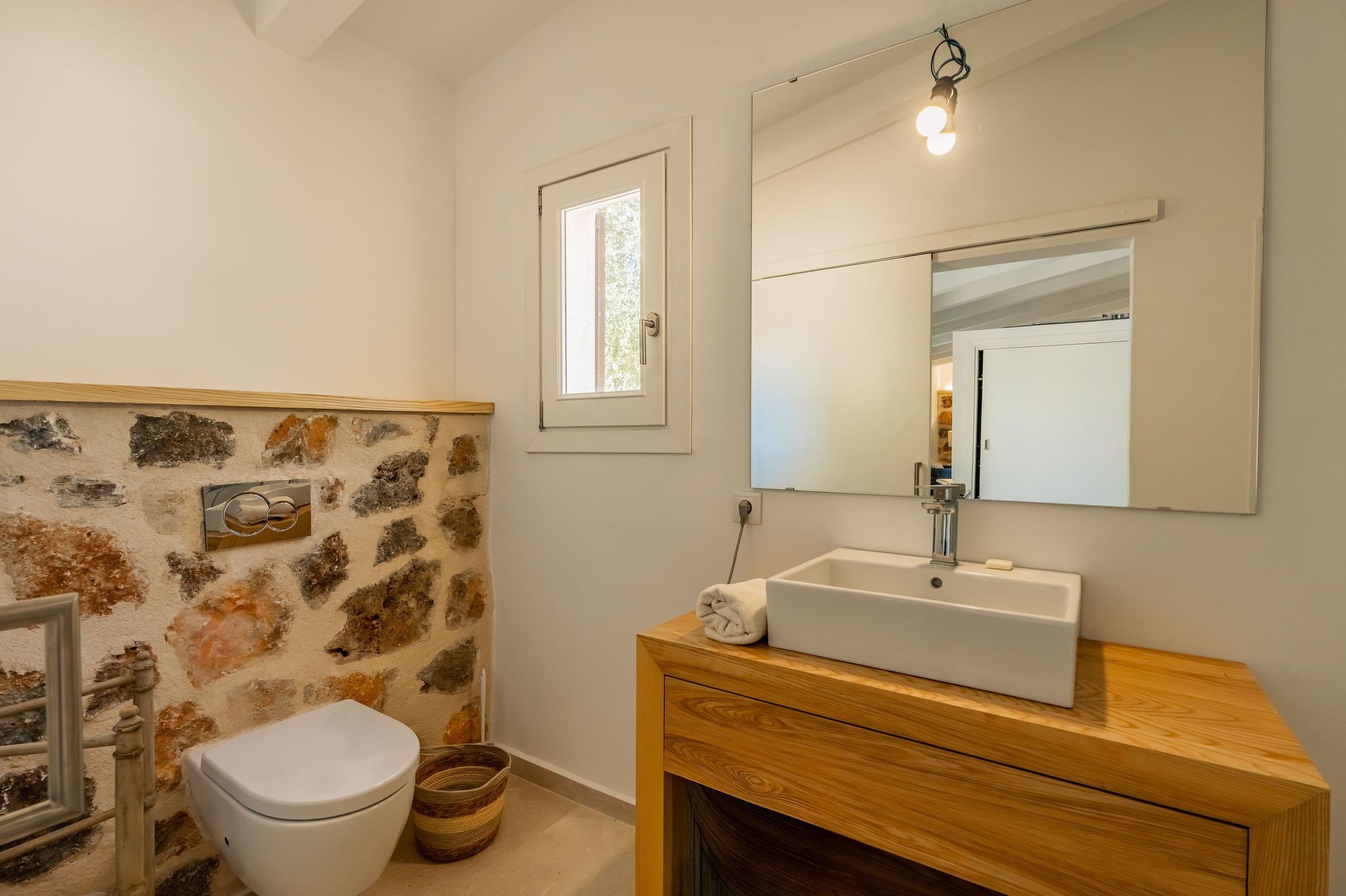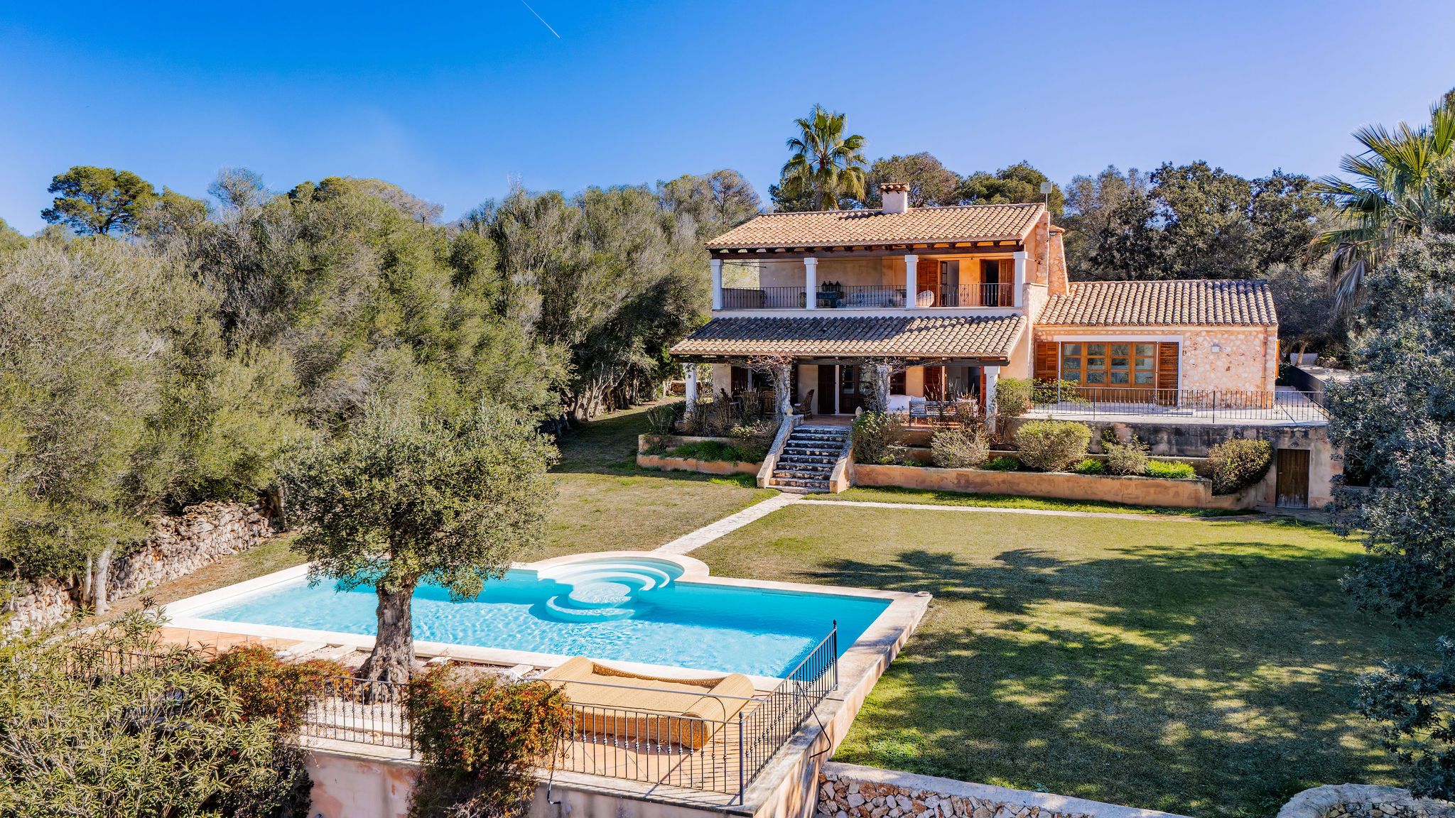 Esta finca de piedra natural se encuentra cerca de Alqueria Blanca, sobre una parcela de 25.497 m², en un entorno tranquilo y en plena naturaleza. La amplia propiedad ofrece un alto nivel de privacidad, así como un jardín consolidado con olivos y vegetación mediterránea. La casa principal, construida en el año 2002, dispone de dos dormitorios, cada uno con su propio baño en suite. El luminoso salón-comedor constituye el punto central de la vivienda y se abre al entorno natural que la rodea. Un espacio independiente resulta ideal como sala de lectura o despacho. La espaciosa cocina ofrece suficiente espacio para agradables veladas con familia y amigos. En la planta superior se encuentra además una terraza cubierta con bonitas vistas a las montañas circundantes y al paisaje natural. La piscina de 58 m² se integra de forma armoniosa en el entorno verde. Una casa de invitados independiente, con dormitorio y zona de estar, aporta un plus de confort y privacidad. El conjunto se completa con otro edificio que alberga un garaje doble. La propiedad está equipada con bomba de calor para la climatización y se calienta mediante calefacción central de gasóleo con radiadores. La parcela dispone de dos accesos, uno por el sur y otro por el norte, lo que ofrece múltiples posibilidades de uso. Una propiedad ideal para quienes valoran la tranquilidad, la naturaleza y el auténtico ambiente mallorquín.
