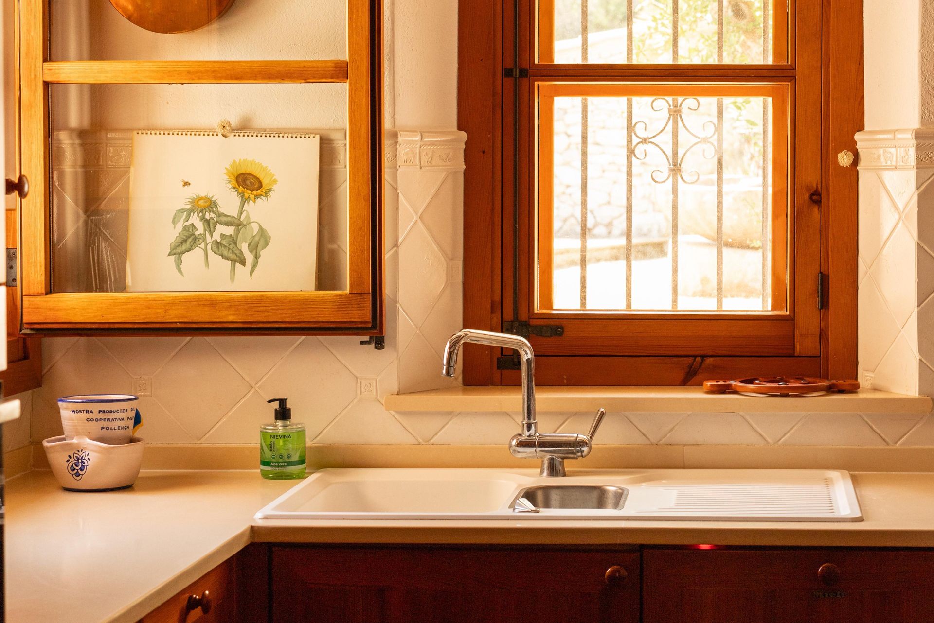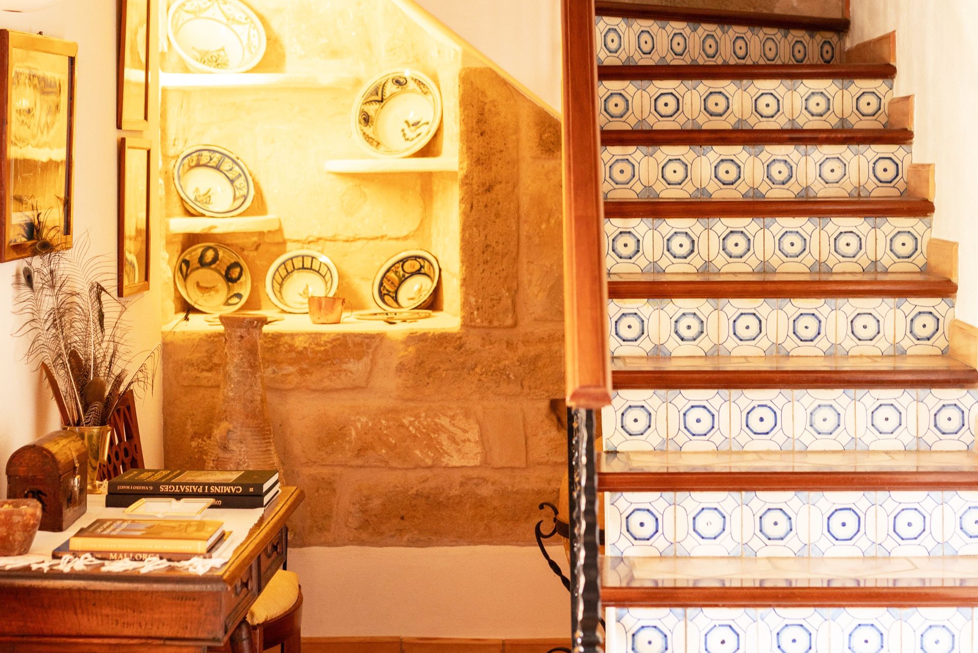 La vivienda conserva muros de piedra ancestral, suelos de terracota artesanal y techos con vigas de madera vista, combinando detalles históricos con confort moderno. Su interior alberga mobiliario auténtico de la nobleza mallorquina, testimonio del lujo y esplendor de épocas pasadas.