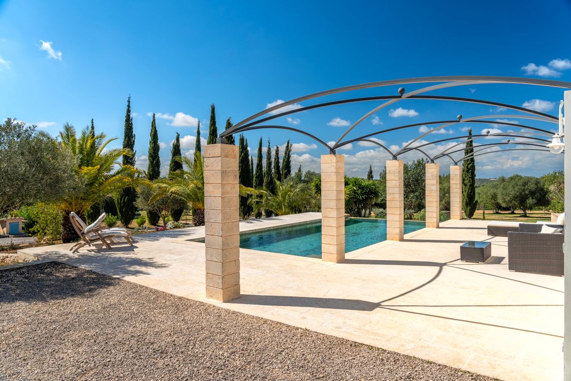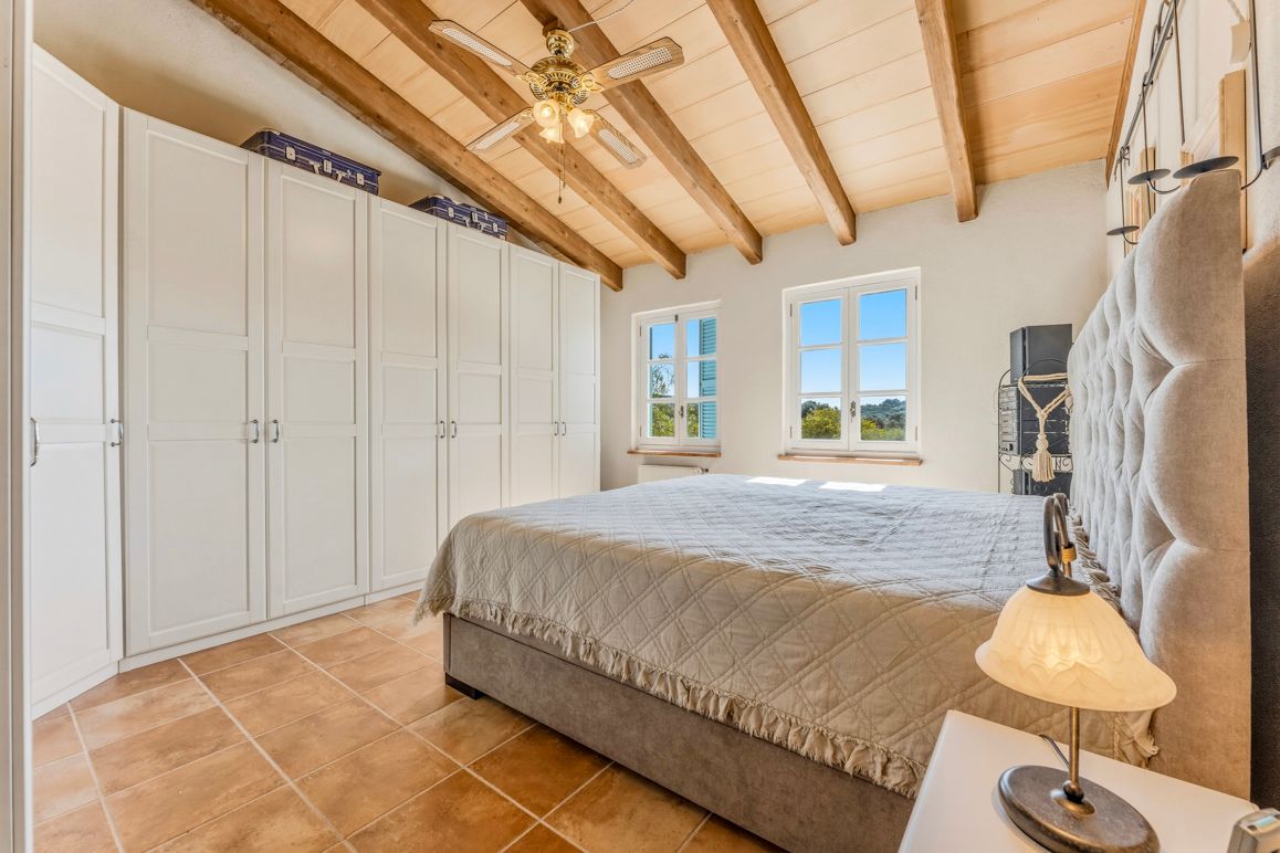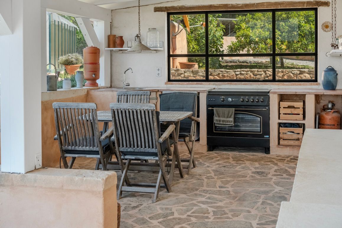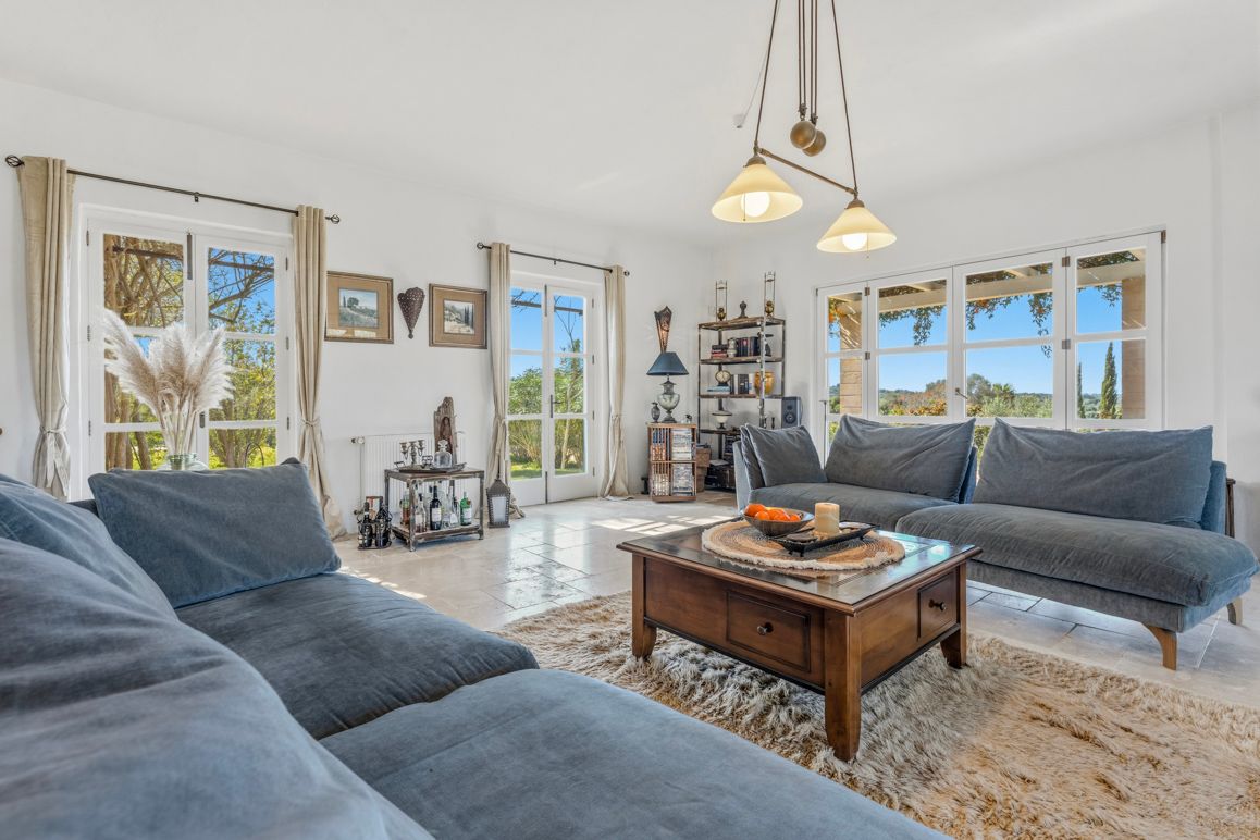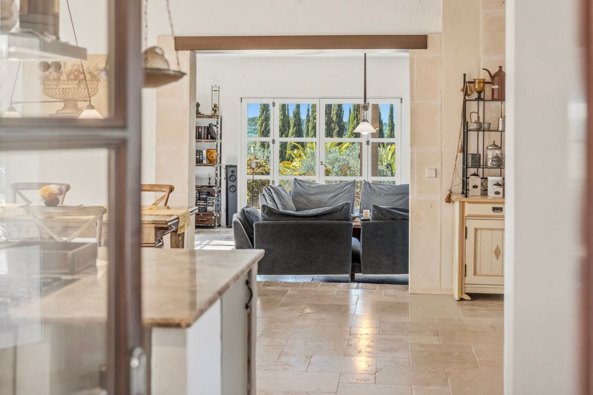 Enclavada en el suave paisaje de colinas cerca de Manacor, esta encantadora finca se sitúa en una parcela de aprox. 14.004 m², completamente vallada, con amplias vistas hasta la Serra de Tramuntana. La tranquilidad, la privacidad y la luz especial de Mallorca definen esta propiedad. El conjunto se compone de la casa principal, una casita independiente, así como amplias terrazas cubiertas y al aire libre. Además, dispone de garaje y cuartos técnicos. En la planta baja de la casa principal, una bonita zona de entrada da paso a las estancias. Cocina, comedor y salón forman un centro acogedor con conexión directa al exterior. Esta planta se completa con un dormitorio y un baño. En la planta superior hay tres dormitorios y dos baños, además de una estancia de uso flexible, ideal como zona de yoga, fitness o despacho en casa. Una terraza complementa esta planta. La casita independiente cuenta con un dormitorio, un baño y una zona de estar con cocina integrada, y es ideal para invitados o para uso privado. El exterior ofrece varias terrazas, una amplia piscina y una estupenda cocina exterior, que traslada de forma natural la vida al aire libre durante los meses de verano. Aquí se pueden disfrutar horas de relax con familia y amigos en un ambiente agradable. Un huerto cuidadosamente diseñado, así como árboles frutales y olivos, subrayan el carácter rural y la cercanía a la naturaleza. La finca está concebida para su uso durante todo el año y ofrece un nivel de habitabilidad muy alto. La calefacción por suelo radiante, la calefacción central de gas y una chimenea garantizan un confort agradable en cualquier estación. Una instalación fotovoltaica con batería de almacenamiento, así como un pozo propio, refuerzan el enfoque sostenible y en gran medida autosuficiente del inmueble. A pesar de la ubicación tranquila y próxima a la naturaleza, se garantiza una conexión a Internet fiable, por lo que también es posible trabajar desde aquí sin problemas. Una propiedad especial para quienes valoran la tranquilidad, la privacidad y el carácter auténtico de Mallorca y, al mismo tiempo, desean disfrutar de la cercanía a las infraestructuras y a la costa.