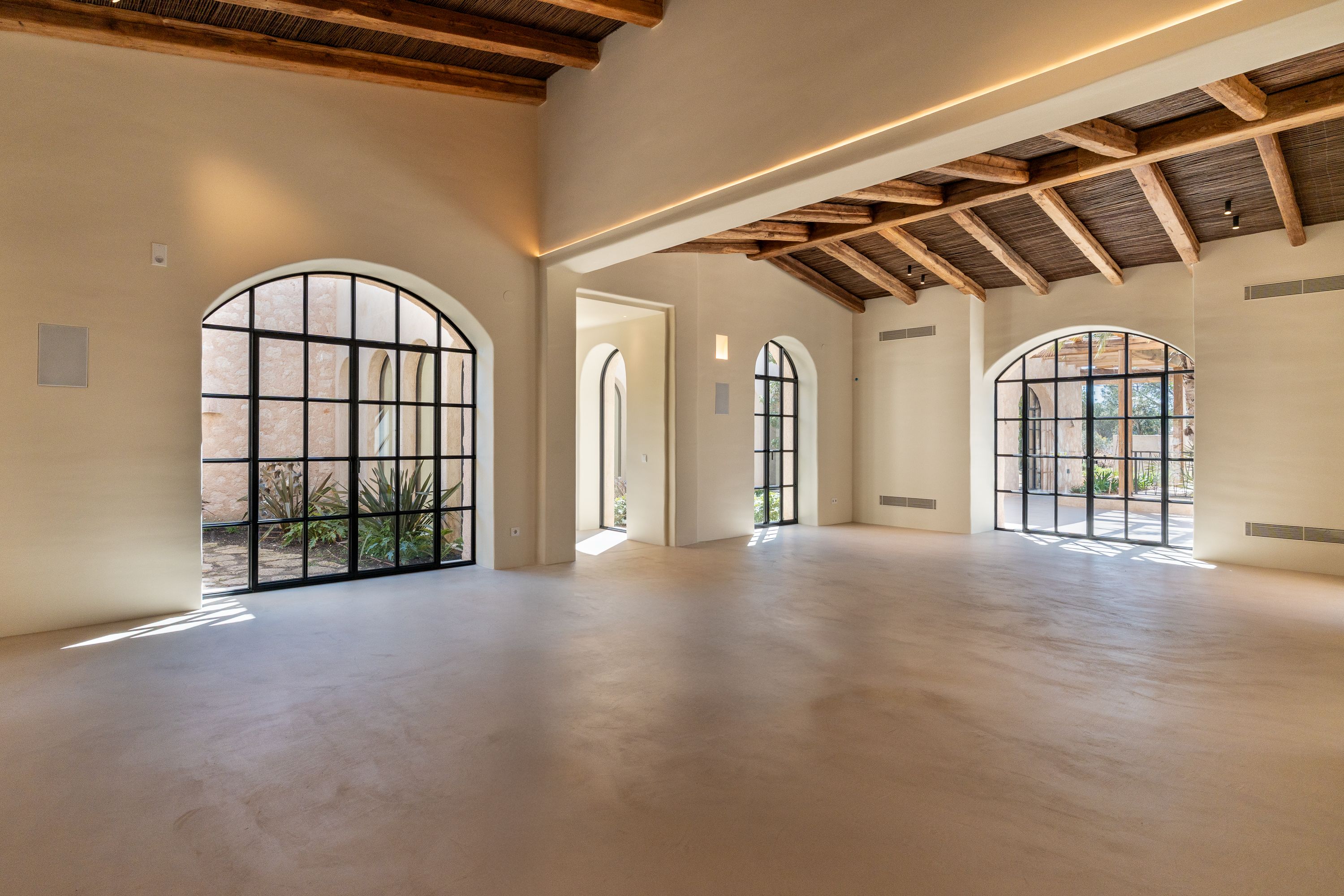 La propiedad cuenta con aire acondicionado por conductos en todas partes y calefacción por suelo radiante mediante bomba de calor, así como aire acondicionado por conductos en todas las áreas. La electricidad se suministra a través de la red eléctrica. Además, tiene su propio pozo para el suministro de agua y el suelo consiste en hormigón pulido.