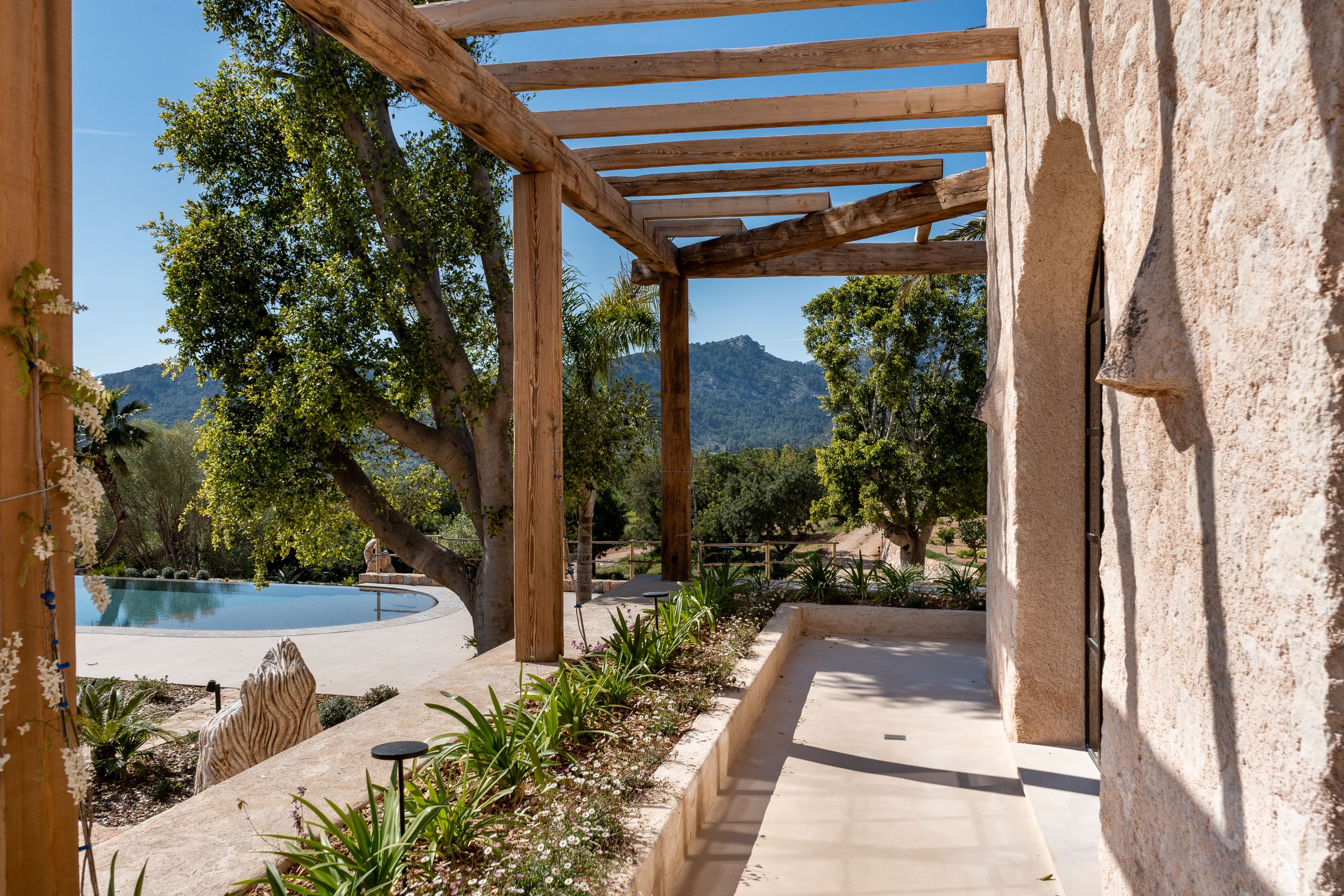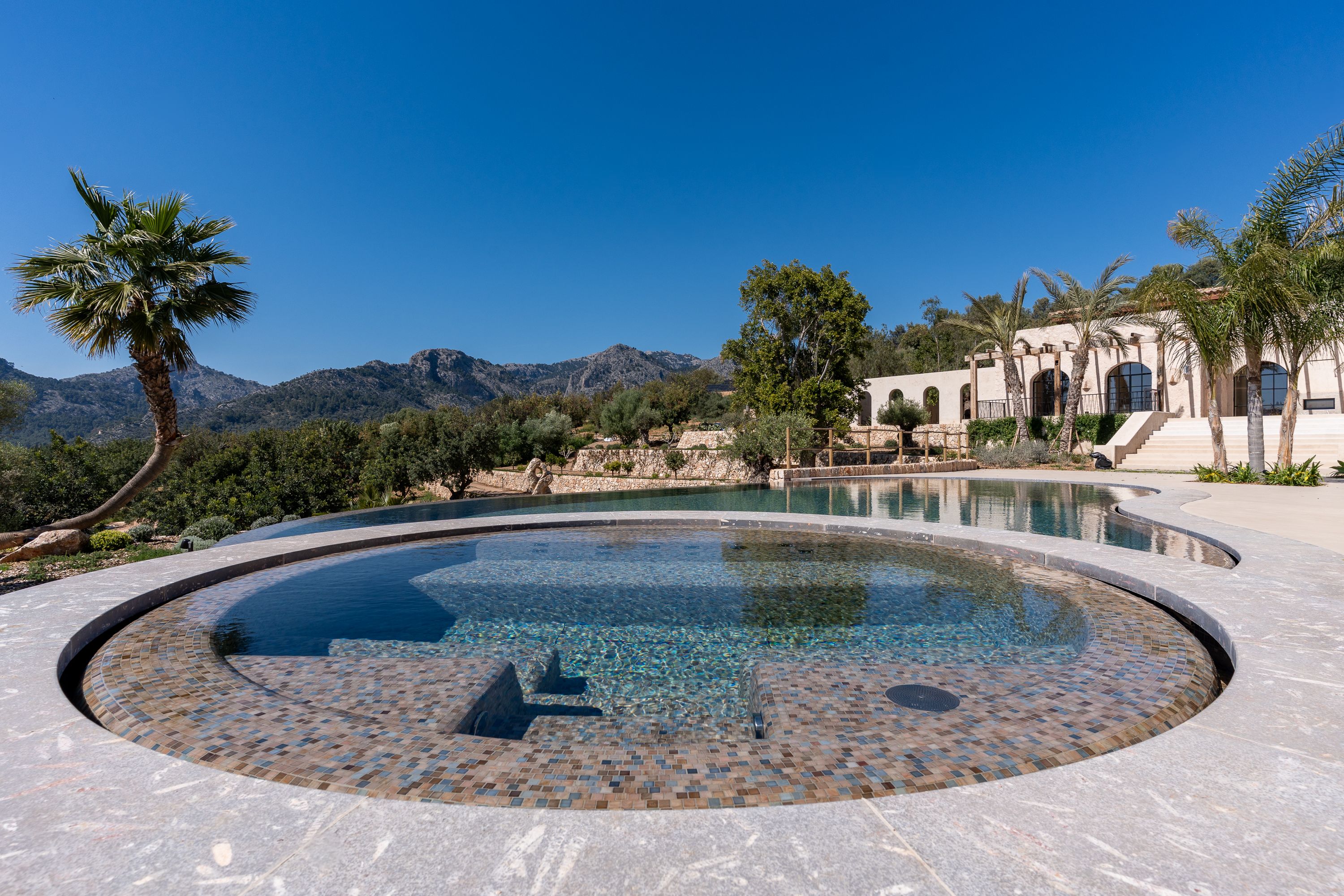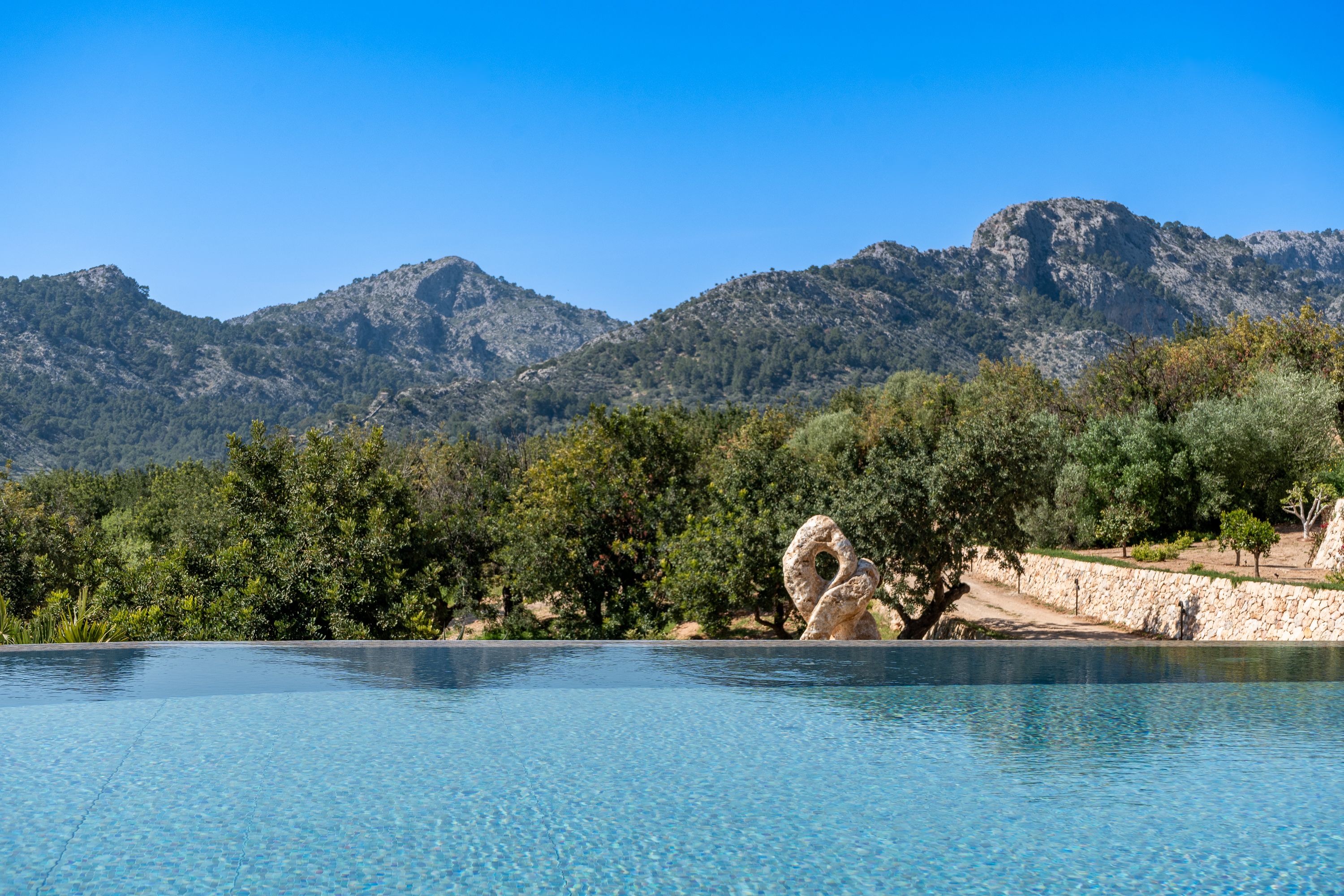 El área exterior es un verdadero santuario, con una impresionante piscina de 84 m² que cuenta con un jacuzzi integrado, ofreciendo el lugar perfecto para la relajación y el disfrute. Una cocina exterior mejora el estilo de vida al aire libre, permitiendo cocinar y comer fácilmente al aire libre. Los exuberantes jardines que rodean la propiedad proporcionan un entorno tranquilo y pintoresco, ideal para relajarse y disfrutar de la belleza natural del campo de Bunyola.