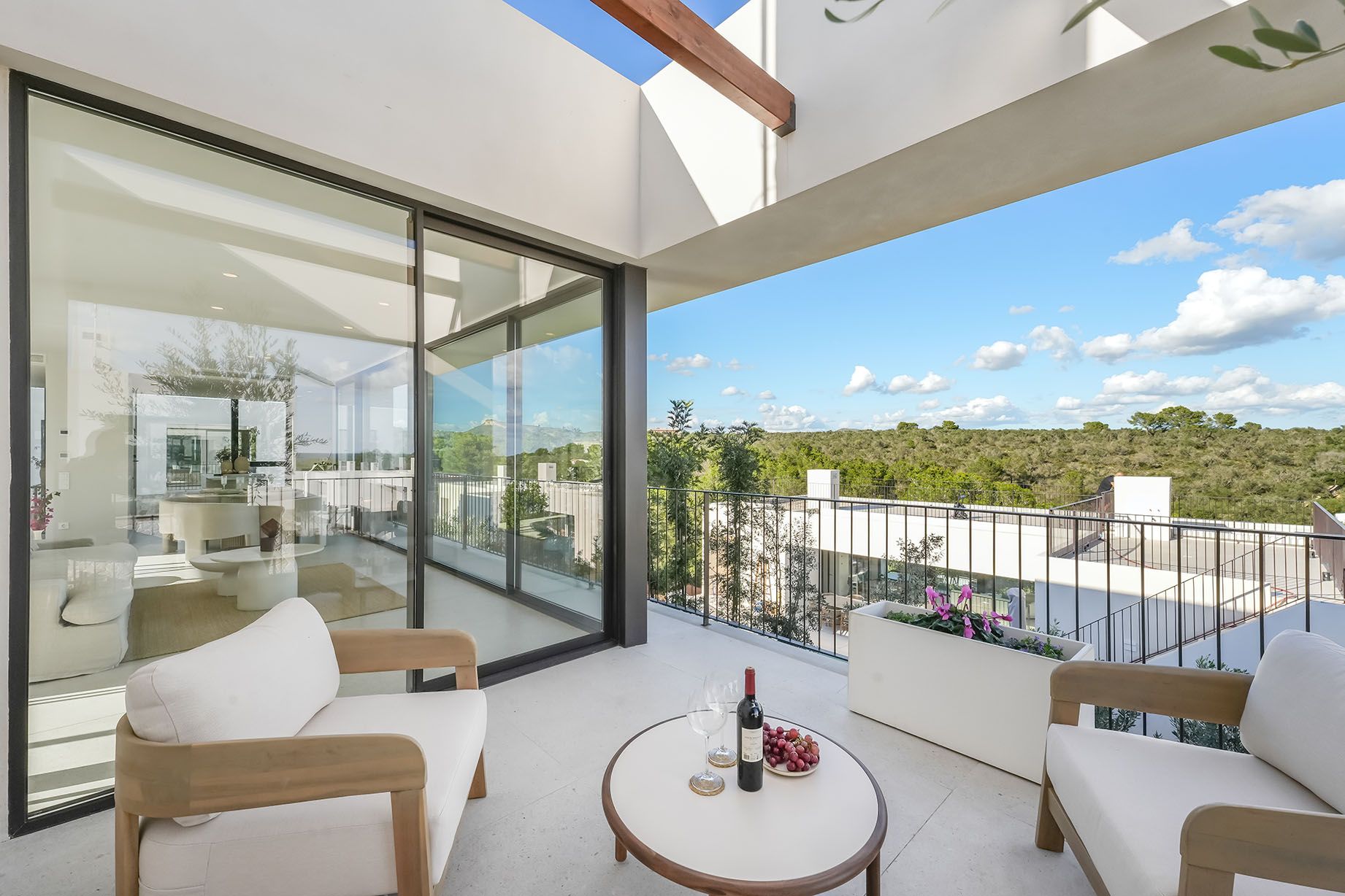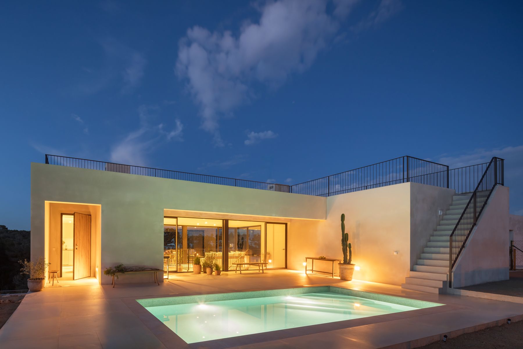 El proyecto de nueva construcción "HORIZONZ" consta de 21 villas de alta categoría y está situado en un hermoso paisaje cerca de la bahía de Cala Domingo. Rodeado de una zona verde, lejos del ruido y la dinámica de los grandes centros turísticos, este complejo de villas ofrece excelentes condiciones para unas vacaciones relajantes, con rápido acceso a todas las comodidades y opciones de ocio. Cada villa se presenta en un ambiente moderno y sofisticado, ofreciendo a los propietarios materiales y equipamientos de alta calidad. En la planta superior se encuentran un salón/comedor con cocina integrada y aseo de invitados, así como un dormitorio con baño en suite y vestidor. El punto culminante es la terraza cubierta con una hermosa vista panorámica.