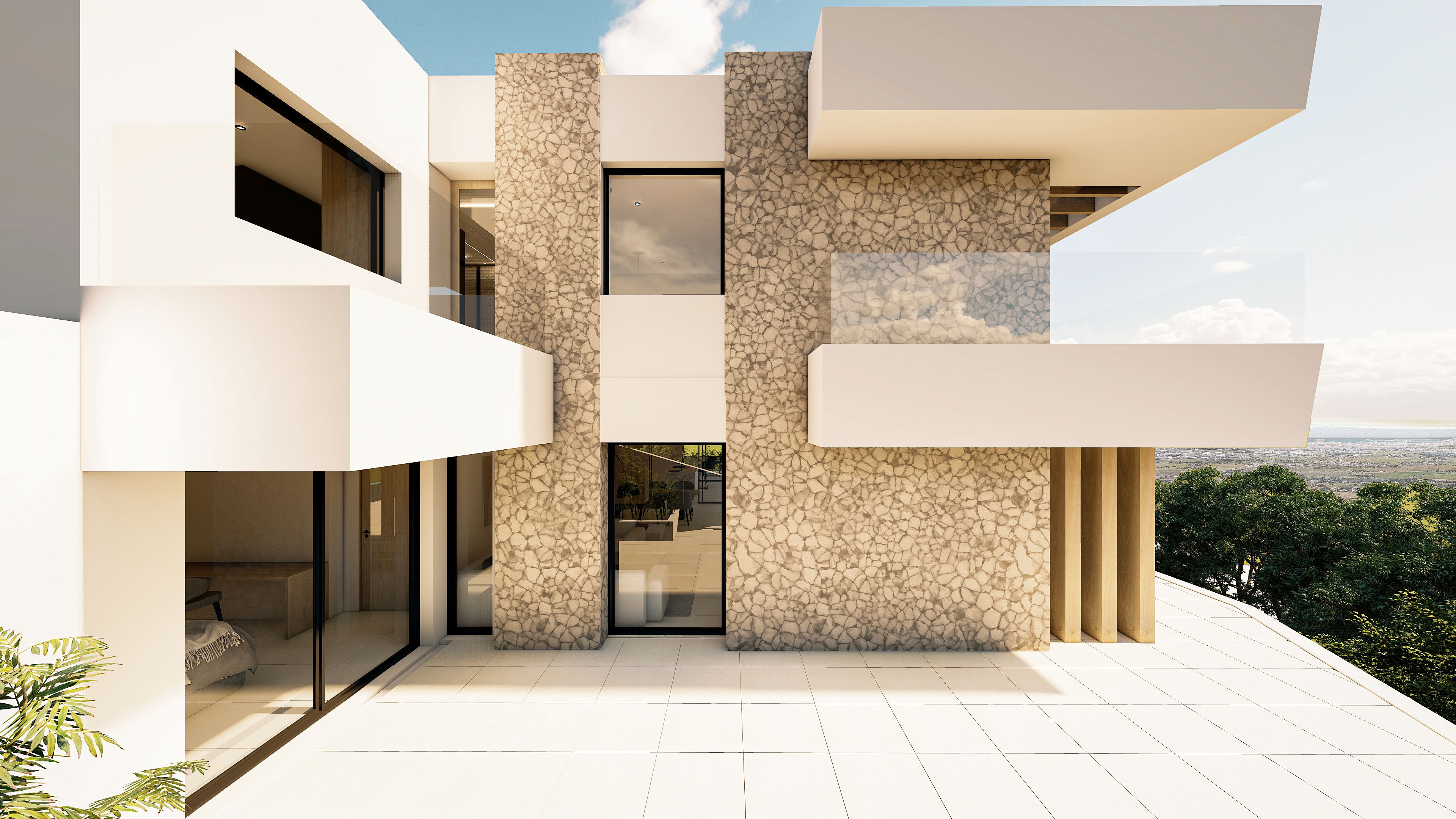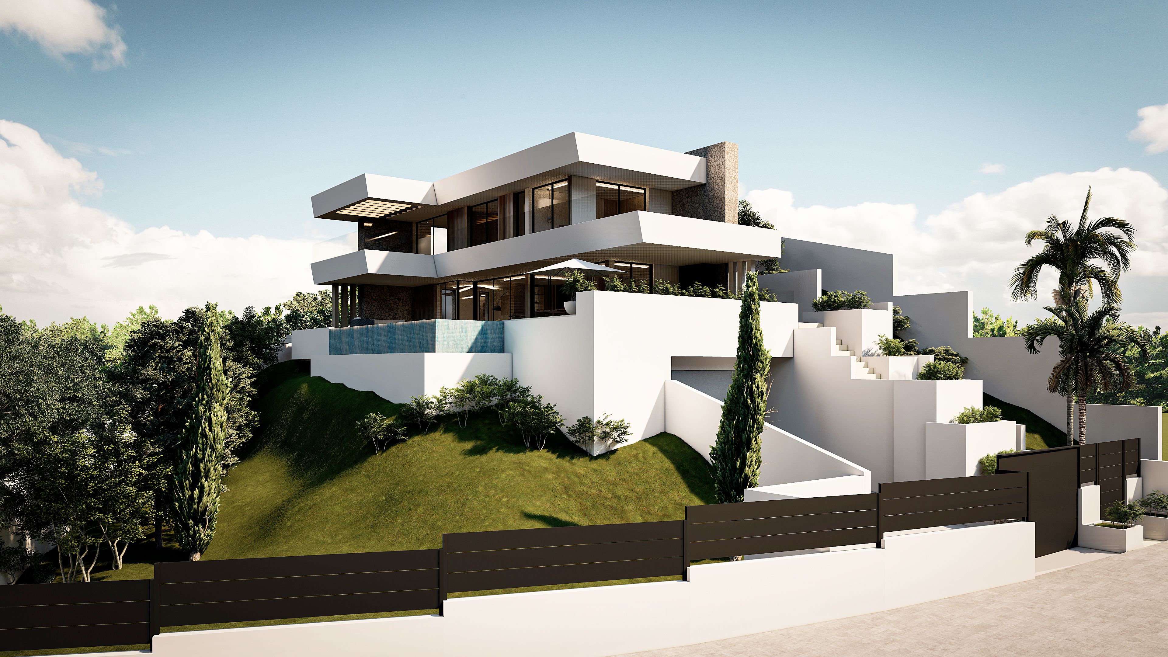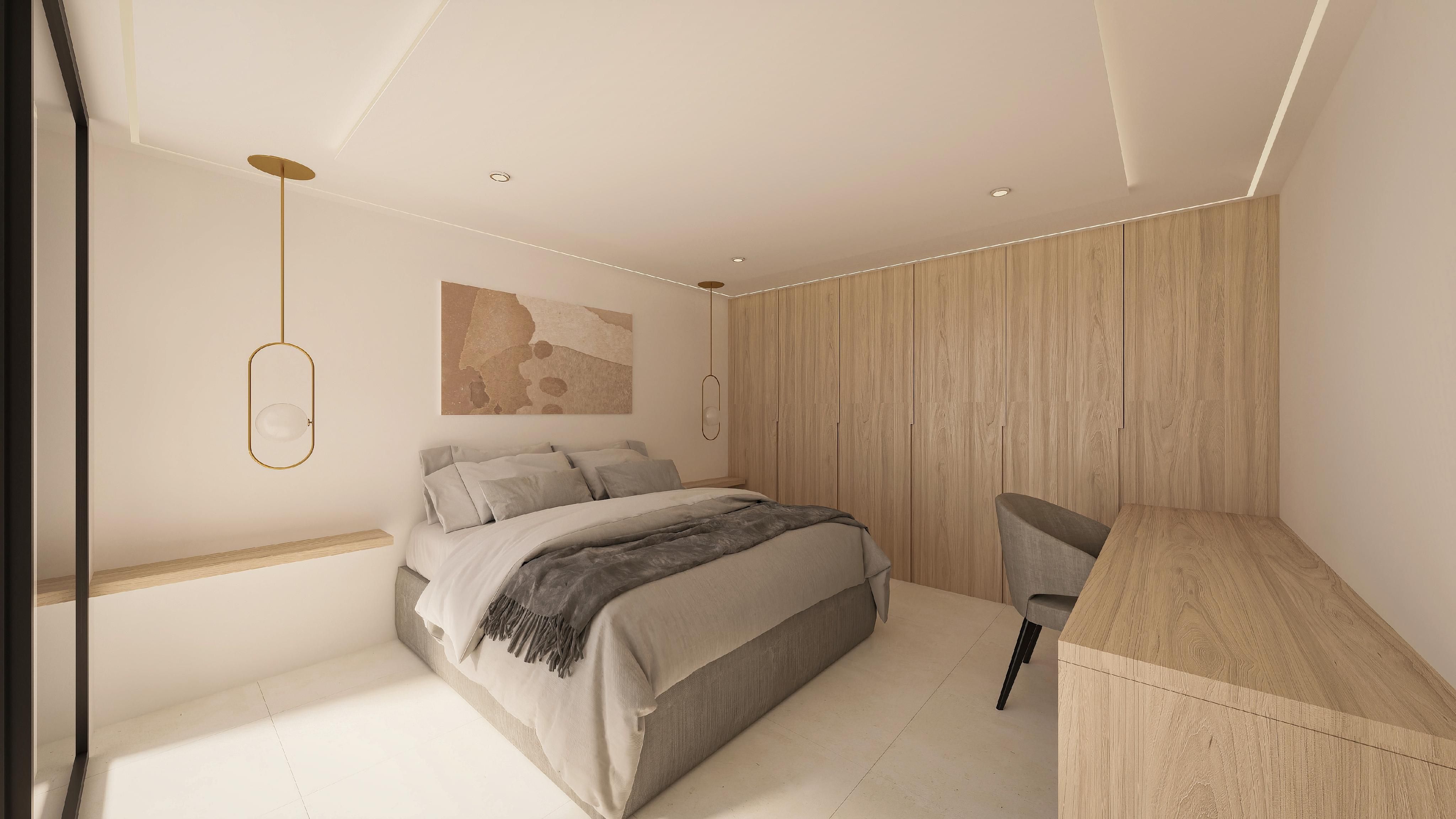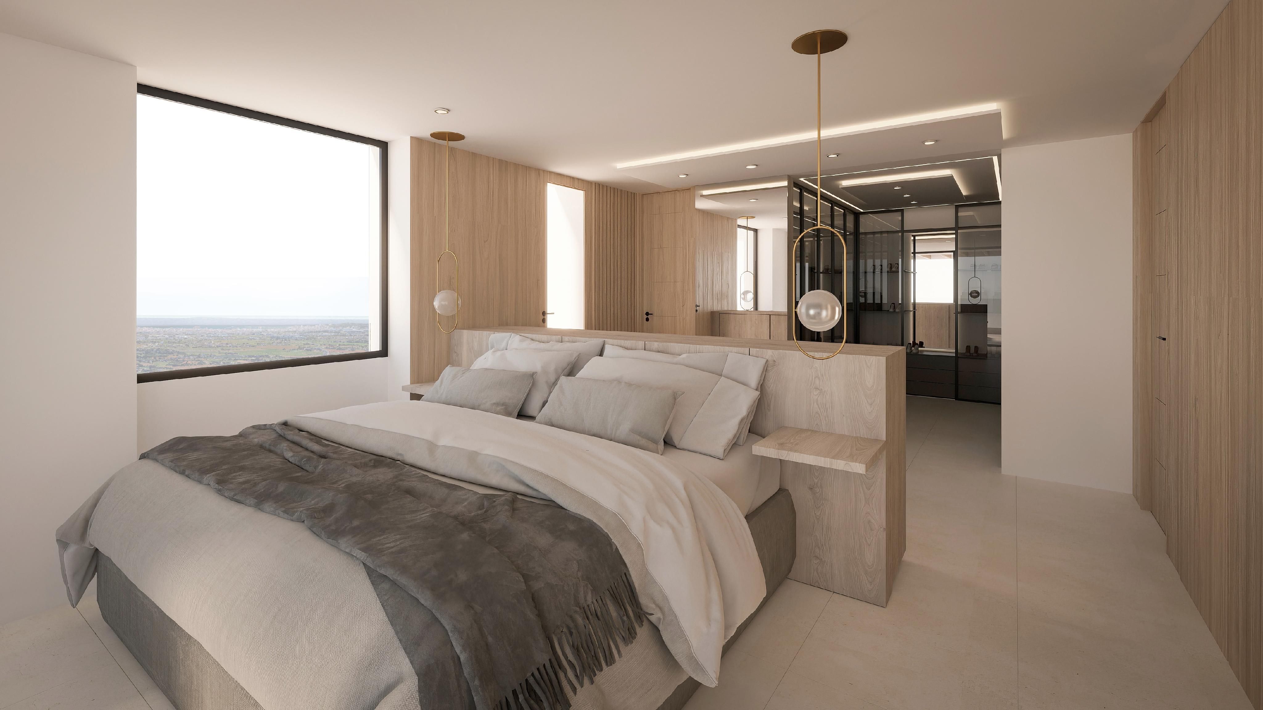 La villa cuenta con cuatro amplios dormitorios y cuatro cuartos de baño distribuidos en tres plantas, para ofrecer el máximo confort. Las amplias zonas de estar de concepto abierto están inundadas de luz natural y cuentan con grandes ventanales que conectan a la perfección los espacios interiores y exteriores. La cocina de última generación está equipada con electrodomésticos de gama alta y acabados de primera calidad.