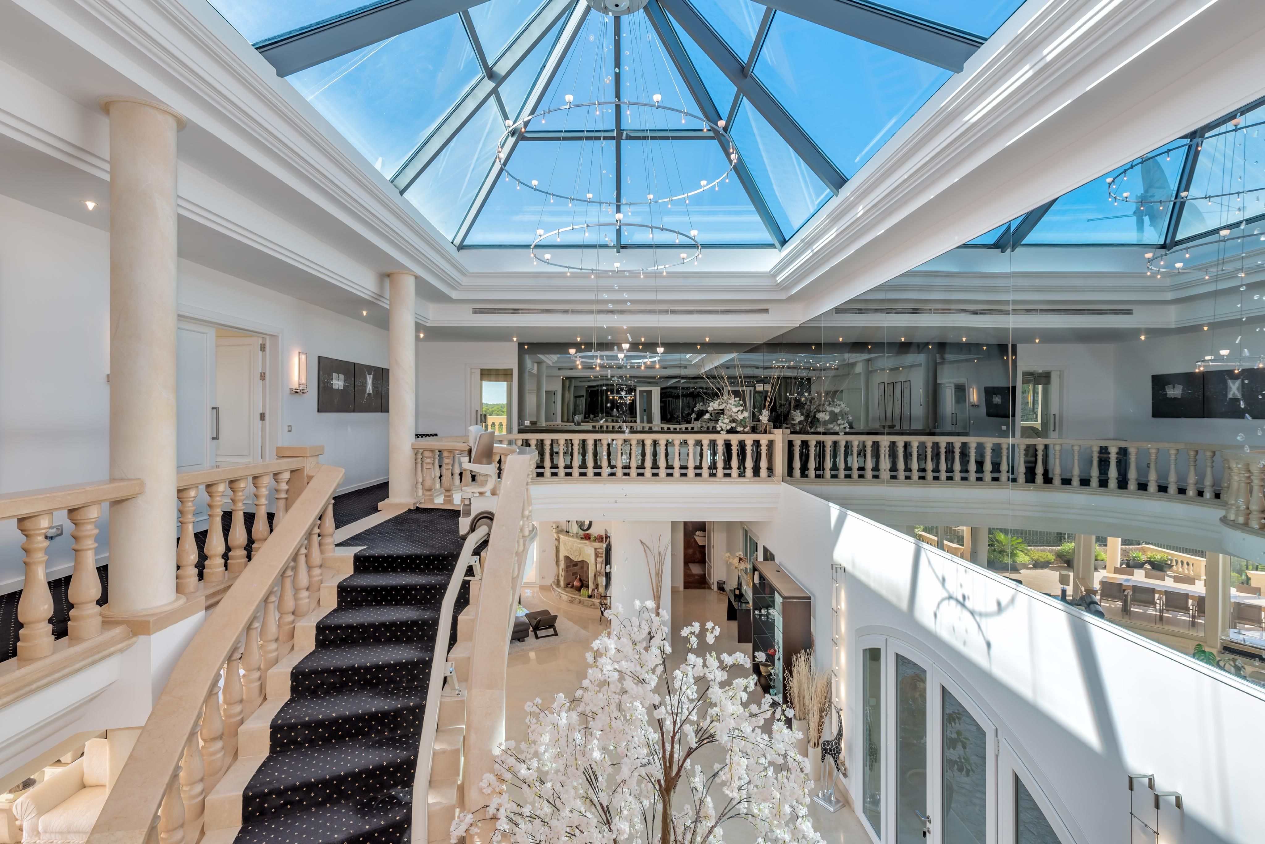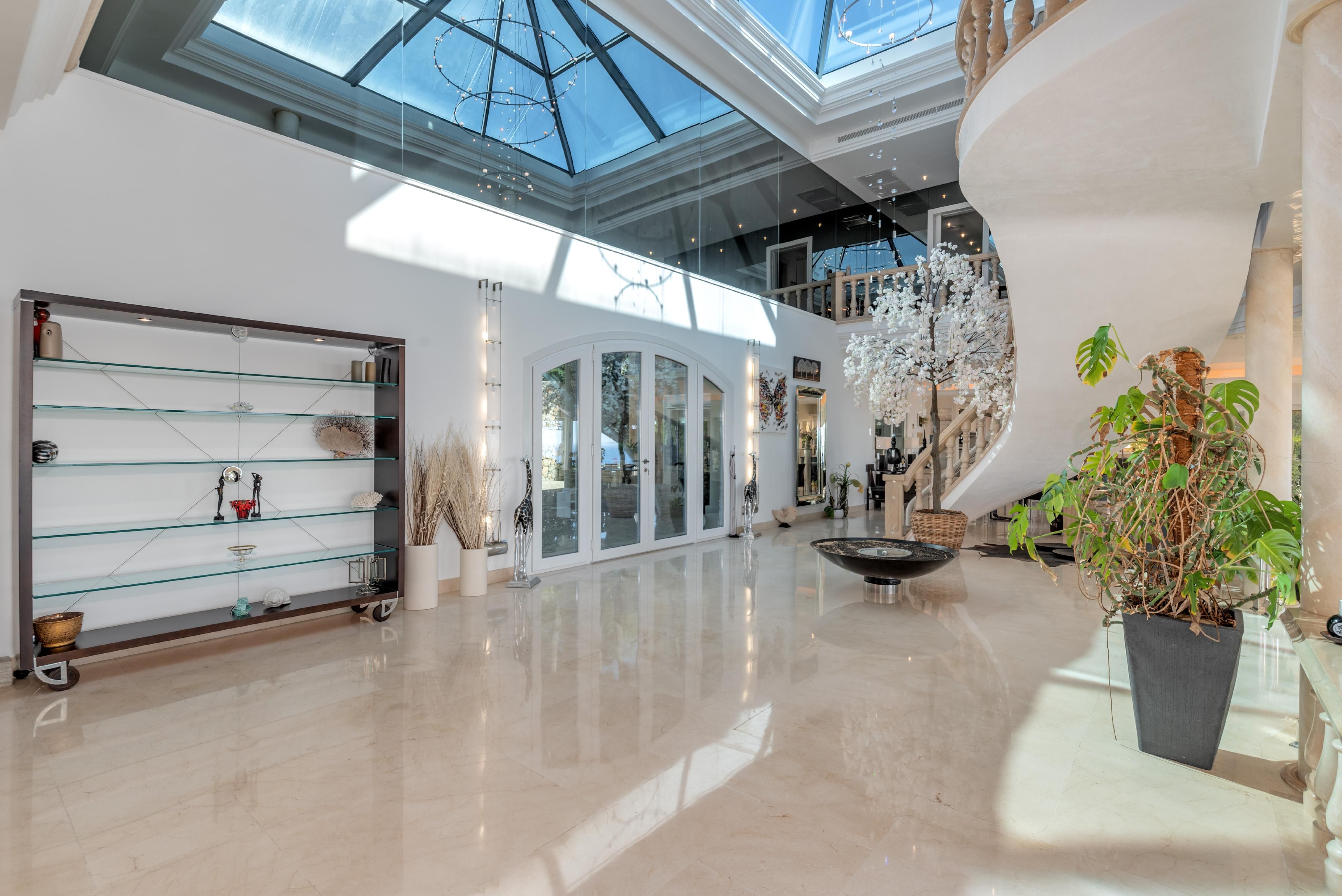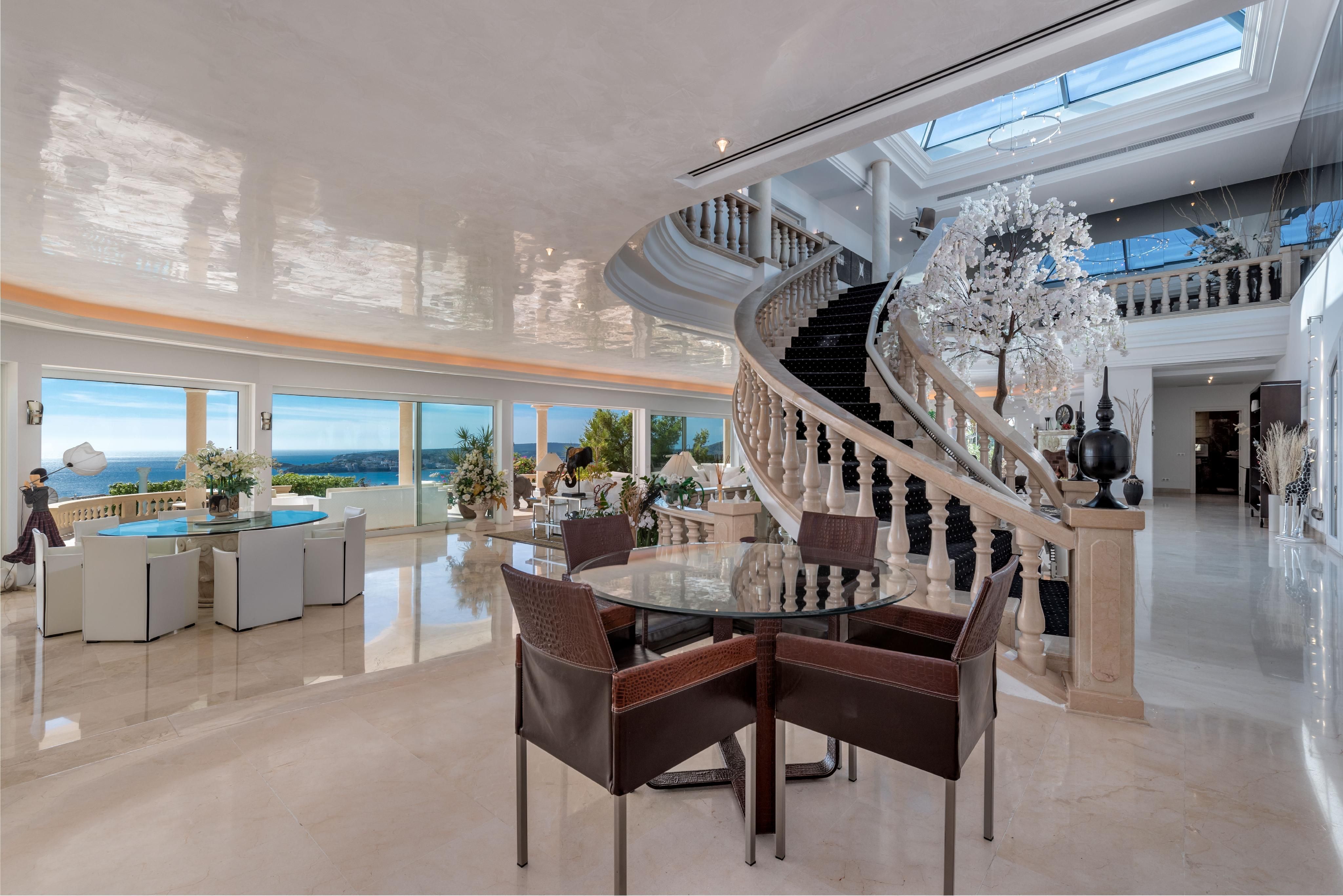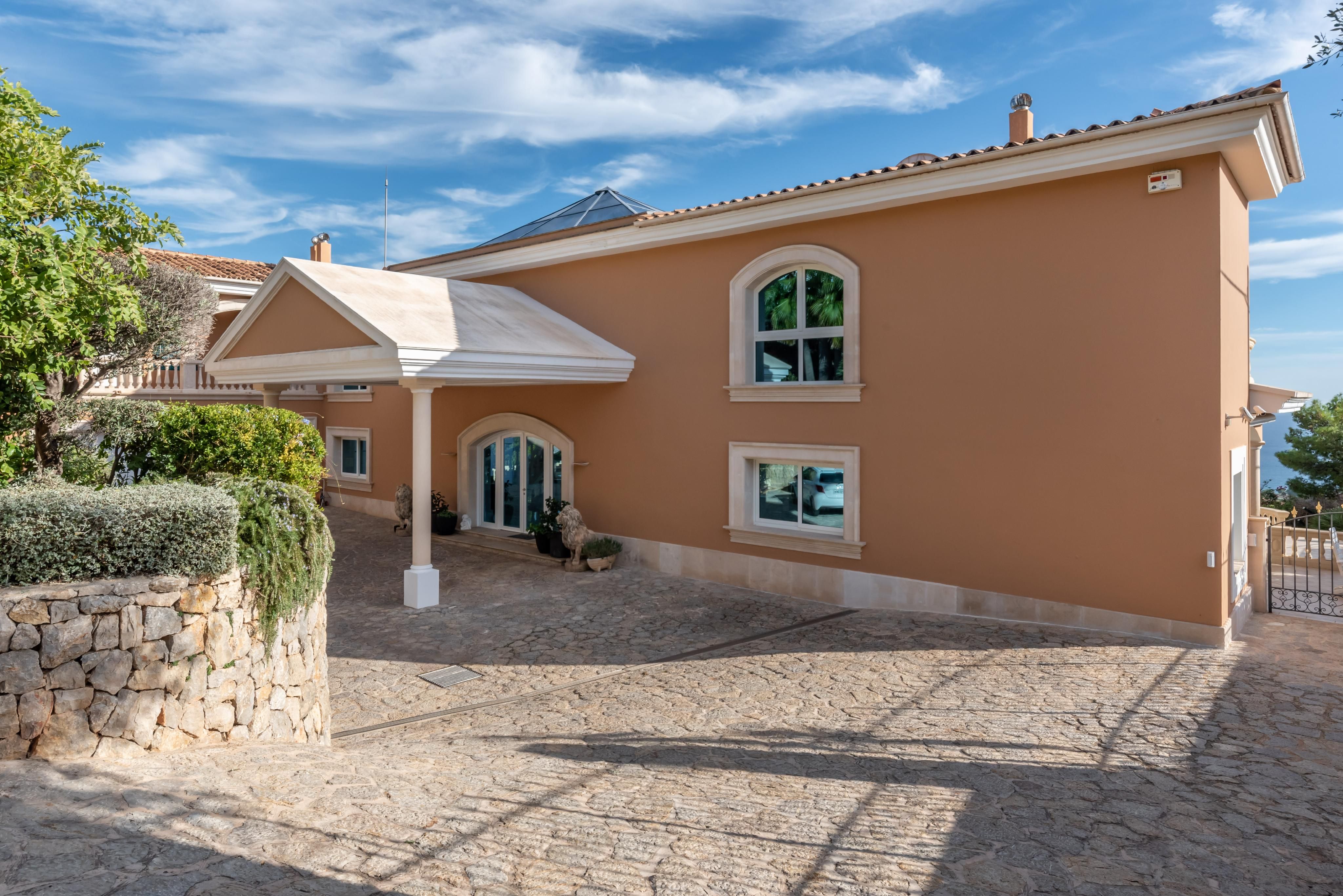Esta villa excepcional ofrece impresionantes vistas panorámicas sobre la bahía de Portals y disfruta de sol durante todo el día. Diseñada para vivir al estilo mediterráneo en su máxima expresión, cuenta con amplias terrazas cubiertas y descubiertas, perfectas para cenar al aire libre y entretenerse bajo las estrellas. El área exterior es un verdadero oasis, con una gran piscina, relajante jacuzzi y un hermoso jardín paisajístico que ofrece privacidad y tranquilidad. En el interior, la villa combina elegancia y comodidad. La cocina completamente equipada se abre a luminosas áreas de estar, mientras que una impresionante escalera conduce al primer piso, donde amplios dormitorios, cada uno con su propio baño en suite, ofrecen impresionantes vistas al mar desde cada ventana. Una oportunidad única para poseer una propiedad notable que encarna perfectamente el encanto y la sofisticación de la vida costera mediterránea.