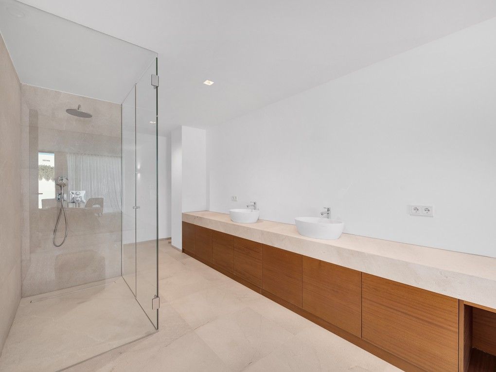 Esta moderna villa de nueva construcción, recientemente finalizada, se encuentra directamente en Port Andratx, a pocos minutos andando del paseo marítimo con sus numerosos restaurantes y boutiques. La villa ofrece impresionantes vistas al puerto y a la Sierra de Tramuntana. La propiedad se extiende sobre un total de cinco plantas, todas ellas fácilmente accesibles por ascensor. El amplio salón con cocina americana da directamente a una terraza cubierta. En la azotea, una piscina invita a refrescarse en los calurosos días de verano y, junto con la zona ajardinada, ofrece mucho espacio y privacidad. La villa tiene un total de cuatro dormitorios, todos con cuarto de baño propio. También hay dos plazas de garaje y dos plazas de aparcamiento al aire libre, al igual que sistema de alarma, aire acondicionado (f/c) y calefacción por suelo radiante.