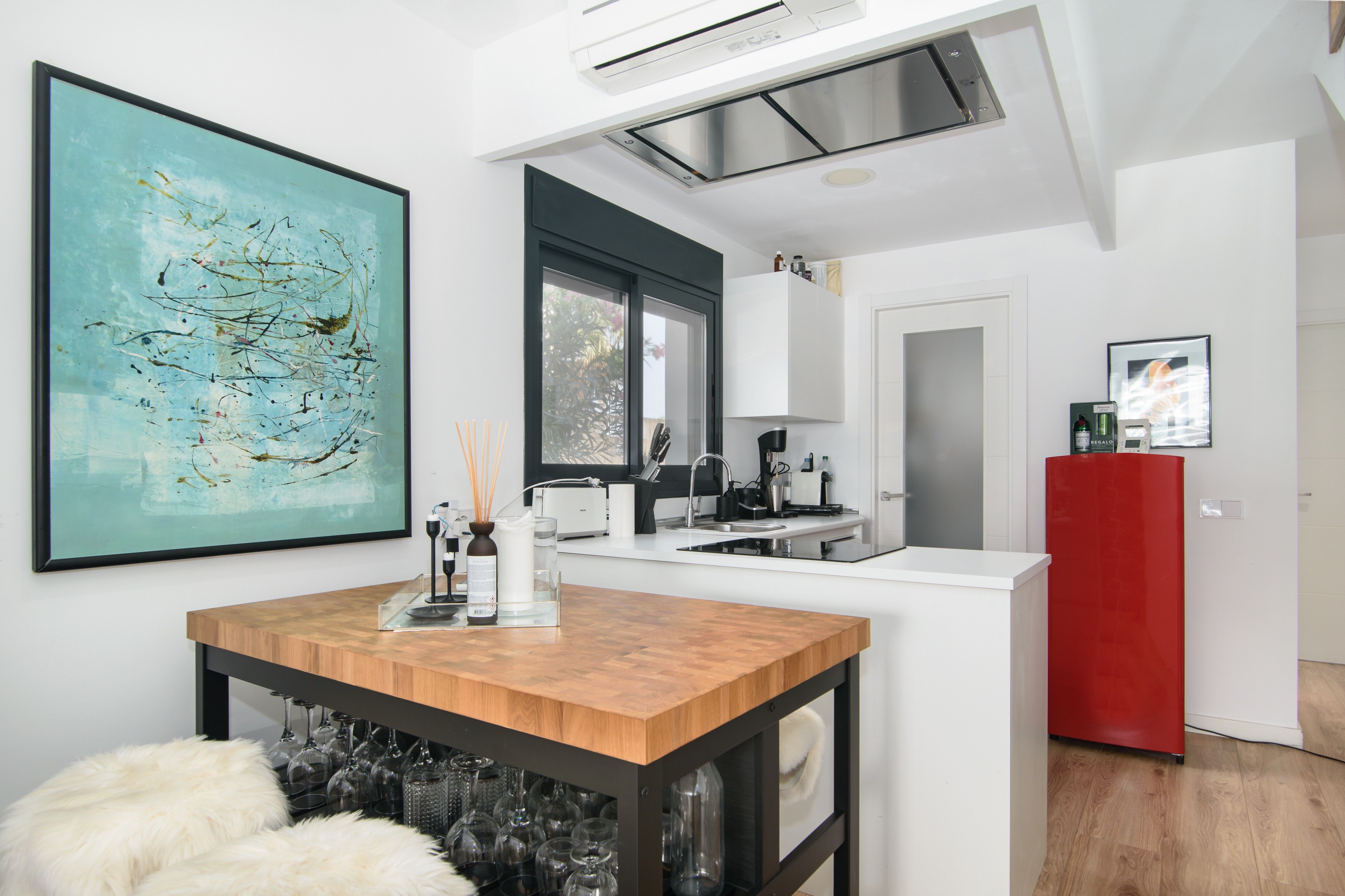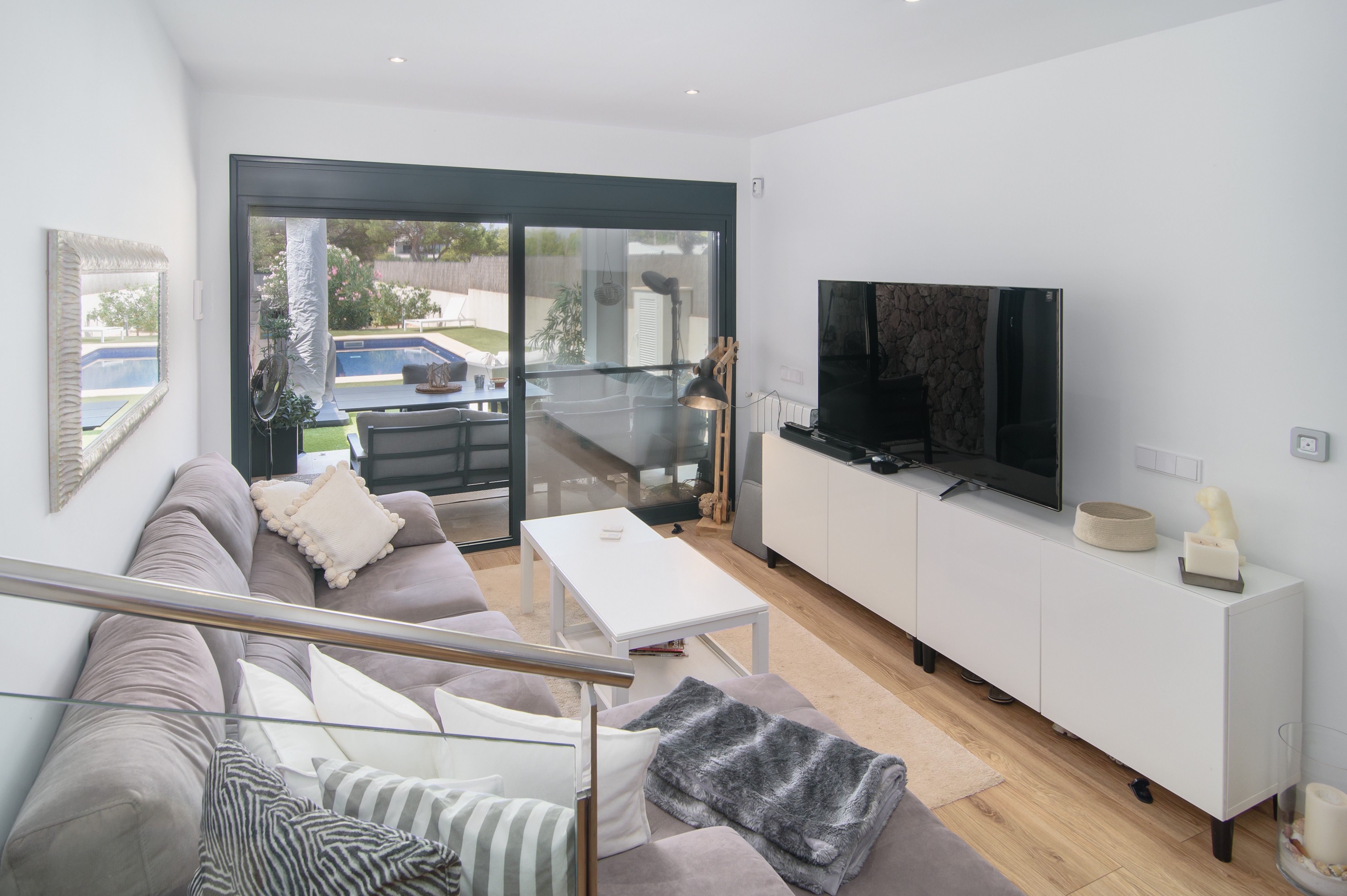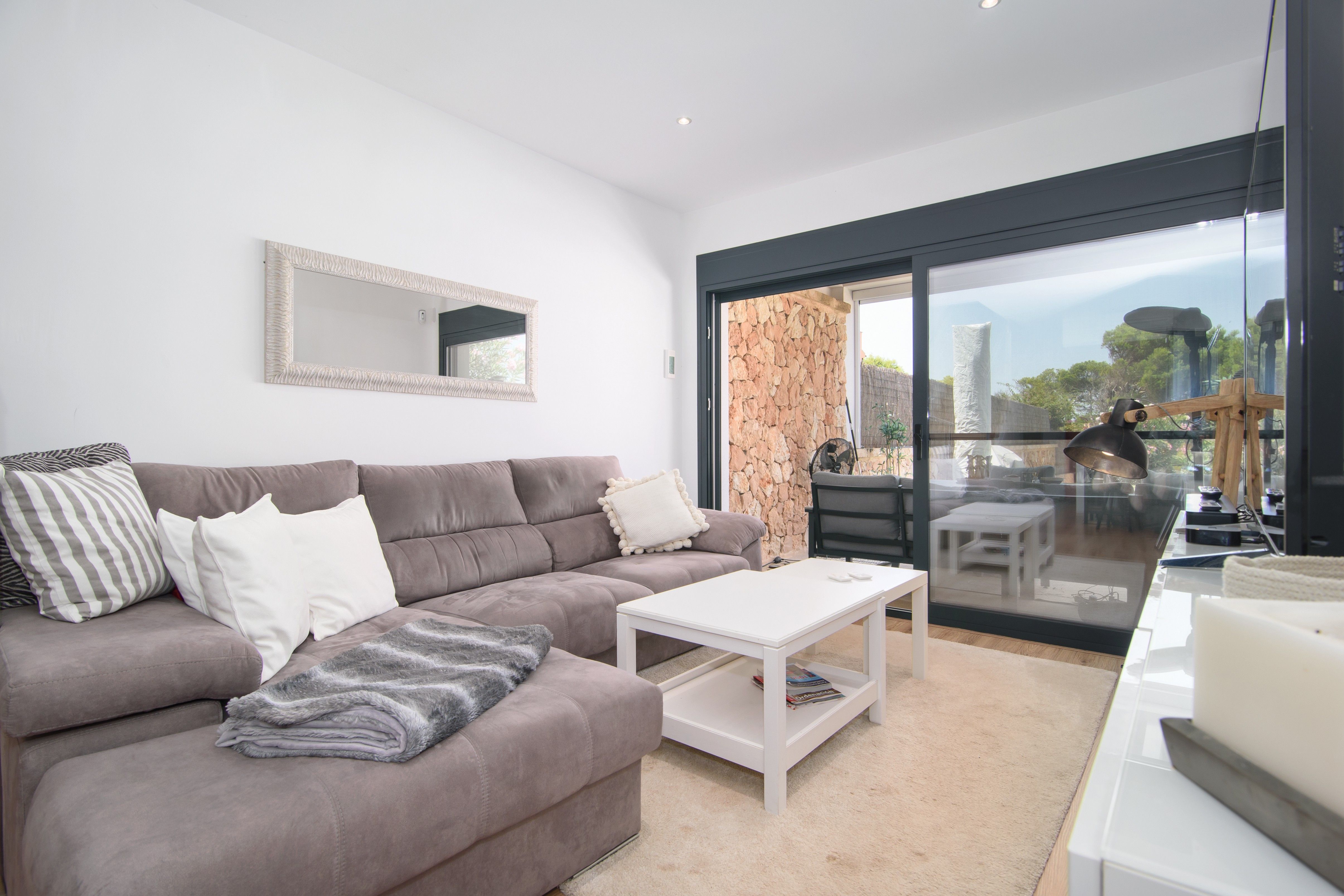 Esta casa moderna adosada, construida en 2018, está situada en una parcela espaciosa en una calle lateral tranquila de Cala Pi, a solo un paso del pintoresco Torrente. Lo que hace especial a esta casa es que cada metro cuadrado ha sido aprovechado de manera óptima, sin desperdiciar ni un solo centímetro. En la planta baja, encontrará una acogedora sala de estar-comedor con cocina abierta, un dormitorio confortable, un pequeño baño con ducha y un práctico cuarto de servicio. En la planta superior, hay dos dormitorios adicionales, cada uno con su propio baño. Desde el dormitorio principal, una elegante escalera exterior conduce a la terraza en la azotea, que es un verdadero punto destacado. Aquí, podrá disfrutar de vistas impresionantes: en la parte trasera, se pueden ver los majestuosos pinos y la garganta del torrente, mientras que al frente se ofrece una maravillosa vista de los tejados de los vecinos y del mar centelleante hasta Colonia Sant Jordi. La casa está equipada con comodidades modernas, incluyendo aire acondicionado para veranos frescos e inviernos cálidos, calefacción central de gas, prácticos armarios empotrados, un sistema de ablandamiento de agua, persianas automáticas, una plaza de aparcamiento exterior y un sistema de riego automático, entre muchas otras características. ¡Aquí no solo encontrará una casa, sino un lugar donde realmente podrá sentirse cómodo!