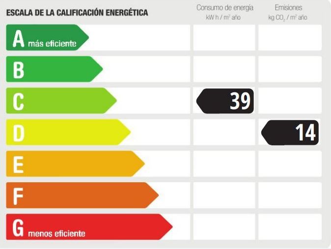 Año de construcción: 2018 • Valor de consumo energético: 39.18 kWh/(m2*a) • Emisiones CO2: 14.39 kg/m2 • Escala de Emisiones de CO2: D • Tipo de calefacción: Gas • Clase de eficiencia energética: C