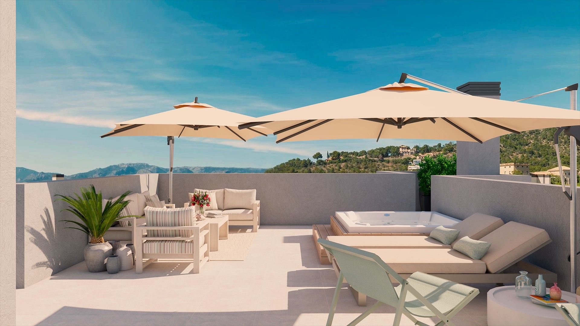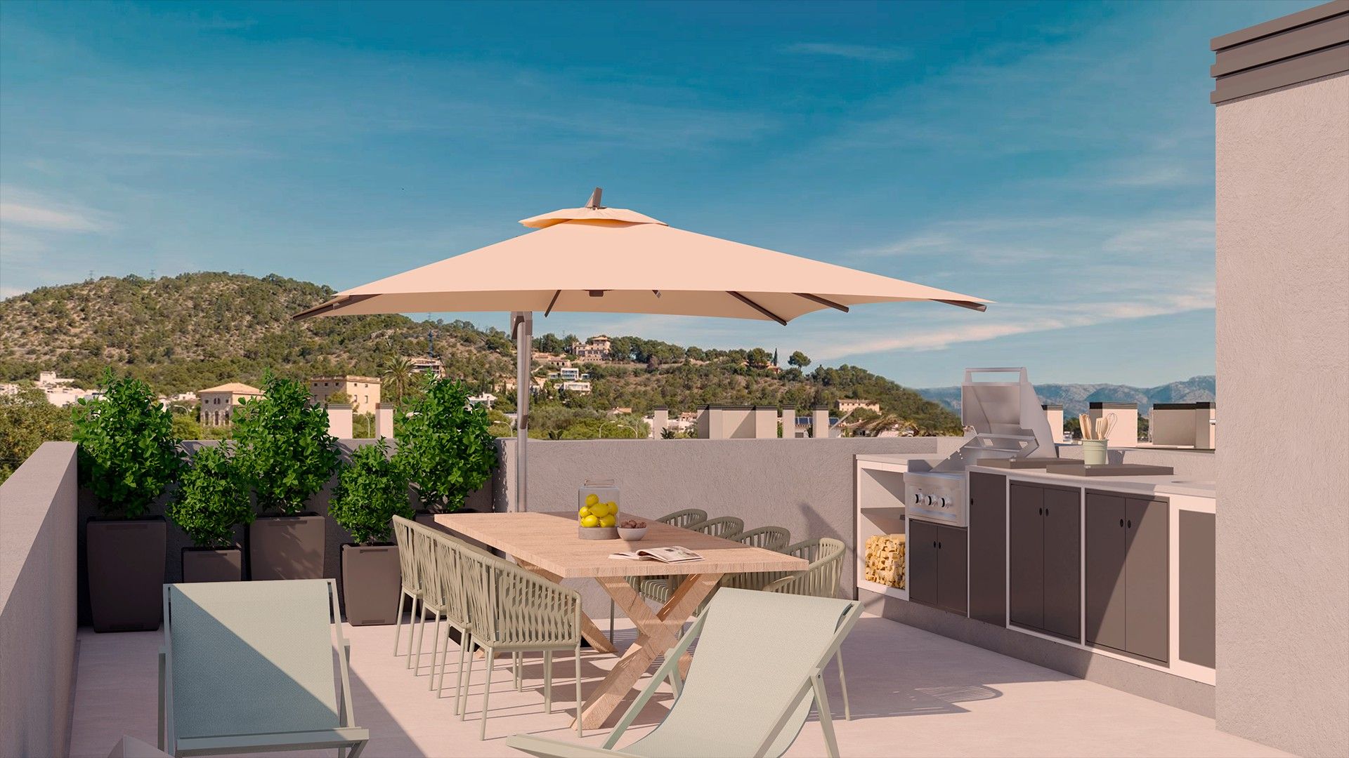 Tipo: Ático • Región: Son Vida & Palma Alrededores • Año de construcción: 2026 • Superficie total: 101 ㎡ • Dormitorios: 3 • Baños: 2 • Parkings: 2 • Terraza • Cocina • Ascensor • Piscina • Tipo de calefacción: Aire acondicionado por conductos • Tipo de calefacción: Bomba de calor • Revestimiento del suelo: Baldosas