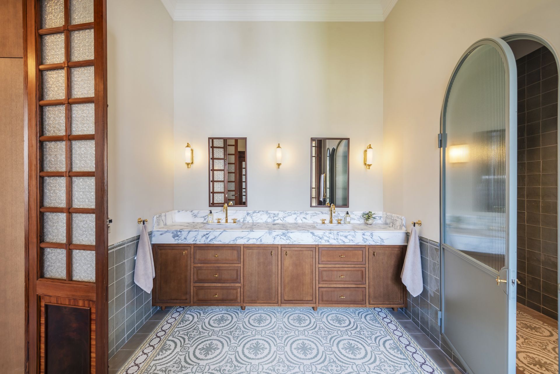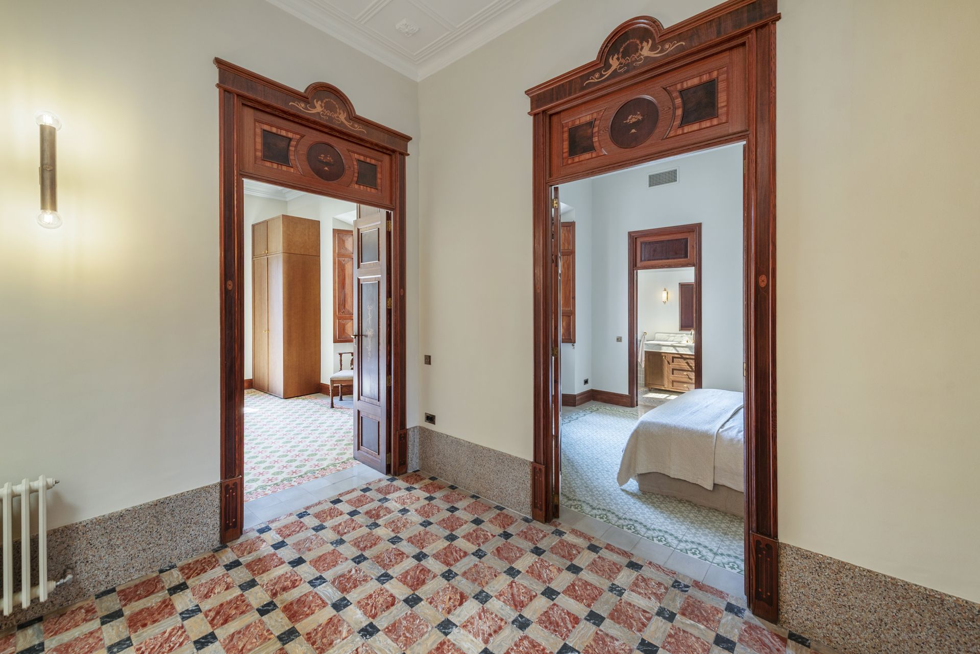 Con meticulosa atención al detalle, la propiedad conserva su belleza arquitectónica original, con estucos en cada estancia, azulejos mallorquines y un salón decorado con azulejos de porcelana restaurados del siglo XIX.
