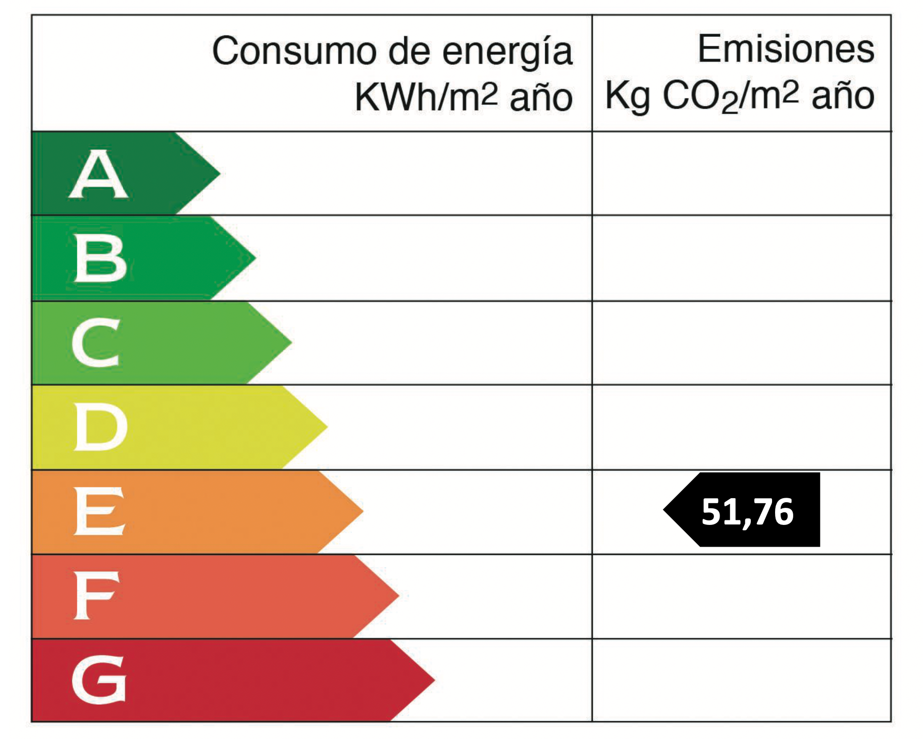 Año de construcción: 1940 • Emisiones CO2: 51.76 kg/m2 • Escala de Emisiones de CO2: E • Tipo de calefacción: Ecológica • Clase de eficiencia energética: E