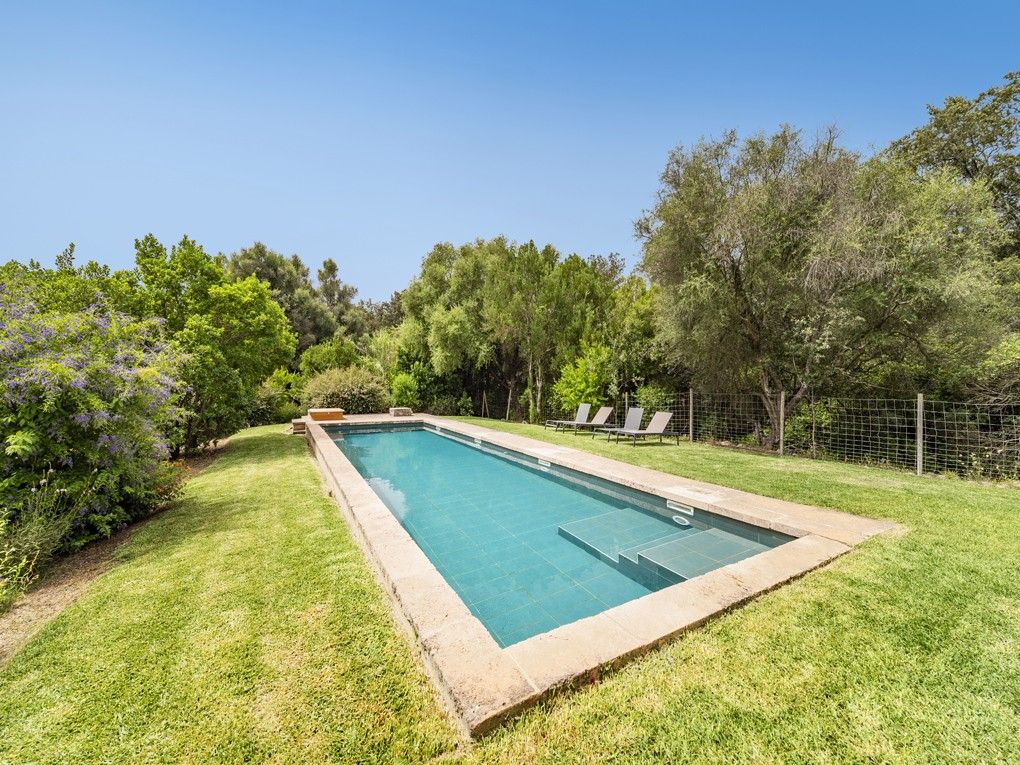 Esta finca rústica de piedra natural, que cuenta con licencia de alquiler vacacional, se encuentra a las afueras del pueblo de Campanet, ofreciendo un estilo de vida tranquilo en un entorno natural.