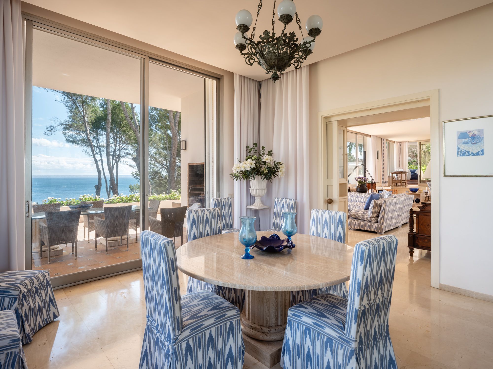 La villa se encuentra en una ubicación excepcional en la primera línea de mar en Sol de Mallorca, en una amplia parcela de aproximadamente 4000 m2 con acceso privado a una pequeña playa de arena y aguas turquesas. El inmueble fue construido en 1986 y está en su estado original y así la oportunidad perfecta para que el futuro propietario la convierta en la casa de sus sueños. La superficie habitable de aprox. 500 m2 se distribuye en tres plantas y ofrece numerosas habitaciones (actualmente 7), baños y salas de estar. El área exterior con grandes terrazas, jardín y piscina es ideal para recibir invitados o una familia numerosa. La ubicación de la casa, la privacidad absoluta y el acceso fácil y directo al mar son un verdadero lujo que solo unas pocas propiedades en Mallorca pueden ofrecer. El exclusivo distrito de Sol de Mallorca está a solo 20 km de Palma y a poca distancia en coche de ambicioso Port Adriano. Las tiendas, servicios e infraestructura establecidos en Puerto Portals están en las inmediaciones.