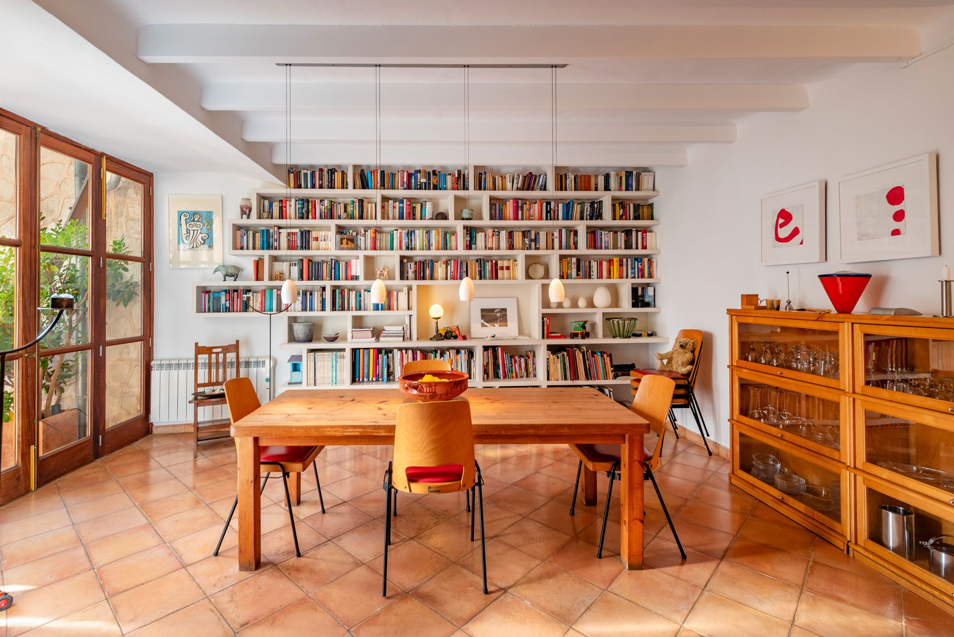 El comedor dedicado se conecta con una cocina completamente equipada, ambos abriendo hacia un pequeño patio ideal para cenar al aire libre, tomar un café por la mañana o contemplar en silencio. Justo al lado, una casita separada proporciona almacenamiento conveniente para bicicletas, herramientas de jardinería o artículos de temporada.