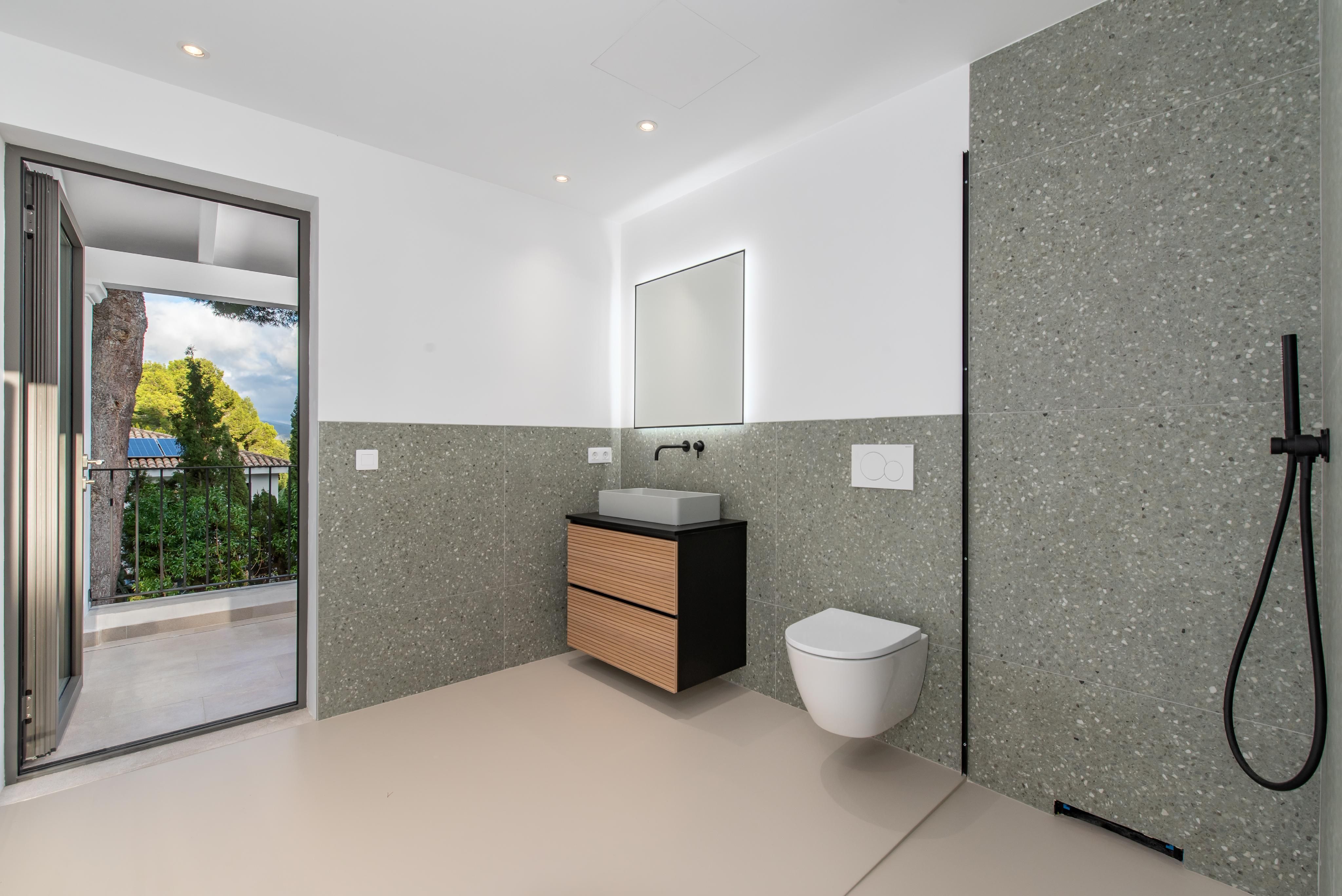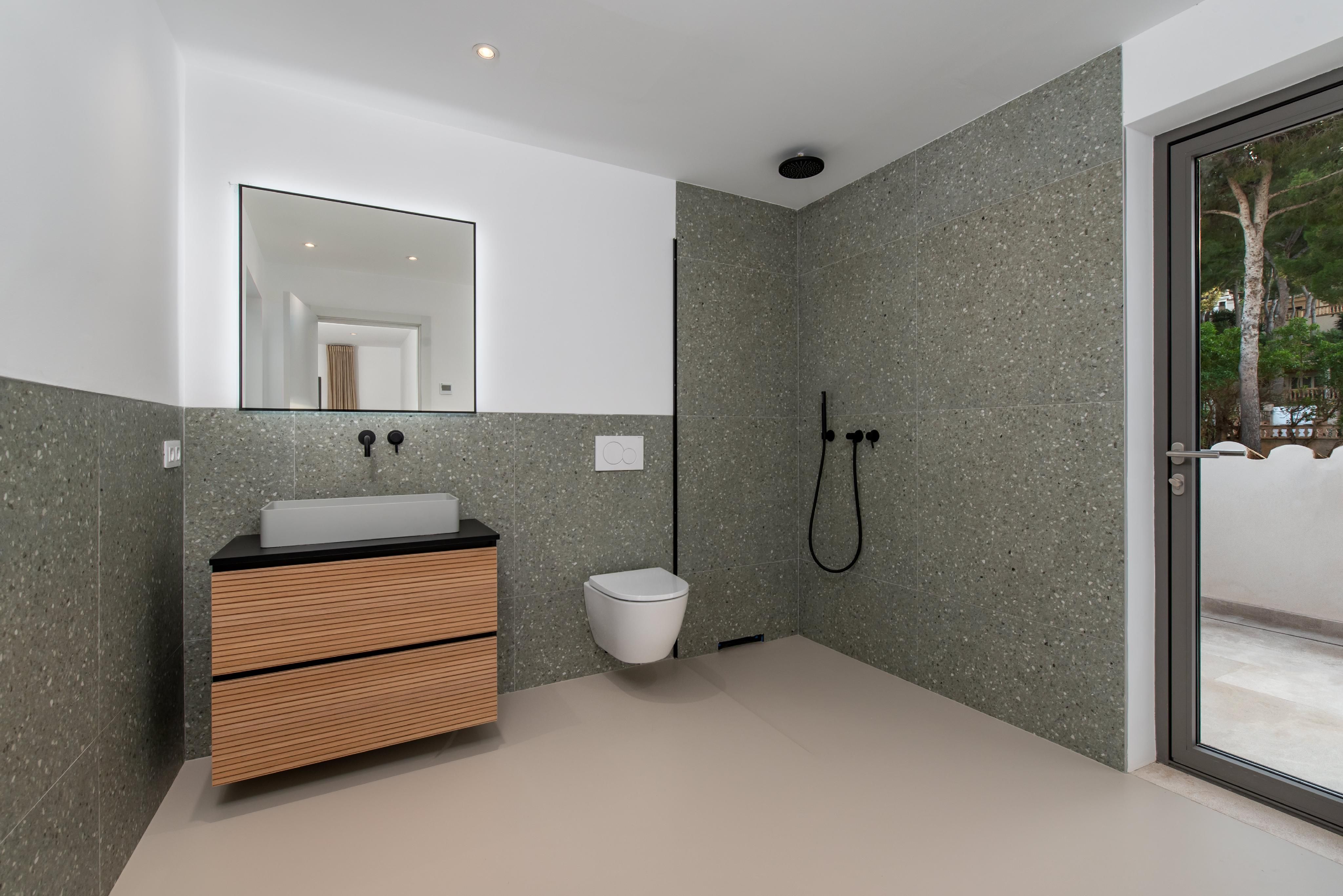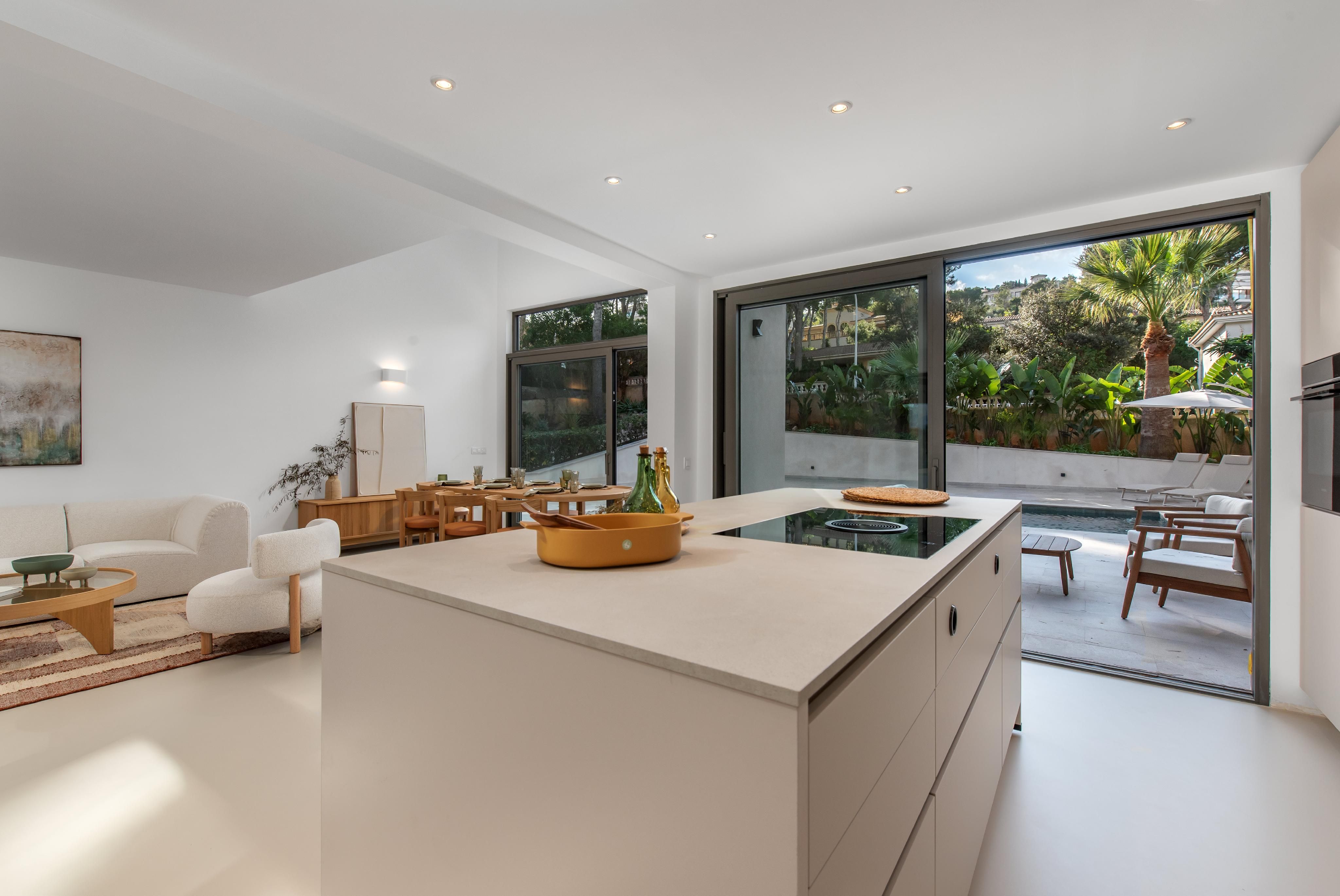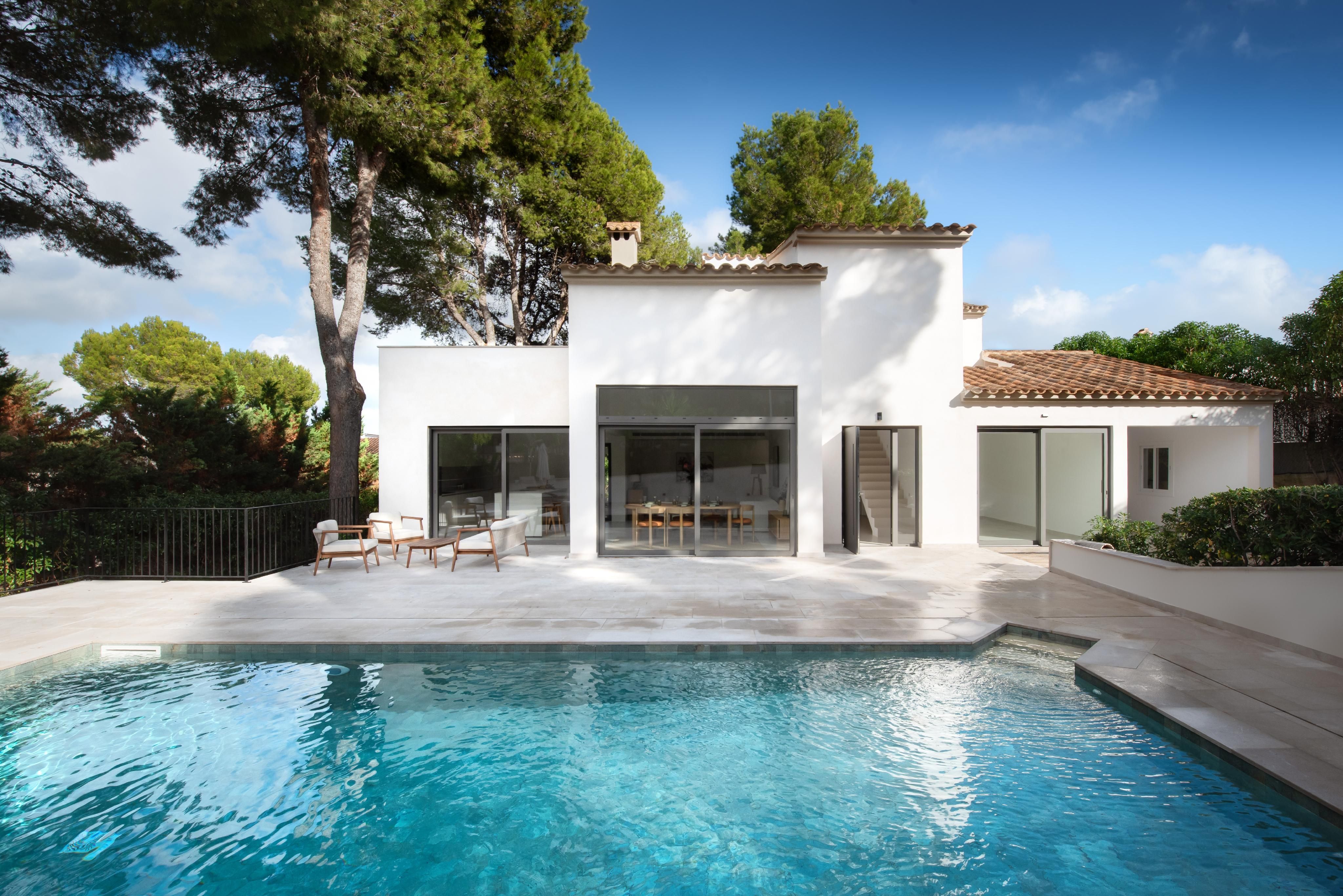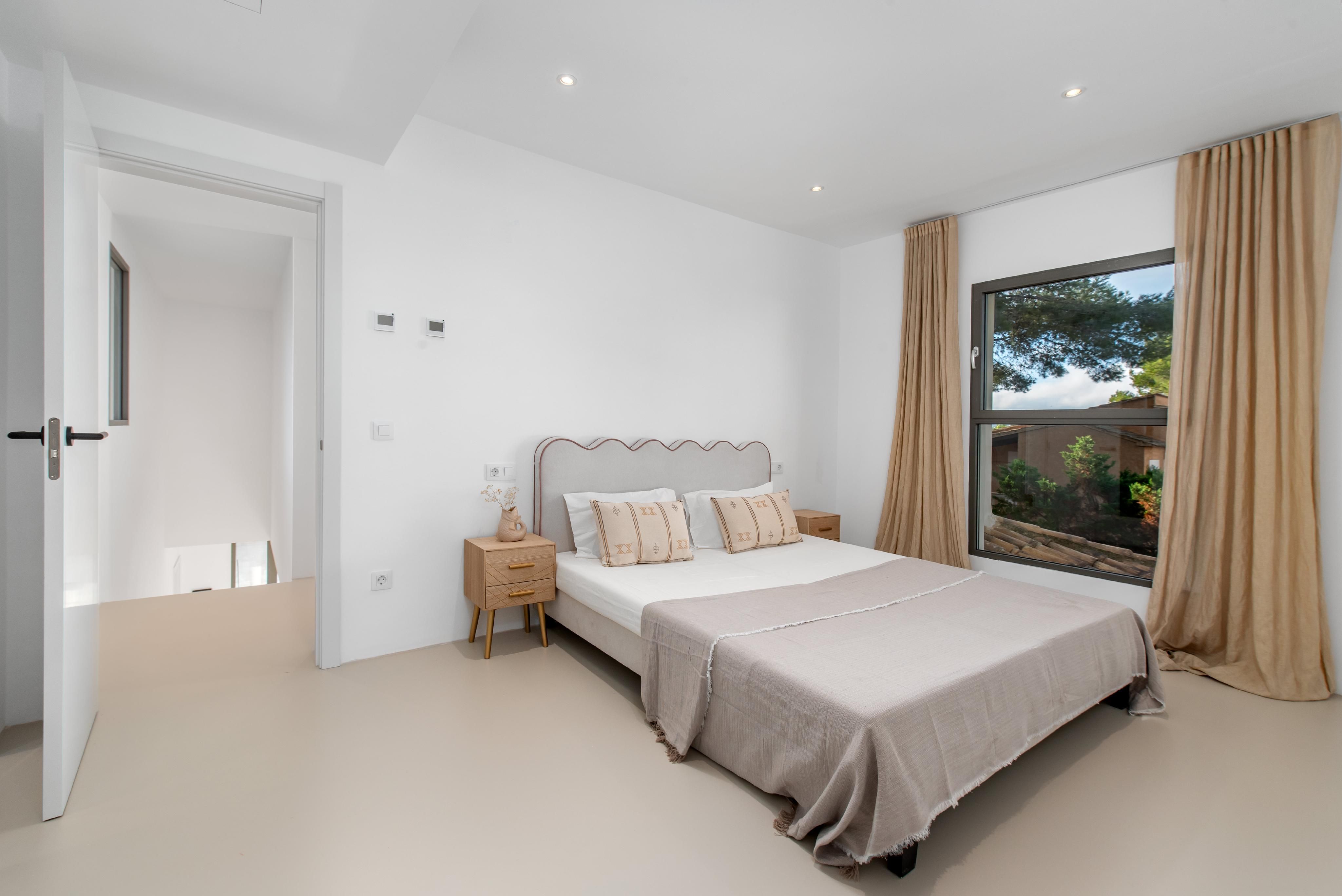 Esta villa de alta calidad, completamente renovada, se encuentra en una de las zonas residenciales más exclusivas de Santa Ponsa y destaca por su elegancia sobria y la cuidada selección de materiales. Con una superficie habitable de aproximadamente 200 m² distribuida en dos plantas, la propiedad ofrece cuatro dormitorios, incluyendo una suite con un amplio balcón y magníficas vistas al mar, dos baños adicionales y un espacioso salón-comedor con cocina abierta. El equipamiento de alta gama incluye suelos continuos de Senso, ventanas de alta calidad, calefacción por suelo radiante con bomba de calor, aire acondicionado (frío/calor), sistema domótico, así como una cocina de diseño y baños de Porcelanosa. Las amplias terrazas y el jardín perfectamente cuidado invitan a disfrutar de agradables momentos al aire libre. Además, la propiedad dispone de licencia ETV (alquiler vacacional) para hasta ocho personas, lo que la convierte en una atractiva oportunidad para la explotación turística.