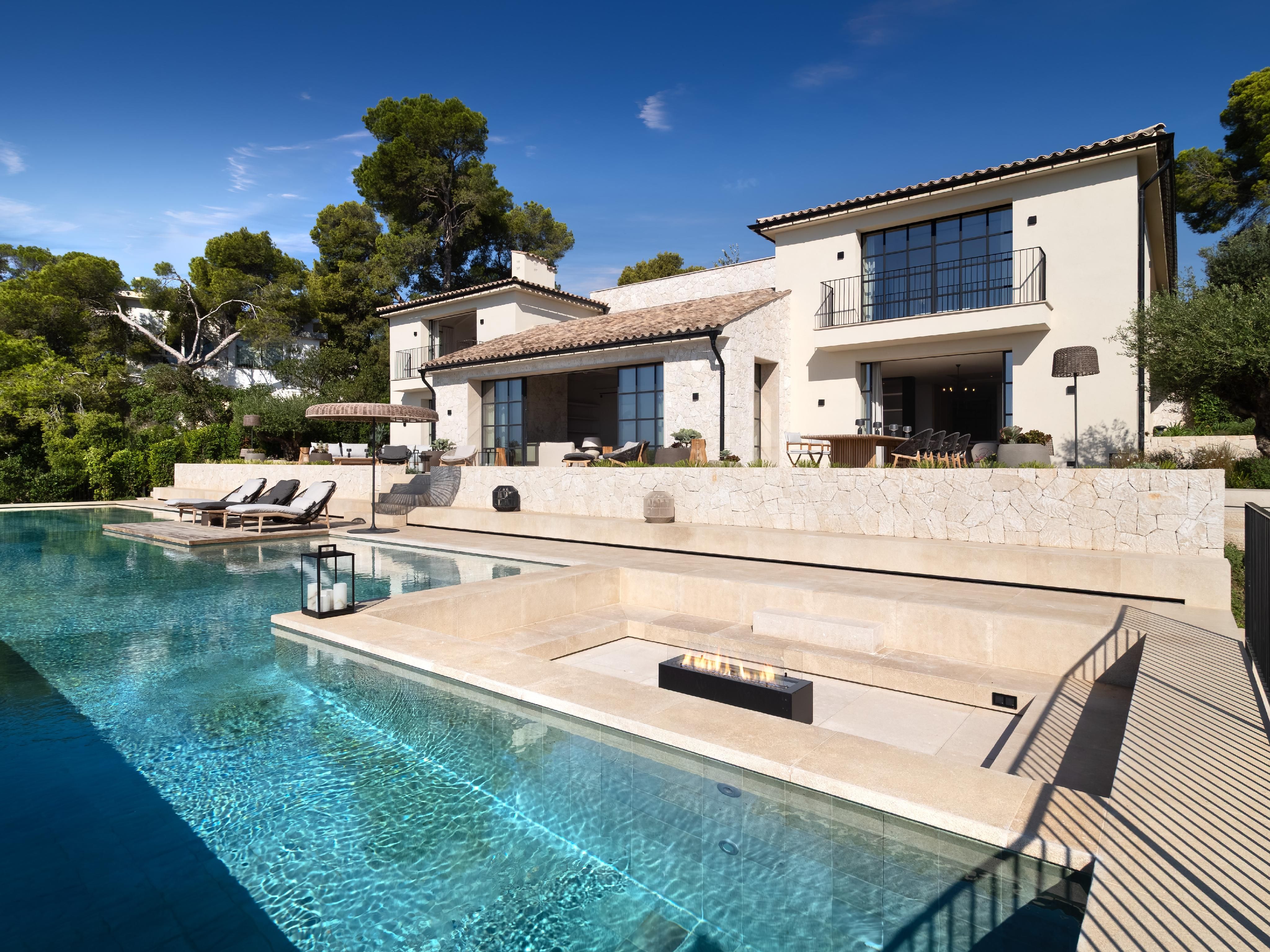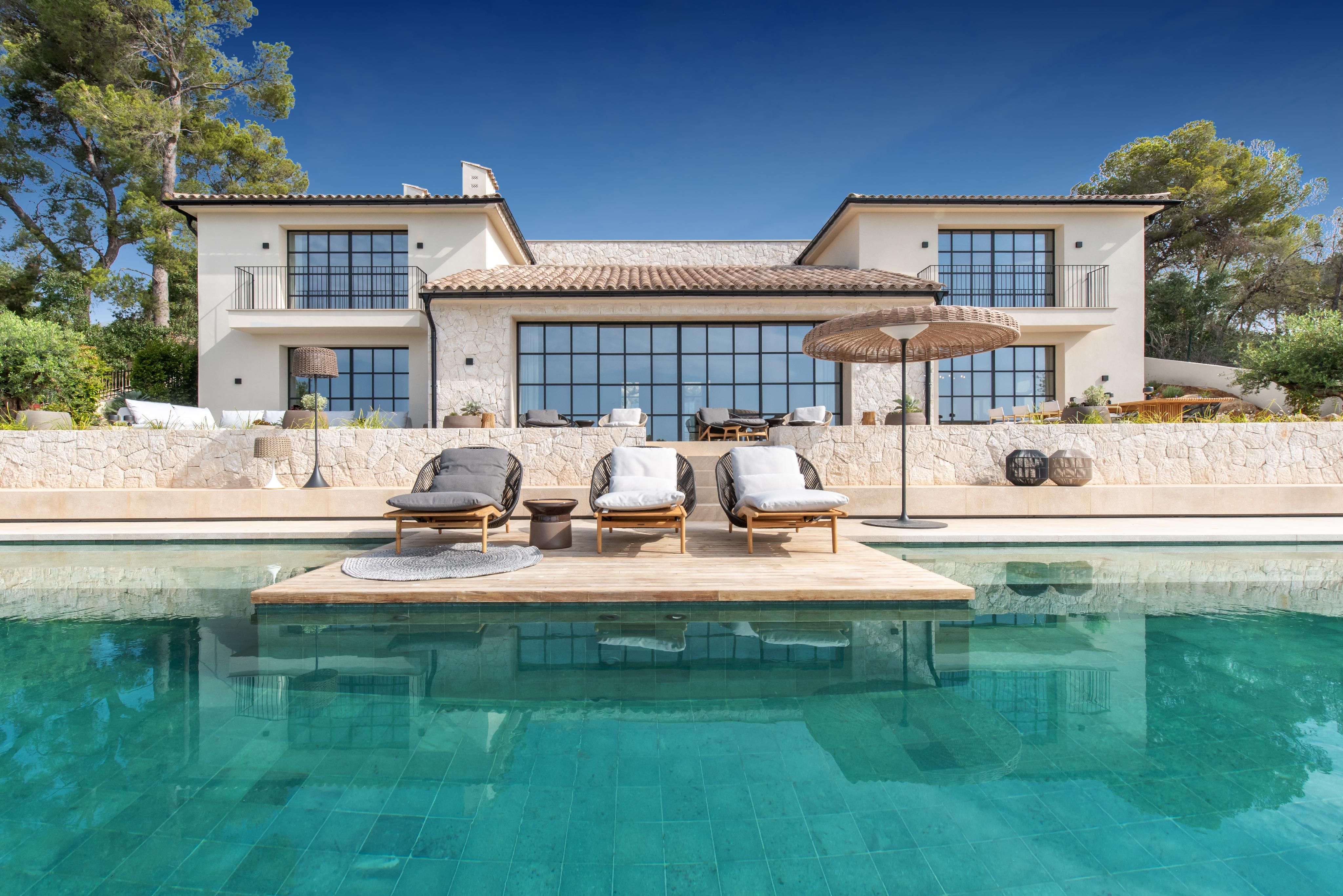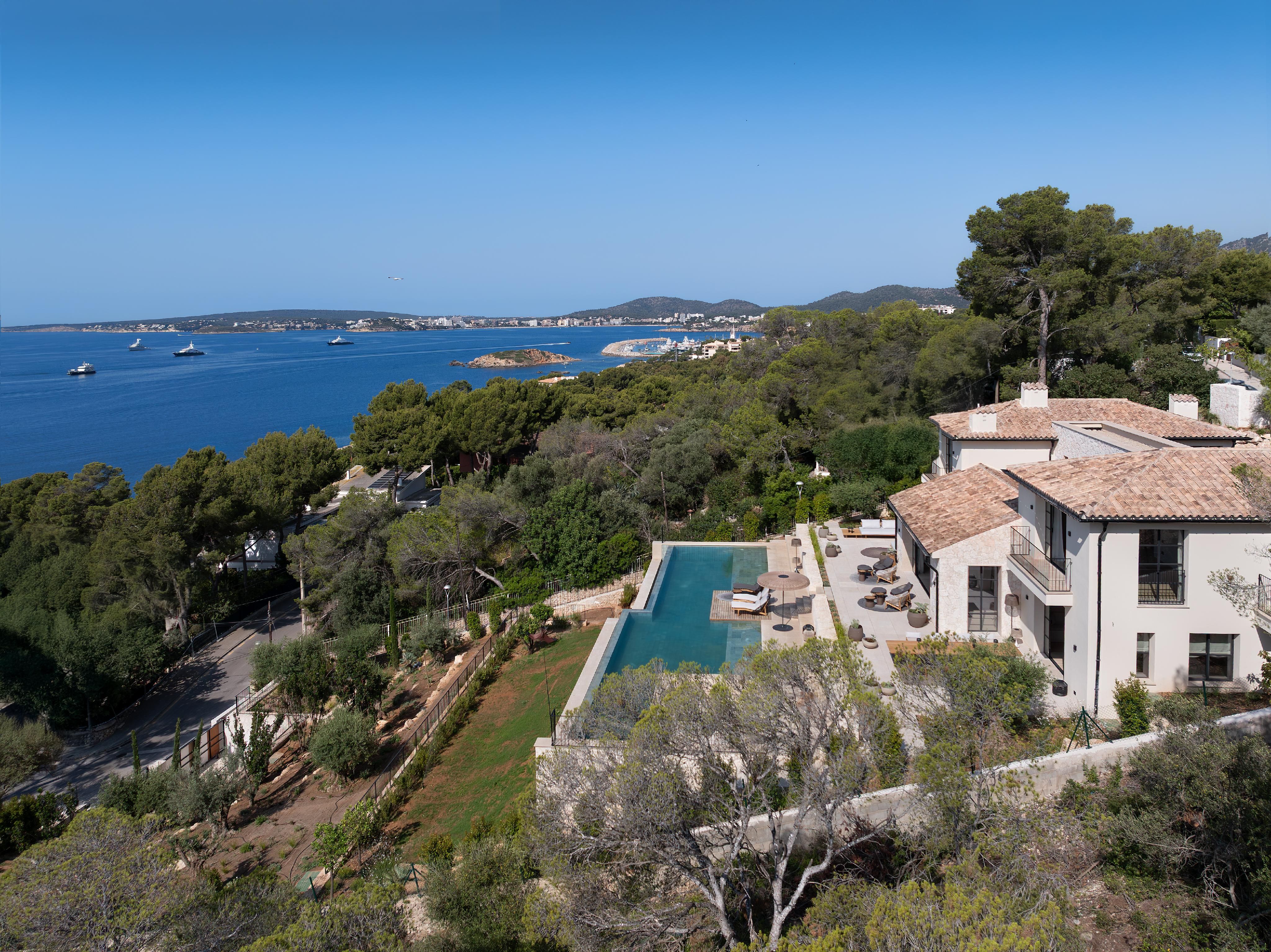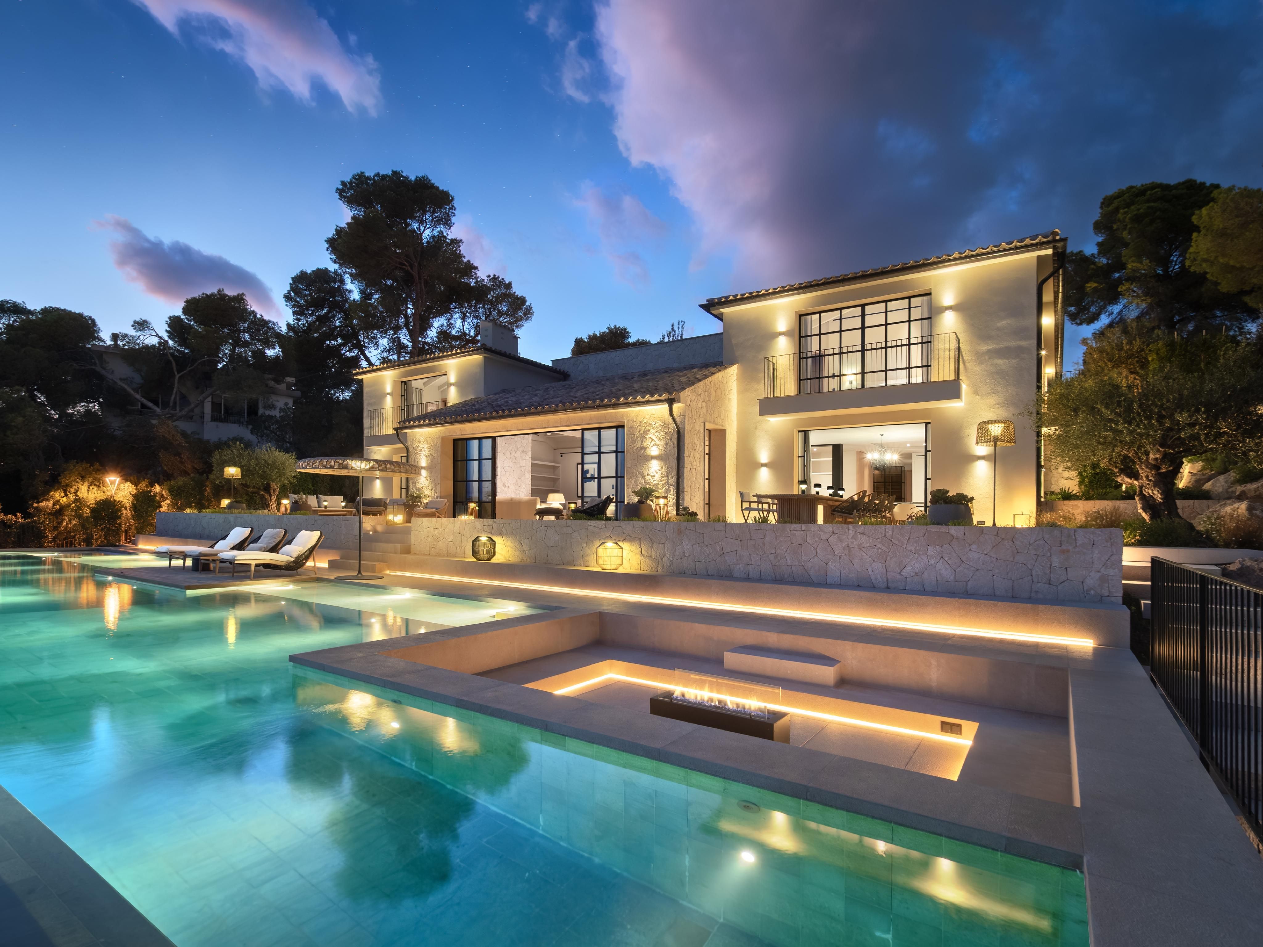 Esta elegante y acogedora villa se encuentra en la lujosa urbanización de Viejo Bendinat. La casa está situada junto al parque de Bendinat y cautiva con impresionantes vistas a la costa, al mar abierto, hasta la isla de Cabrera e Illetas y rodeada de un precioso jardín. Sólo los mejores materiales se utilizan para completar esta propiedad única y el estilo mediterráneo se encuentra con un toque elegante y moderno. El resultado es una propiedad única que le fascinará y seducirá a primera vista. Los sofisticados suelos de madera de roble y las elegantes vigas naturales, junto con la combinación de las paredes blancas, transmiten un ambiente muy especial que combina elegancia y confort. Los grandes ventanales permiten disfrutar de la vista panorámica desde todas las habitaciones. La propiedad cuenta con aire acondicionado frío/calor, calefacción por suelo radiante, paneles solares, televisión por satélite y un sistema de sonido integrado. Además, hay un garaje para 4 coches, más un aparcamiento seguro adicional, una piscina de 26 metros para nombrar sólo una pequeña parte de las comodidades de esta propiedad. El centro de Palma está a sólo 10 minutos y el puerto de Puerto Portals y el Club Náutico de Calanova a sólo 5 minutos en coche.