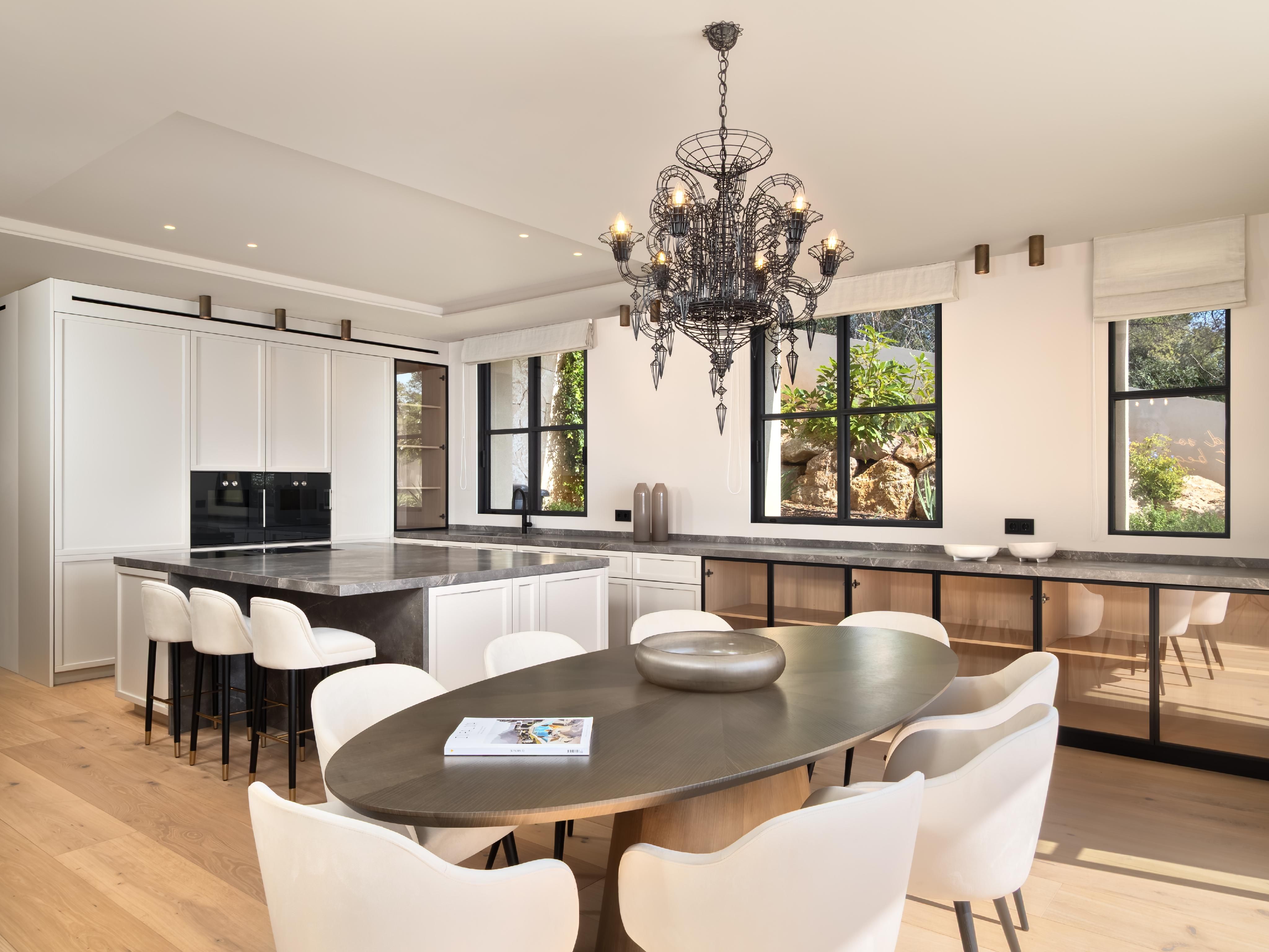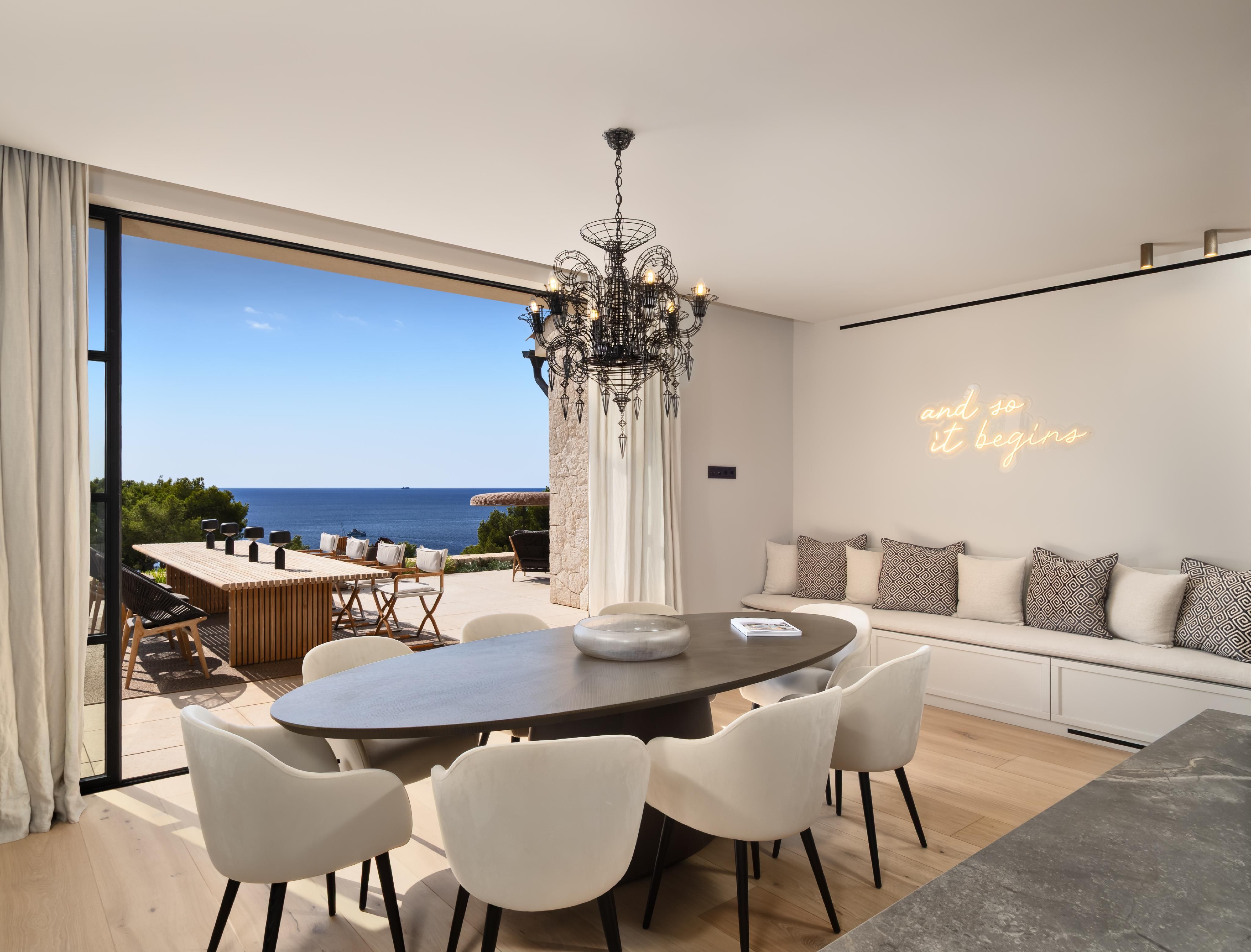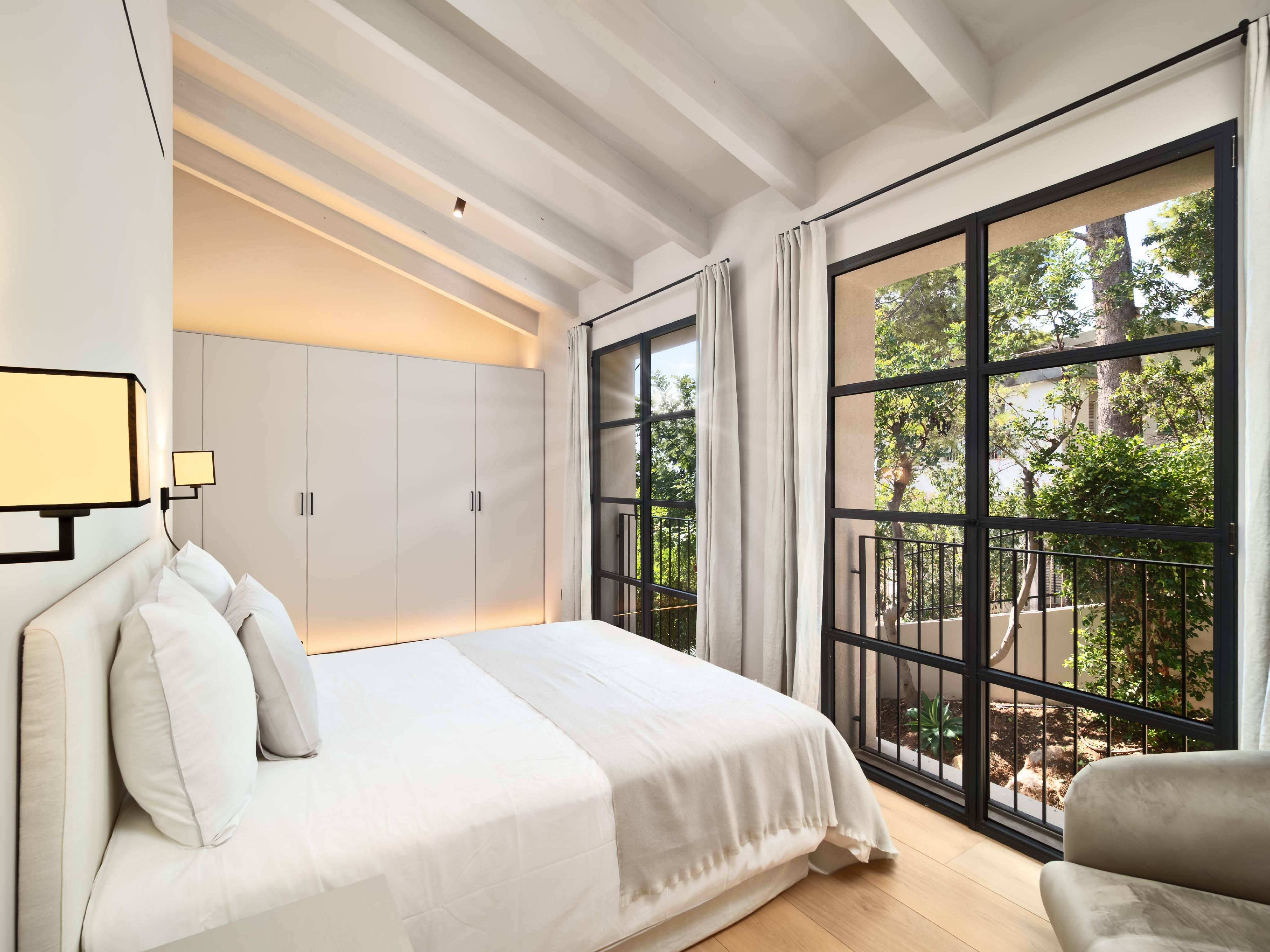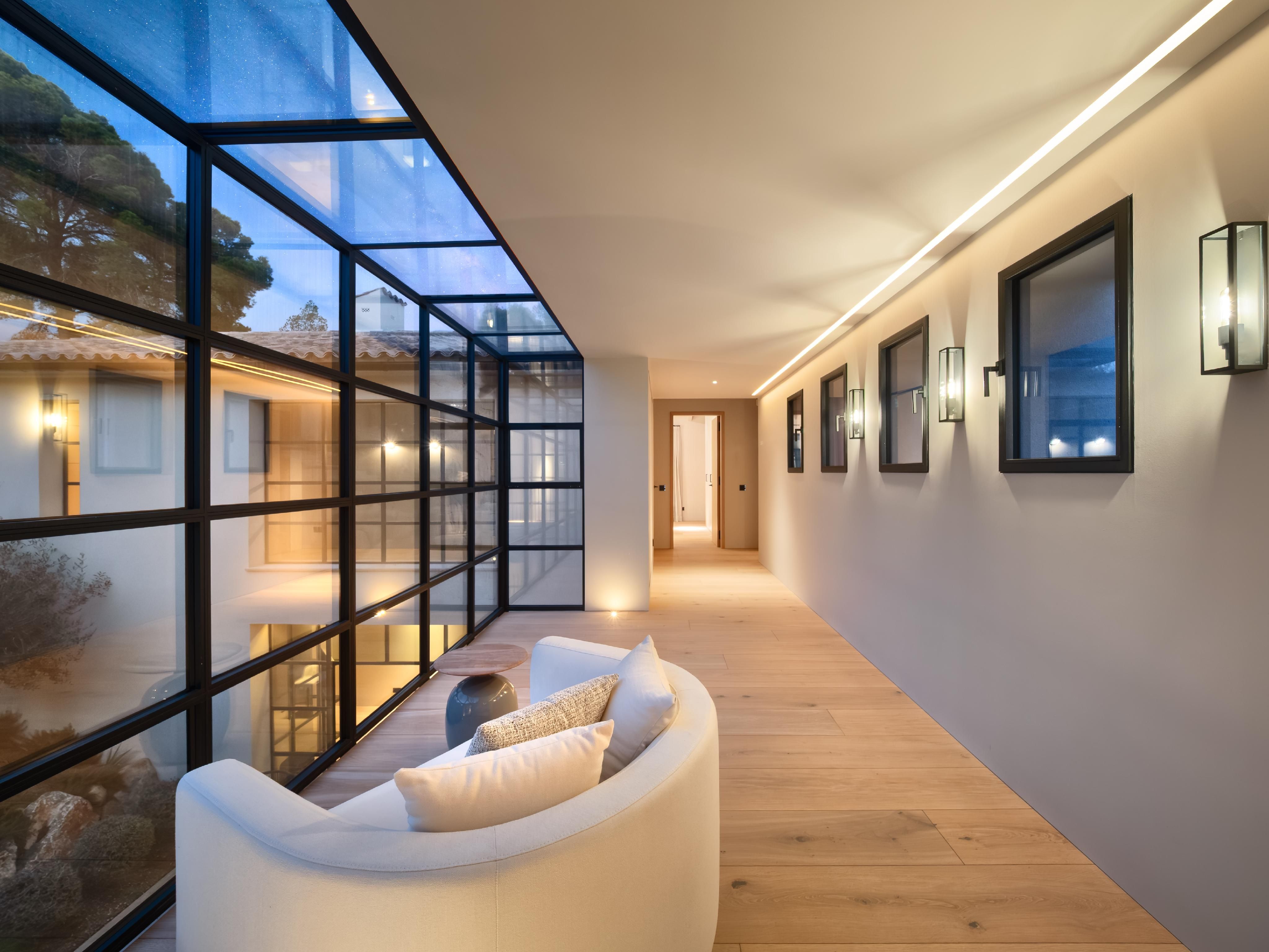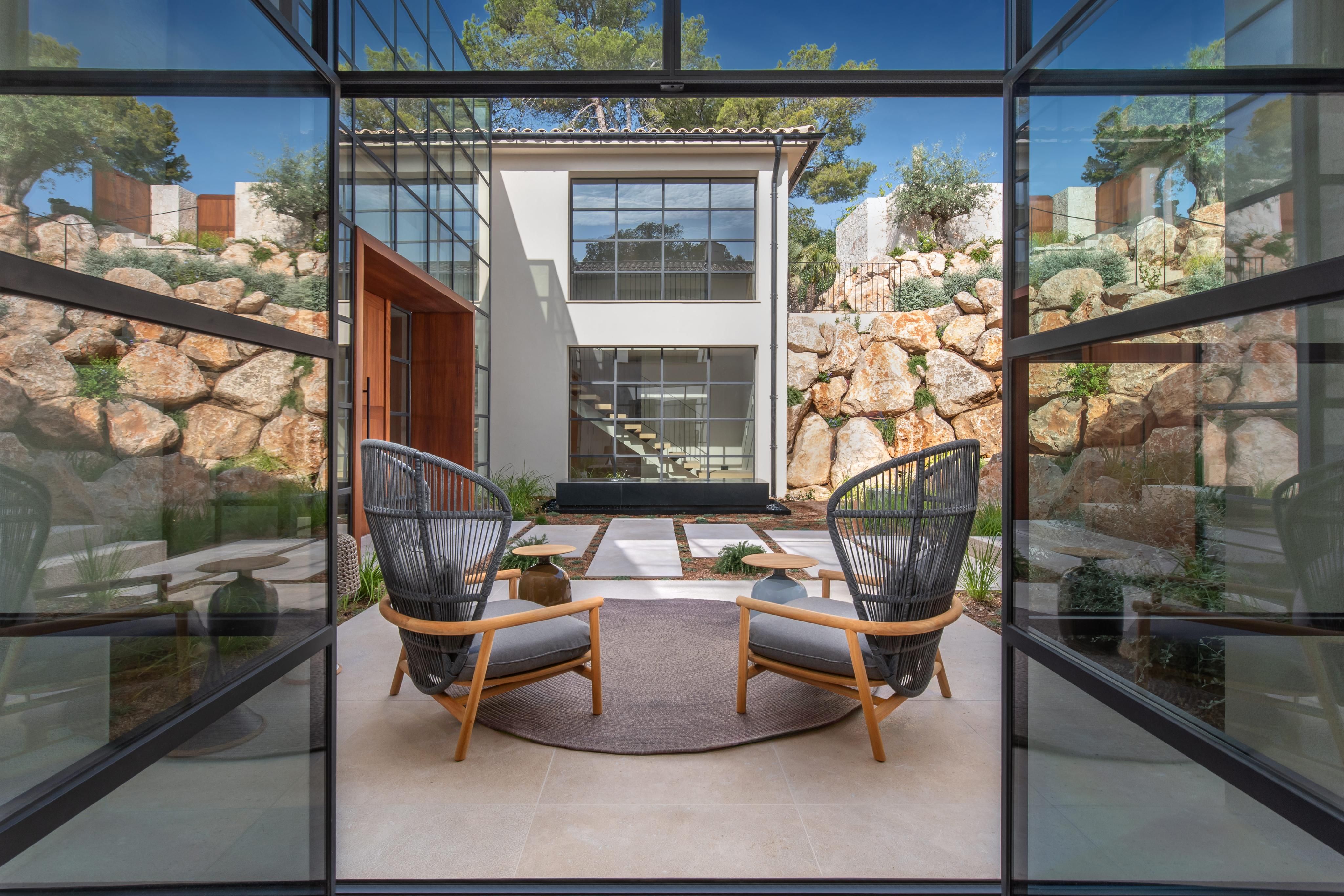 Esta elegante y acogedora villa se encuentra en la lujosa urbanización de Viejo Bendinat. La casa está situada junto al parque de Bendinat y cautiva con impresionantes vistas a la costa, al mar abierto, hasta la isla de Cabrera e Illetas y rodeada de un precioso jardín. Sólo los mejores materiales se utilizan para completar esta propiedad única y el estilo mediterráneo se encuentra con un toque elegante y moderno. El resultado es una propiedad única que le fascinará y seducirá a primera vista. Los sofisticados suelos de madera de roble y las elegantes vigas naturales, junto con la combinación de las paredes blancas, transmiten un ambiente muy especial que combina elegancia y confort. Los grandes ventanales permiten disfrutar de la vista panorámica desde todas las habitaciones. La propiedad cuenta con aire acondicionado frío/calor, calefacción por suelo radiante, paneles solares, televisión por satélite y un sistema de sonido integrado. Además, hay un garaje para 4 coches, más un aparcamiento seguro adicional, una piscina de 26 metros para nombrar sólo una pequeña parte de las comodidades de esta propiedad. El centro de Palma está a sólo 10 minutos y el puerto de Puerto Portals y el Club Náutico de Calanova a sólo 5 minutos en coche.