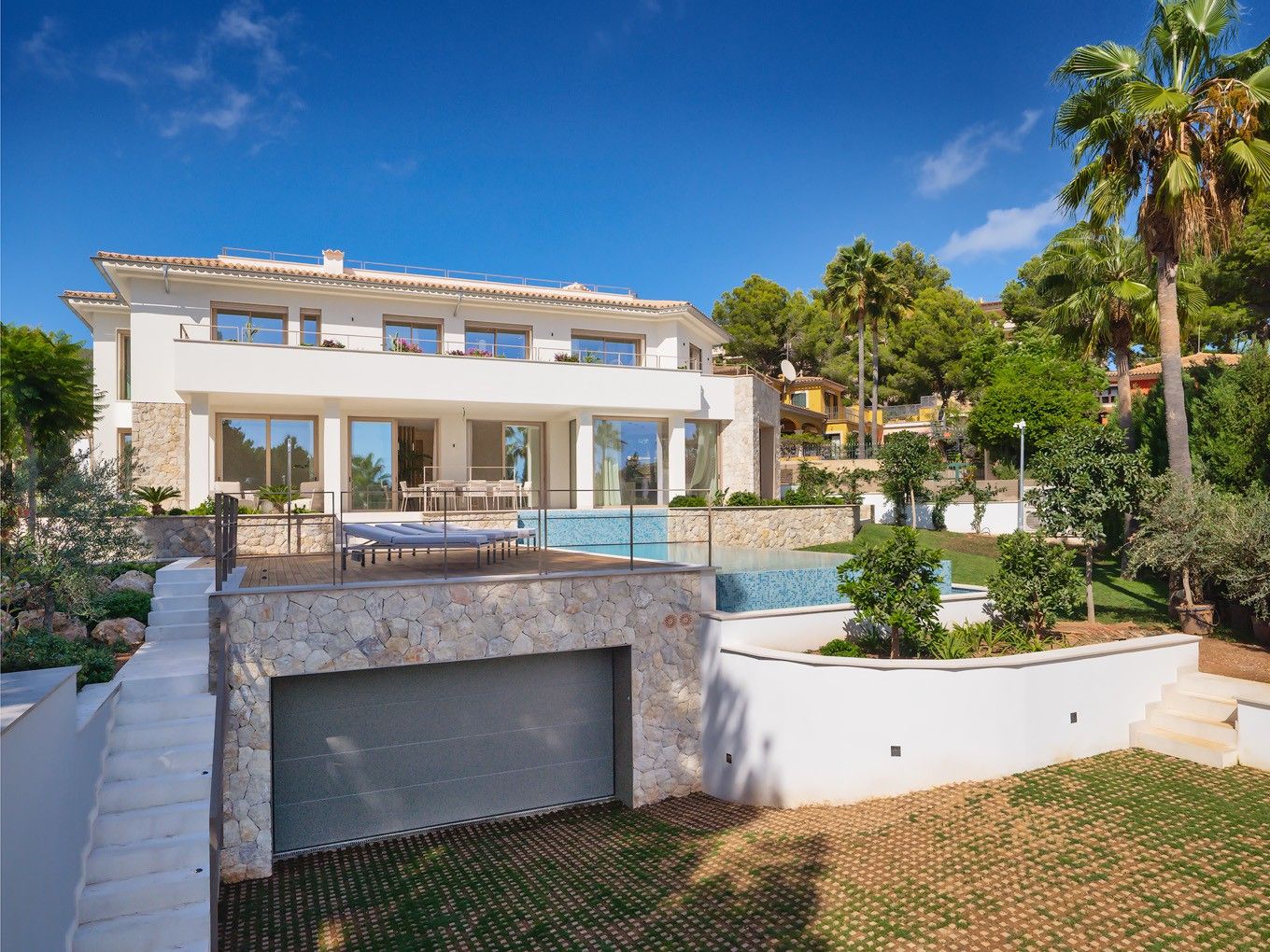 Bienvenido a la villa de sus sueños en la hermosa Bendinat, una de las zonas residenciales más exclusivas del suroeste de la isla. Esta impresionante villa reformada con una superficie útil de unos 600m2, así como una superficie habitable de 341m2 combina la elegancia atemporal con el lujo moderno y le ofrece la mejor experiencia de vida bajo el sol de Mallorca. En tres plantas encontrará 4 dormitorios, 6 baños, un amplio salón-comedor con acceso directo a la zona exterior que cuenta con un hermoso jardín y una piscina infinita de agua salada. La terraza de la azotea ofrece impresionantes vistas panorámicas. Un lugar perfecto para disfrutar de las puestas de sol, relajarse y admirar Bendinat a vista de pájaro. Además, esta villa de ensueño ofrece una completa zona de bienestar, con gimnasio y sauna, que proporciona todo lo necesario para un estilo de vida sano y equilibrado. Completando el espacio que se ofrece hay un garaje muy amplio con espacio para 3 coches. Esta villa en Bendinat no sólo ofrece un refugio tranquilo, sino que también está cerca de todo lo necesario para una vida cómoda y agradable en la isla.... playas exclusivas, clubes de playa, restaurantes de primera clase y algunos de los mejores y más populares campos de golf de la isla. No pierda la oportunidad de poseer su propio paraíso en Mallorca y póngase en contacto con nosotros hoy mismo para obtener más información y concertar una visita. ¡Su villa de ensueño le espera!