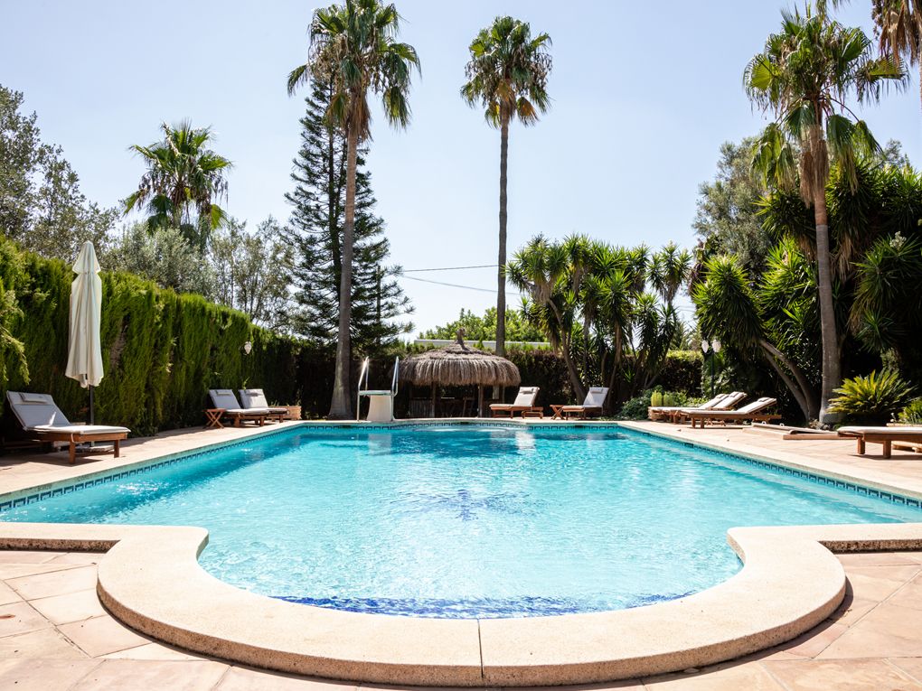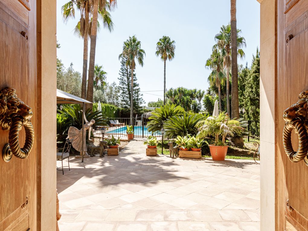 Al acceder al exterior, uno se encuentra un extenso patio de piedra natural con árboles dando sombra que lleva al jardín que rodea la casa. El jardín es frondoso con rincones de ensueño y pérgolas que invitan a disfrutar del clima sureño y bordeada por esbeltas palmeras se halla la piscina con bonita terraza para tomar el sol. Para completar la zona exterior de esta propiedad de calidad superior hay además una zona de barbacoa, así como varias terrazas adicionales.