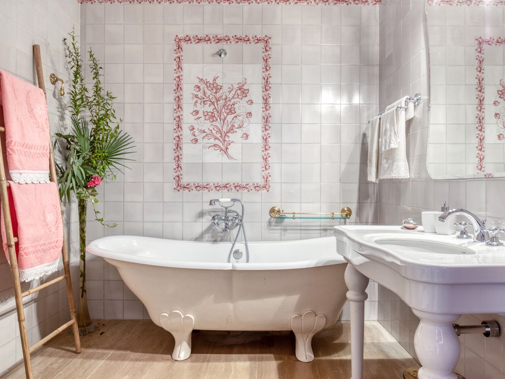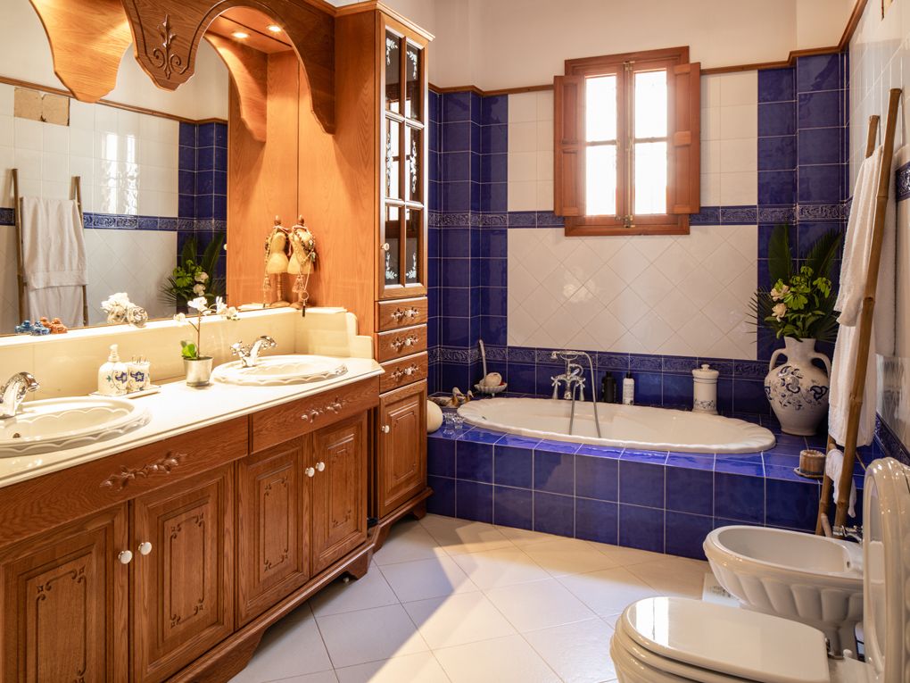 La casa se distribuye en tres plantas y cuenta con un total de ocho dormitorios y seis baños. Las estancias lucen toques clásicos muy elegantes y destaca la atención al detalle en su decoración. La casa a la vez, ofrece varios salones con chimenea, generosas terrazas cubiertas con vistas a la propiedad y una bonita cocina tradicional. También tiene un acogedor apartamento de invitados.