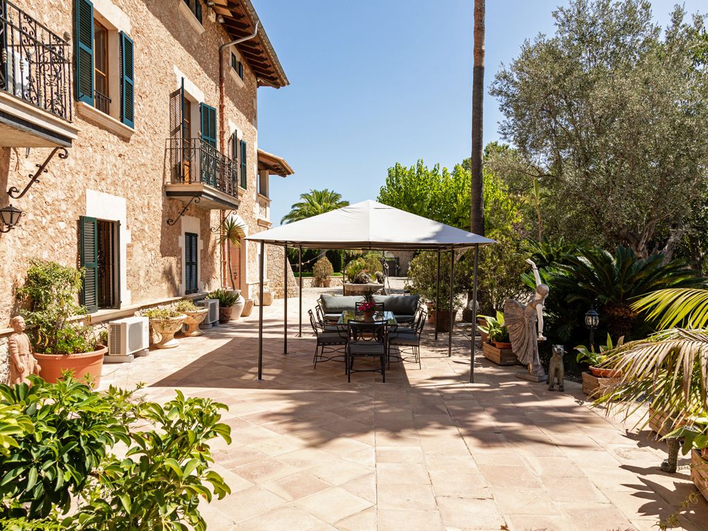 Esta casa suprema con hermosa fachada de piedra mallorquina, mucho carácter y estilo mediterráneo se encuentra sobre un amplio solar en una ubicación maravillosa muy cerca del pueblo, pero con mucha tranquilidad.