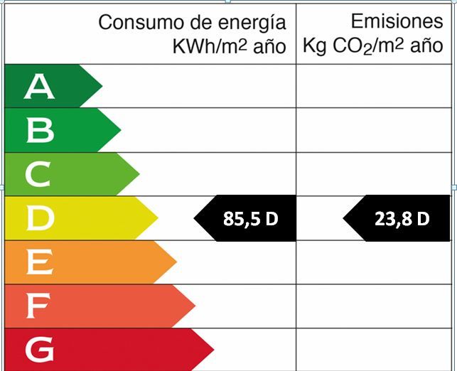 Año de construcción: 2002 • Valor de consumo energético: 85.5 kWh/(m2*a) • Emisiones CO2: 23.8 kg/m2 • Escala de Emisiones de CO2: D • Tipo de calefacción: Gas • Clase de eficiencia energética: D