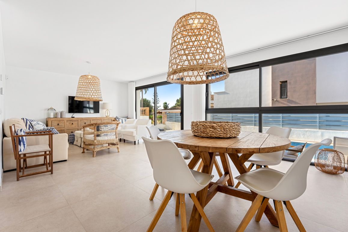 Moderna vivienda unifamiliar independiente en Cala Mandia, situada en una zona residencial tranquila y bien cuidada, a solo cinco minutos a pie de la playa, una combinación perfecta de privacidad, confort y estilo de vida mediterráneo. La propiedad fue construida en 2022 y cuenta con un terreno de aproximadamente 348 m², un jardín de fácil mantenimiento, una piscina de agua salada de unos 28 m², así como una superficie habitable de aproximadamente 160 m² distribuida en dos plantas más una terraza en la azotea. En la planta baja se encuentran un acogedor vestíbulo de entrada, una cocina moderna, un lavadero, un amplio salón con vistas y acceso directo al jardín con piscina, un baño y un primer dormitorio doble. En la planta superior se encuentra el dormitorio principal con baño en suite, complementado por otros dos dormitorios dobles y un baño adicional, ideal para familia e invitados. La terraza en la azotea ofrece privacidad y está preparada con conexiones eléctricas para la instalación de una cocina exterior, un lugar perfecto para tardes relajadas con vistas a los alrededores. El equipamiento de alta calidad incluye calefacción por suelo radiante mediante aerotermia, aire acondicionado, panel solar para apoyo en la preparación de agua caliente, sistema de descalcificación de agua y una alarma. Una propiedad completamente armoniosa, ideal para disfrutar del verano mallorquín en una de las zonas de playa más bellas de la isla y en invierno experimentar la tranquilidad y la energía especial de Mallorca en paseos y caminatas, un hogar para llegar y sentirse a gusto.