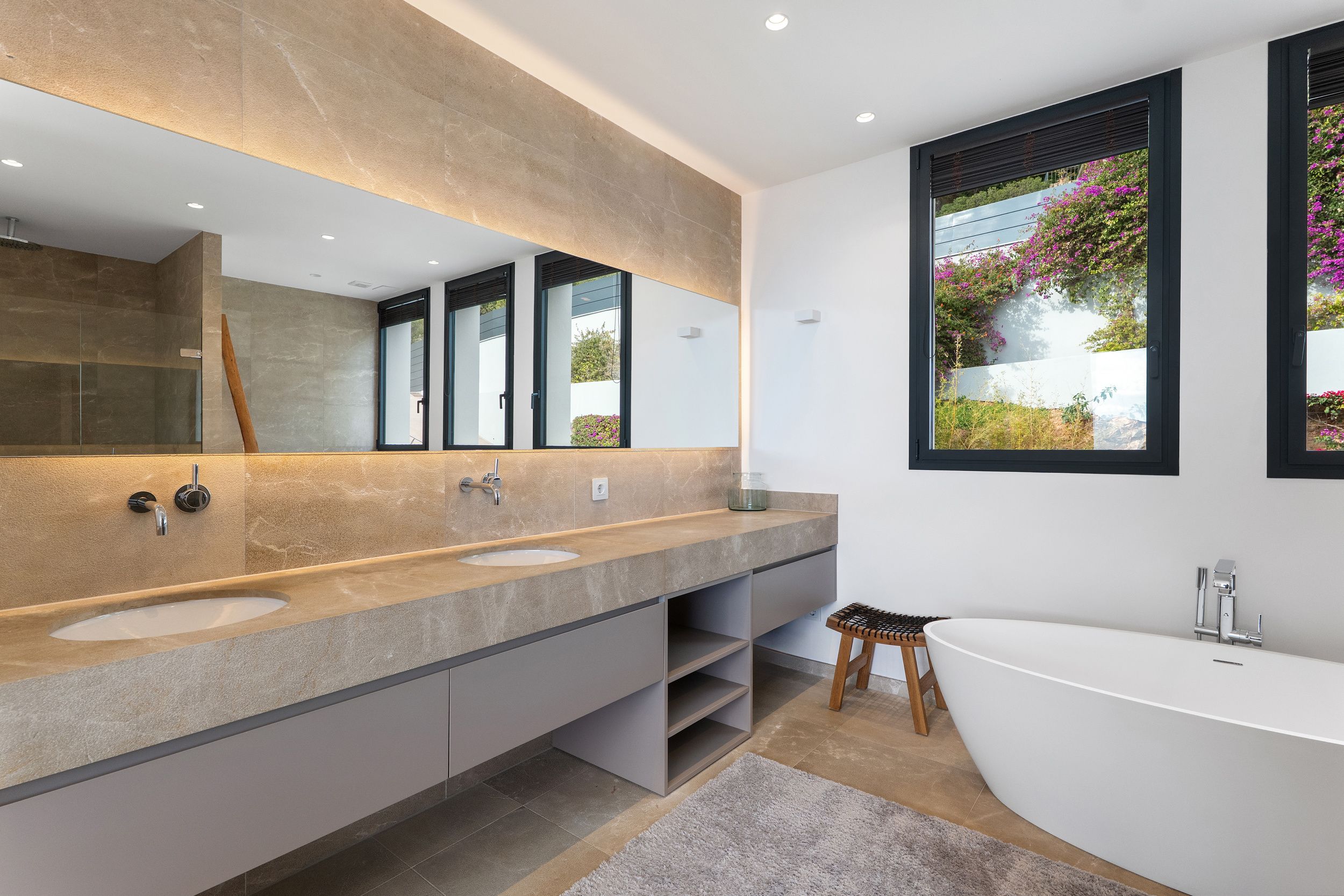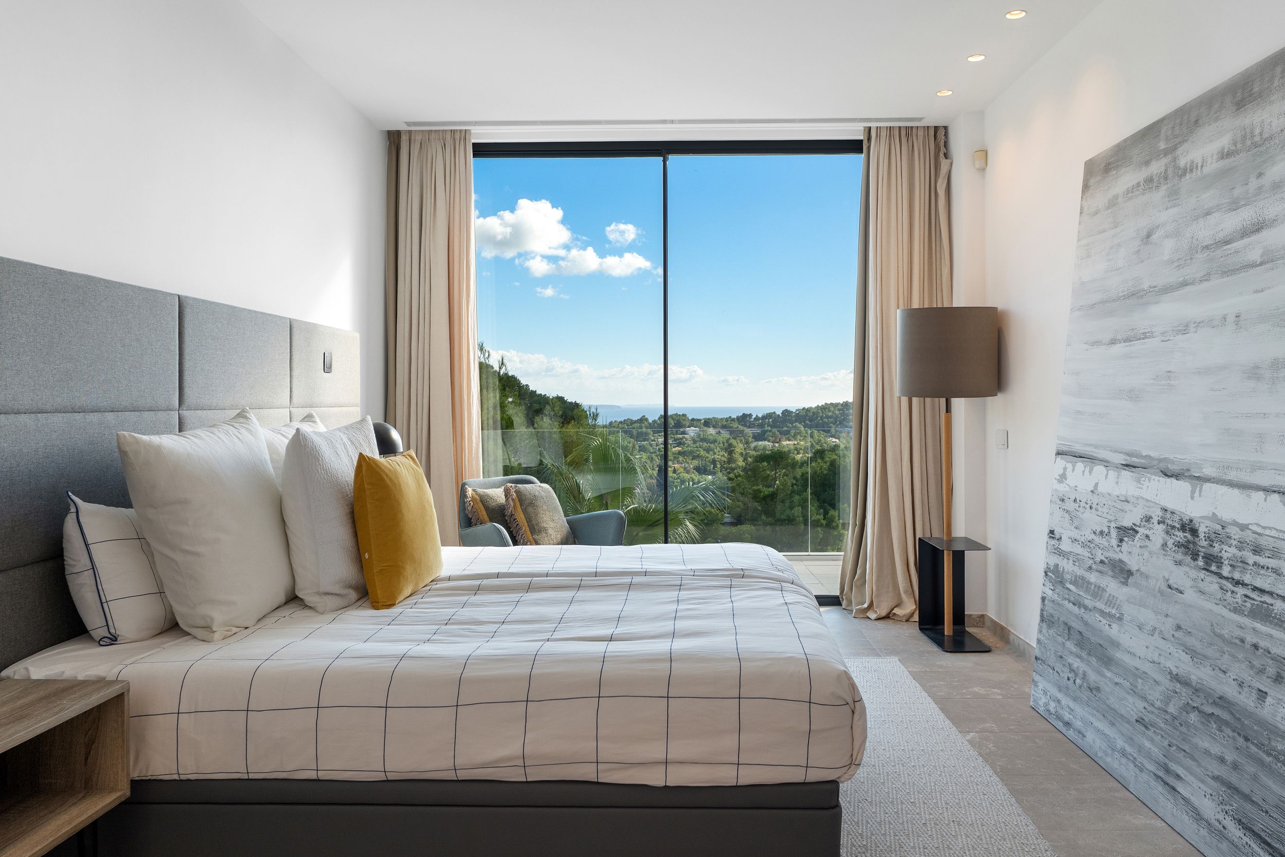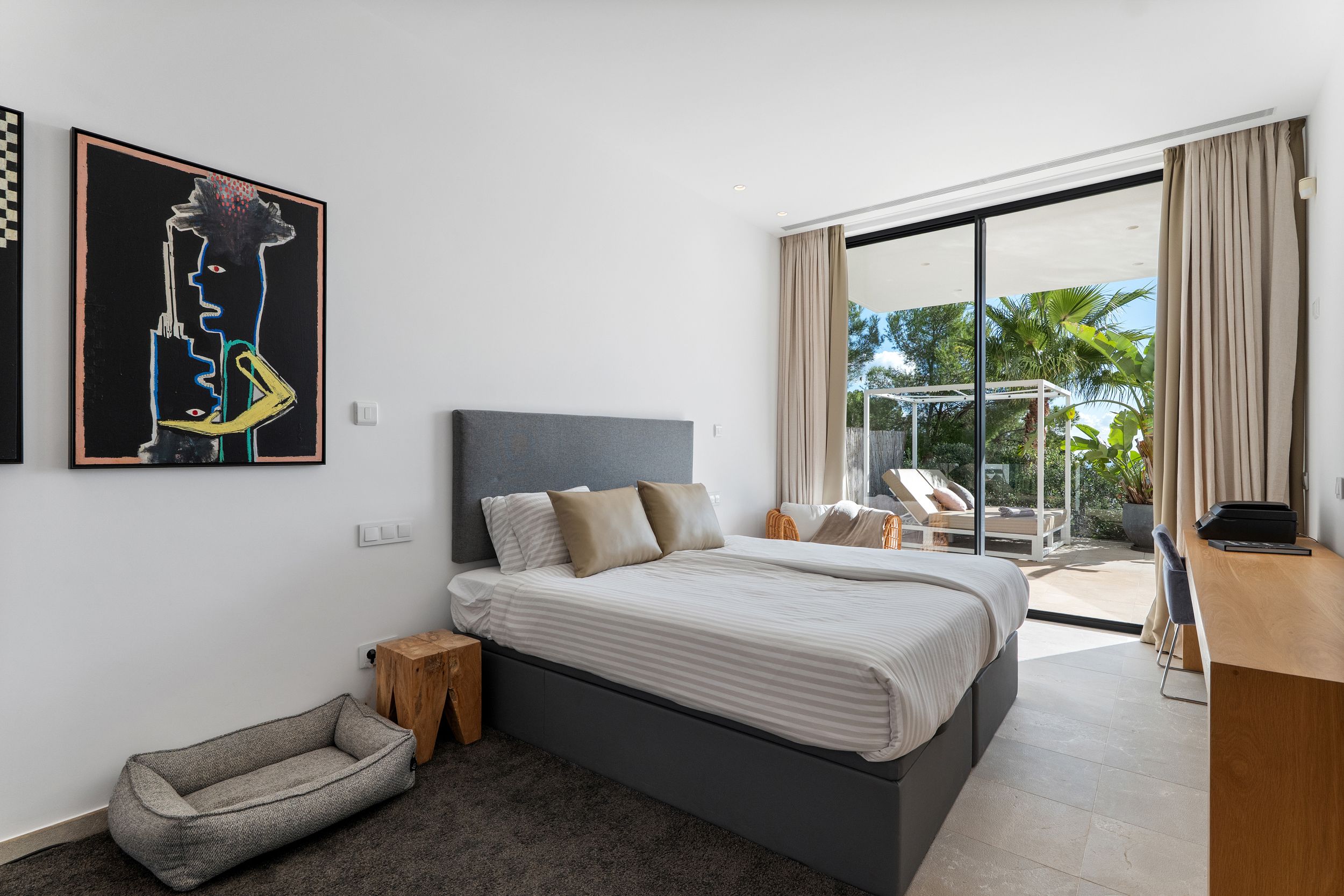 La villa se vende completamente amueblada, salvo las obras de arte, y equipada con todas las comodidades modernas, incluyendo calefacción por suelo radiante, aire acondicionado f/c integrado, domótica, sistema de alarma, suelos de piedra natural, armarios empotrados, abundante espacio de almacenamiento y un jardín con sistema de riego automático.
