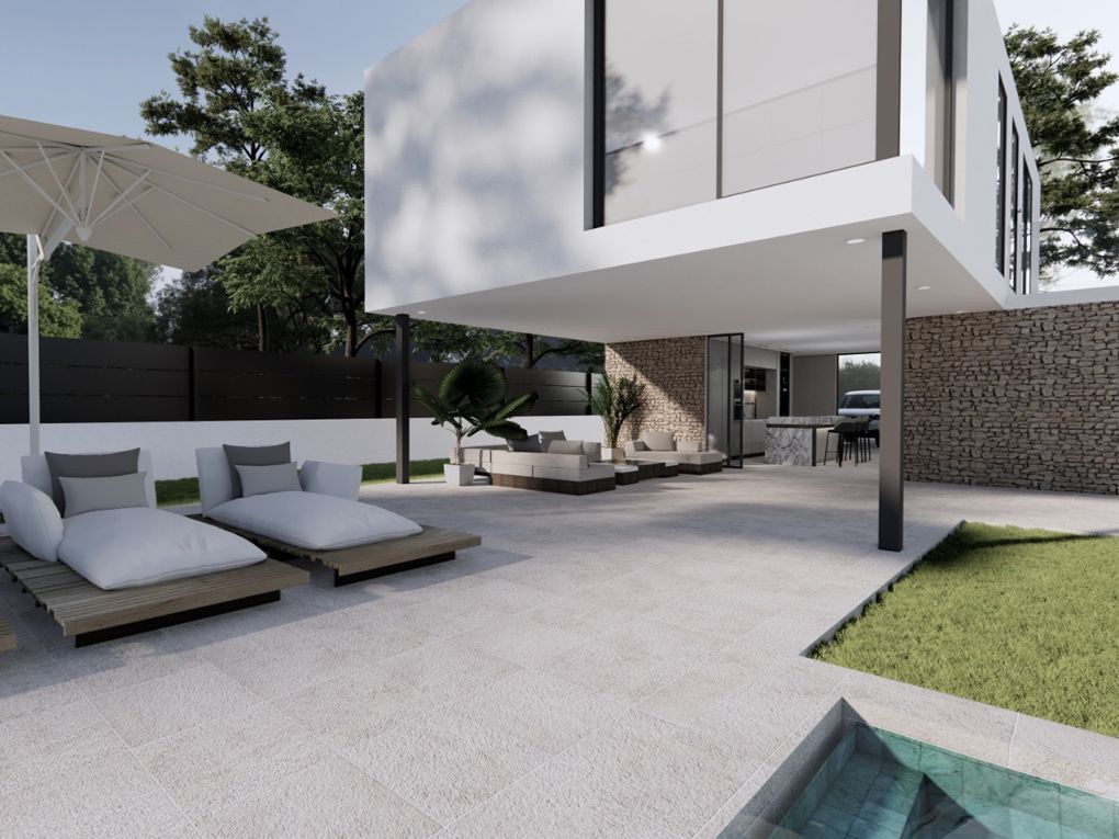 El exterior ha sido cuidadosamente diseñado para la vida al aire libre, con aproximadamente 220 m² destinados a terrazas, zonas ajardinadas y una piscina de 35 m², ideal para recibir invitados, tomar el sol y la vida familiar. La propiedad también contará con una entrada segura con portón automático y vallado perimetral para mayor privacidad.