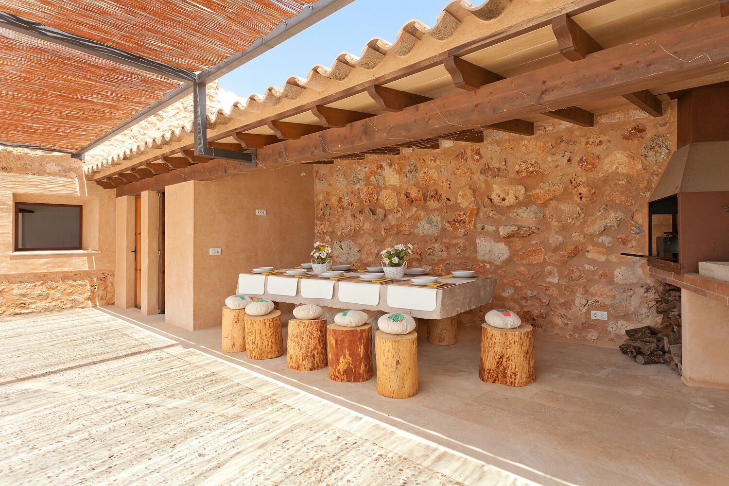 La propriété offre une atmosphère chaleureuse et accueillante, combinant une façade extérieure rustique avec un confort moderne. Les murs en pierre ouverts, les grands carreaux, les hauts plafonds et les poutres en bois apparentes créent un équilibre harmonieux entre le caractère traditionnel majorquin et l'habitat contemporain.
