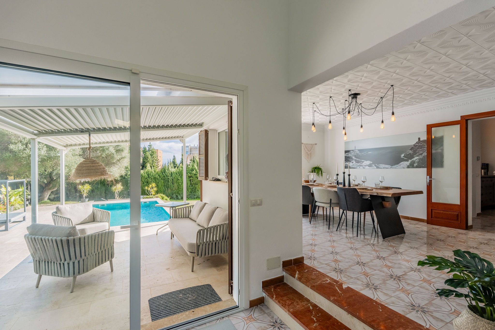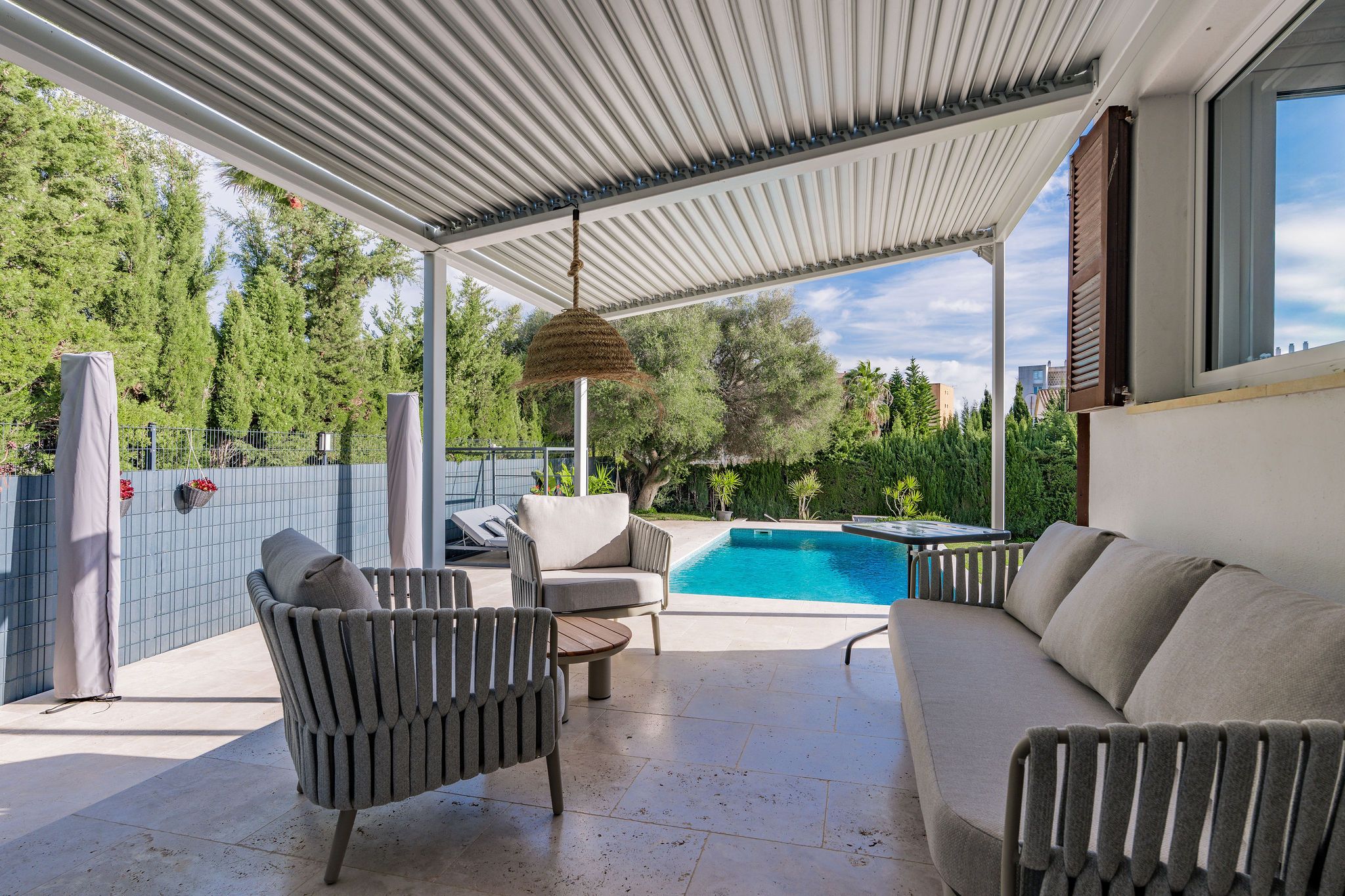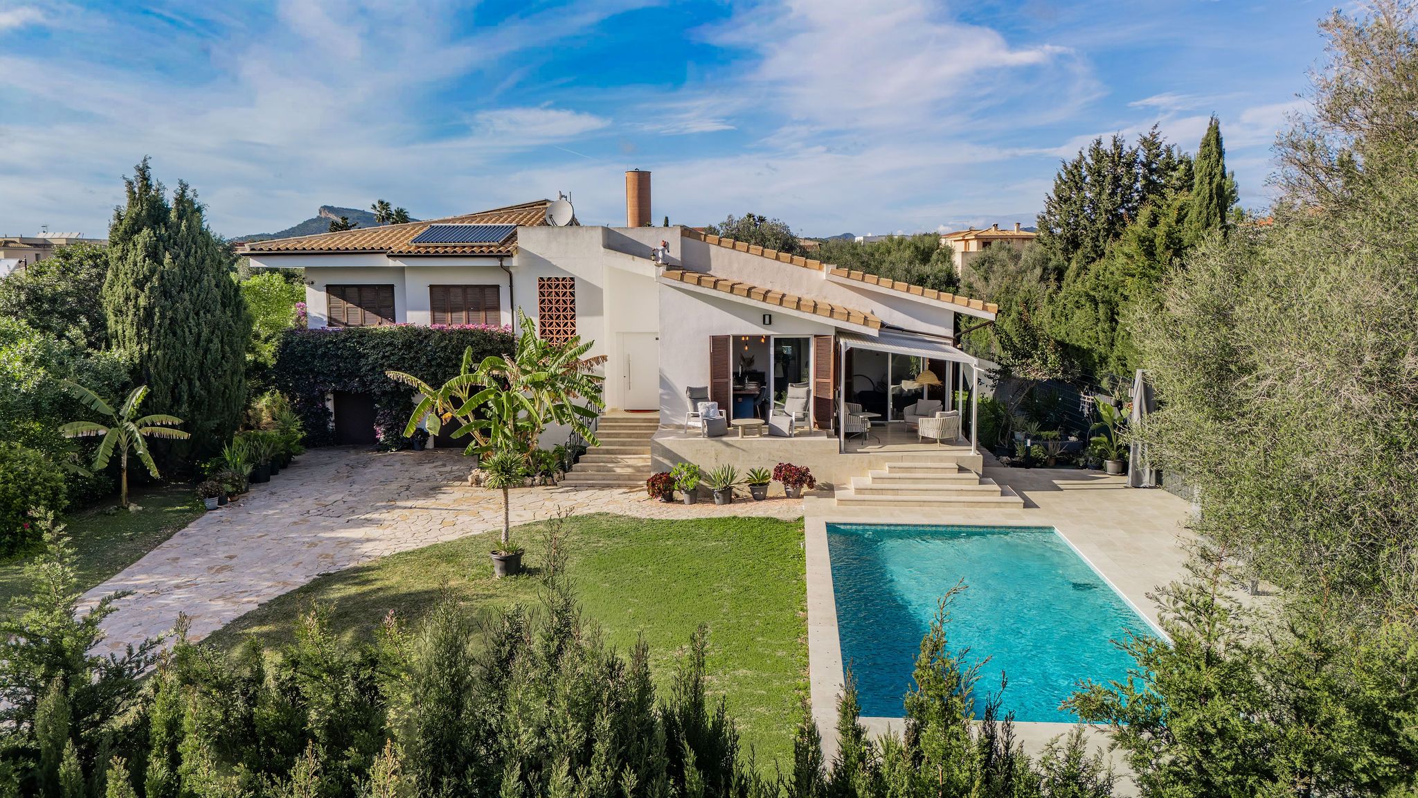 Un point fort particulier est l'espace piscine nouvellement aménagé avec de grandes terrasses qui offrent beaucoup de place pour les chaises longues, les salons et les salles à manger et créent un sentiment d'habitation moderne en plein air. Le jardin aménagé de façon méditerranéenne souligne l'atmosphère privée de la propriété et fait de l'espace extérieur un lieu de retraite idéal.
