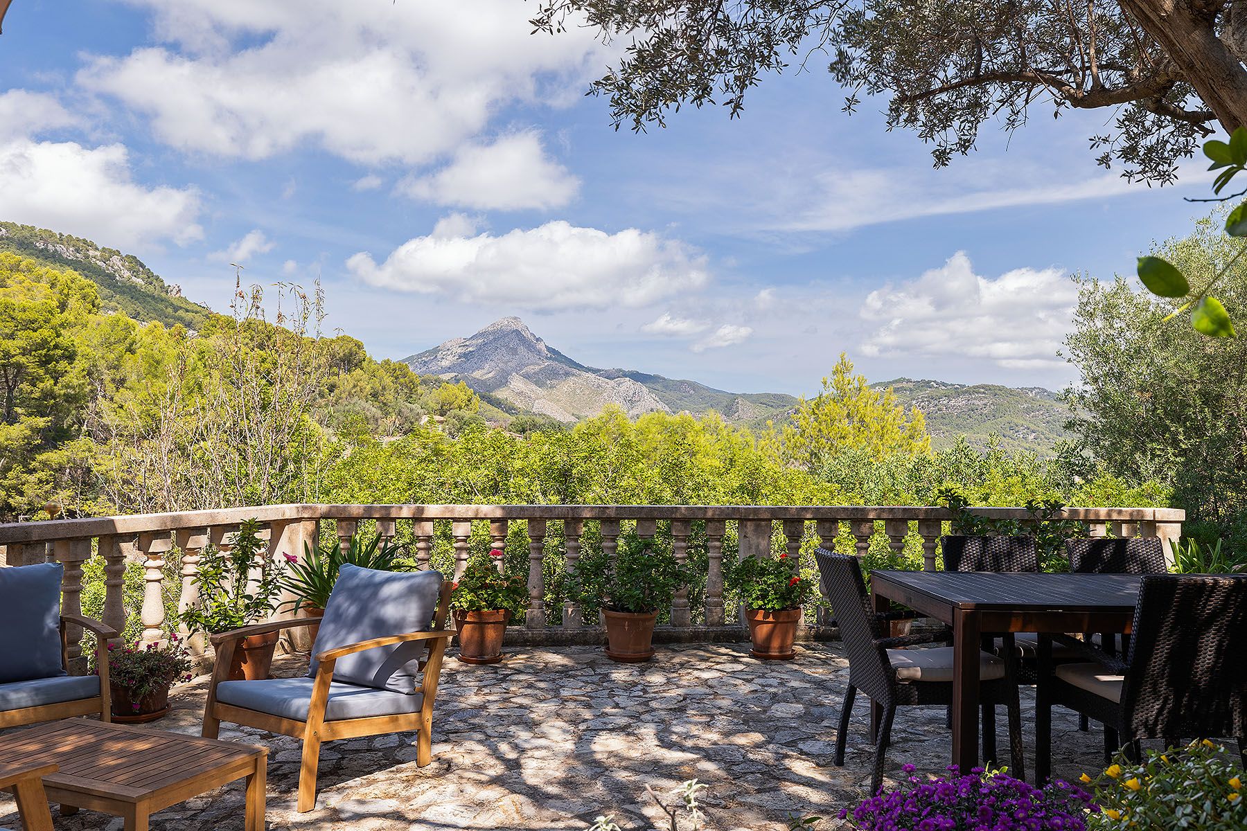 Nichée au cœur d'Es Capdellà, l'un des villages les plus charmants et les plus recherchés du sud-ouest de Majorque, cette exquise finca rustique allie de manière unique le caractère traditionnel majorquin, l'intimité et le confort de vie moderne. Située sur un vaste terrain d'environ 2.800 m², la propriété jouit d'une situation naturelle privilégiée avec une vue panoramique ouverte sur le paysage montagneux environnant et la nature méditerranéenne - une atmosphère de calme et d'authenticité absolus. Construite en pierre, la maison a été rénovée avec goût et des matériaux de qualité, tout en préservant soigneusement son charme d'origine. L'ambiance est marquée par des pièces intérieures claires et lumineuses. Actuellement, la finca dispose de deux chambres à coucher, de deux salles de bains ainsi que de deux grands espaces de vie avec des cuisines ouvertes. L'une des pièces à vivre peut facilement être transformée en une troisième chambre à coucher avec coin repas, offrant ainsi des possibilités d'utilisation flexibles pour différents styles de vie ou invités. La vie en plein air est l'un des points forts particuliers de cette finca. Les espaces extérieurs sont conçus pour une vie méditerranéenne détendue et comprennent des terrasses et des jardins soigneusement aménagés avec des oliviers et des amandiers. En outre, la propriété a accès à une piscine commune bien entretenue, située à un niveau séparé. Cette disposition bien pensée garantit un maximum d'intimité dans les espaces de vie tout en offrant l'avantage d'un entretien réduit - idéal pour ceux qui apprécient le confort sans les obligations d'une piscine privée. Malgré son emplacement calme et rural, la finca se trouve à quelques minutes des plages de Peguera, d'excellents restaurants ainsi que du port renommé de Port Andratx. La ville de Palma est à environ 20 minutes et l'aéroport international à environ 30 minutes. Cette finca offre une rare opportunité d'acquérir un refuge privé à la campagne avec un excellent accès, des vues de rêve et une élégance méditerranéenne intemporelle.