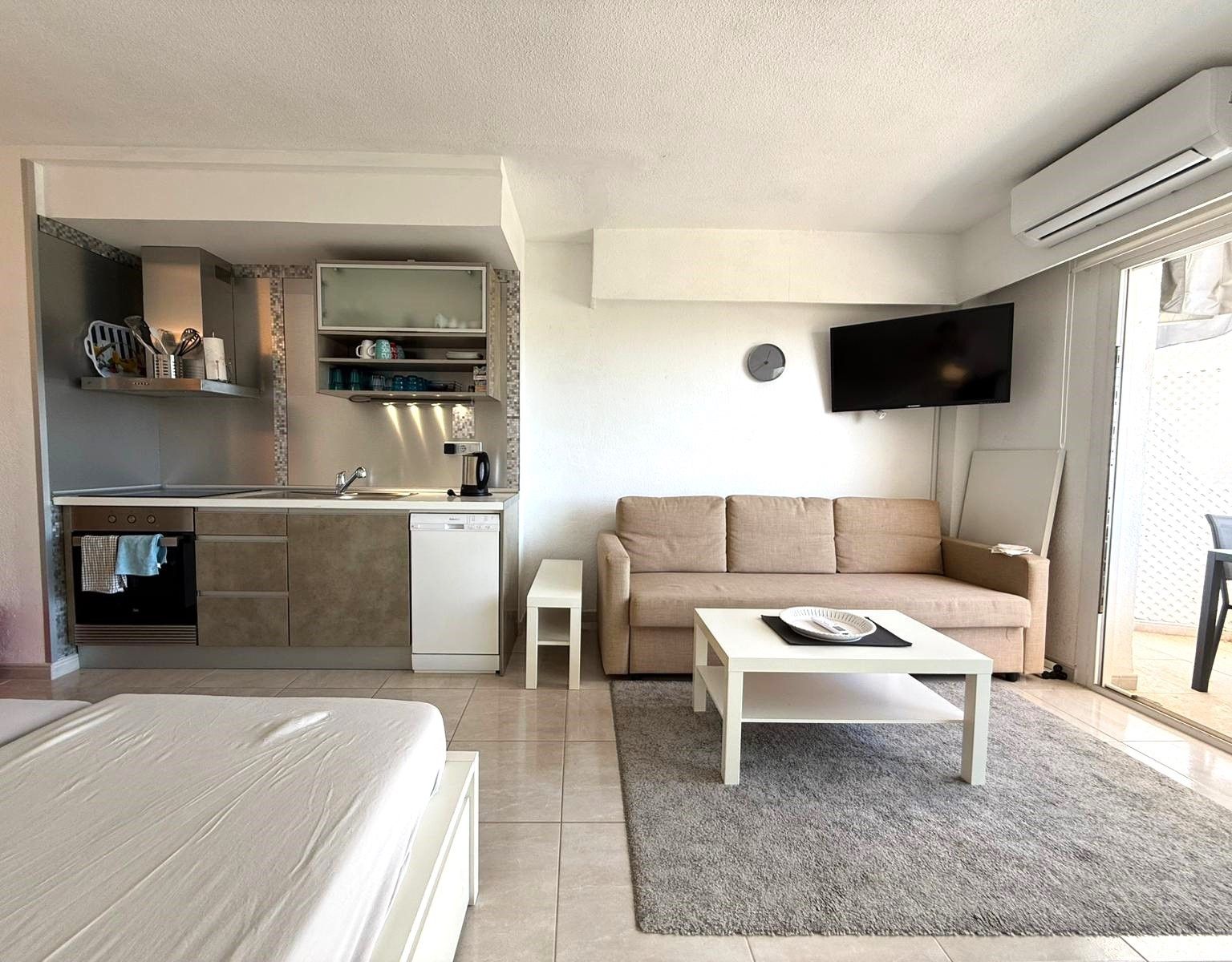 L'appartement dispose d'un concept d'espace ouvert et lumineux avec une grande baie vitrée côté mer, laissant entrer beaucoup de lumière naturelle. Sur environ une pièce se répartissent un espace de vie/chambre, une kitchenette moderne, un débarras pratique ainsi qu'une salle de bains avec raccordement pour machine à laver. L'espace de vie ouvert offre suffisamment de place pour un lit, un canapé et un coin repas.