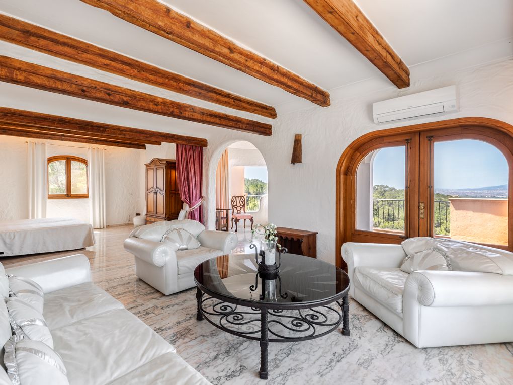 Cette finca est située entre Marratxí et Santa María, sur une colline avec des vues spectaculaires sur Palma et la Serra de Tramuntana, autour de Marratxinet. L'immense propriété comprend un bâtiment principal avec 10 chambres, une terrasse ensoleillée avec piscine, une annexe avec une grande salle à manger et une cuisine, ainsi que des écuries pour une douzaine de chevaux avec sa propre aire de dressage. Utilisée depuis quelques années pour l'agrotourisme, la maison conserve un style rustique, avec des murs recouverts de plâtre et d'argile, représentant un mélange de styles méditerranéen et andalou. La finca dispose de plusieurs cheminées et est également équipée d'un chauffage central, d'un chauffage par le sol, de l'air conditionné et d'un adoucisseur d'eau. Elle dispose de 50 000 m2 de terrain, avec de nombreuses possibilités pour les amateurs de chevaux ou pour la production agricole. Le jardin dispose d'un système d'irrigation et d'oliviers centenaires. Plusieurs couples de faucons nichent dans la région pour le plus grand plaisir des amoureux de la nature.